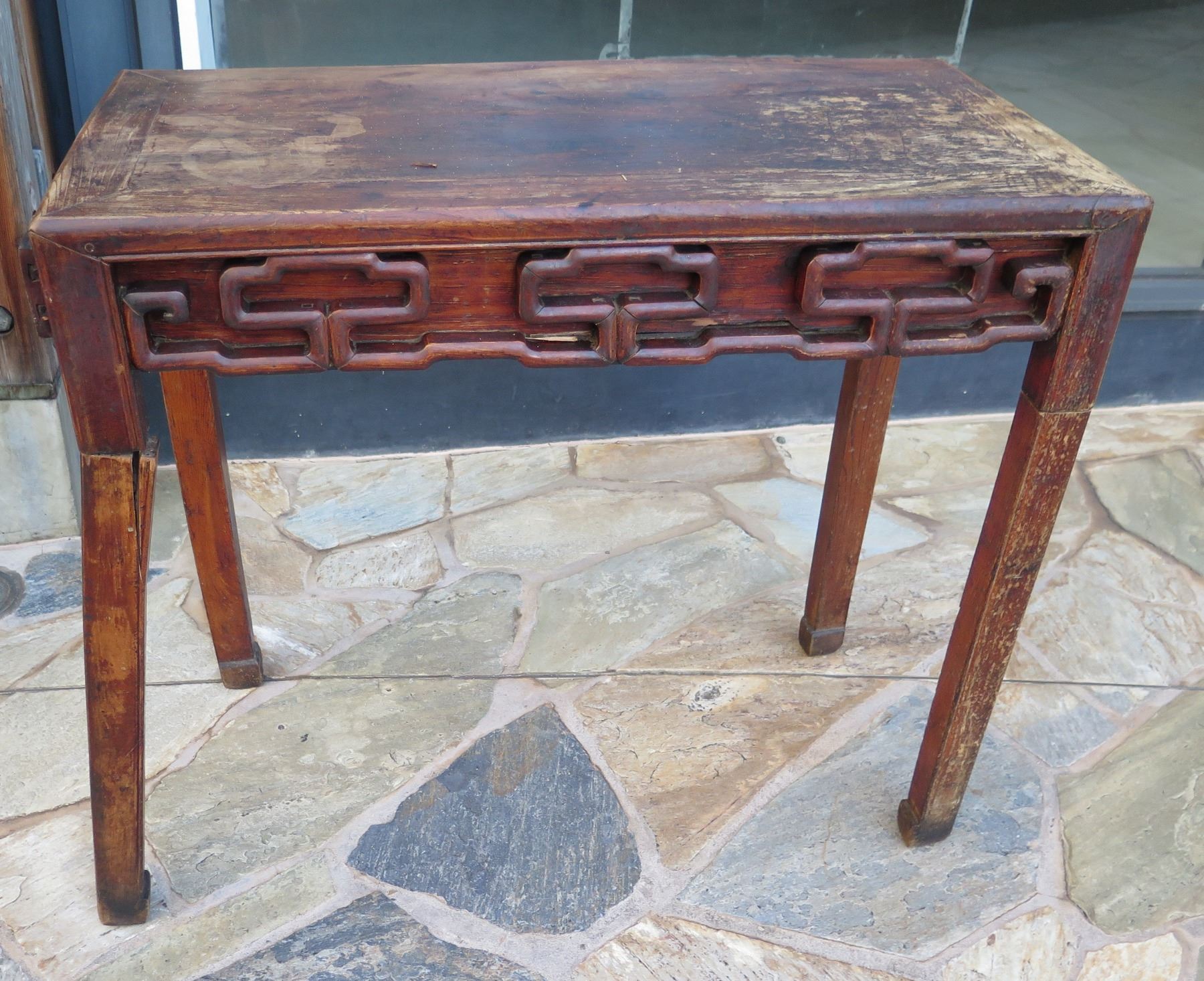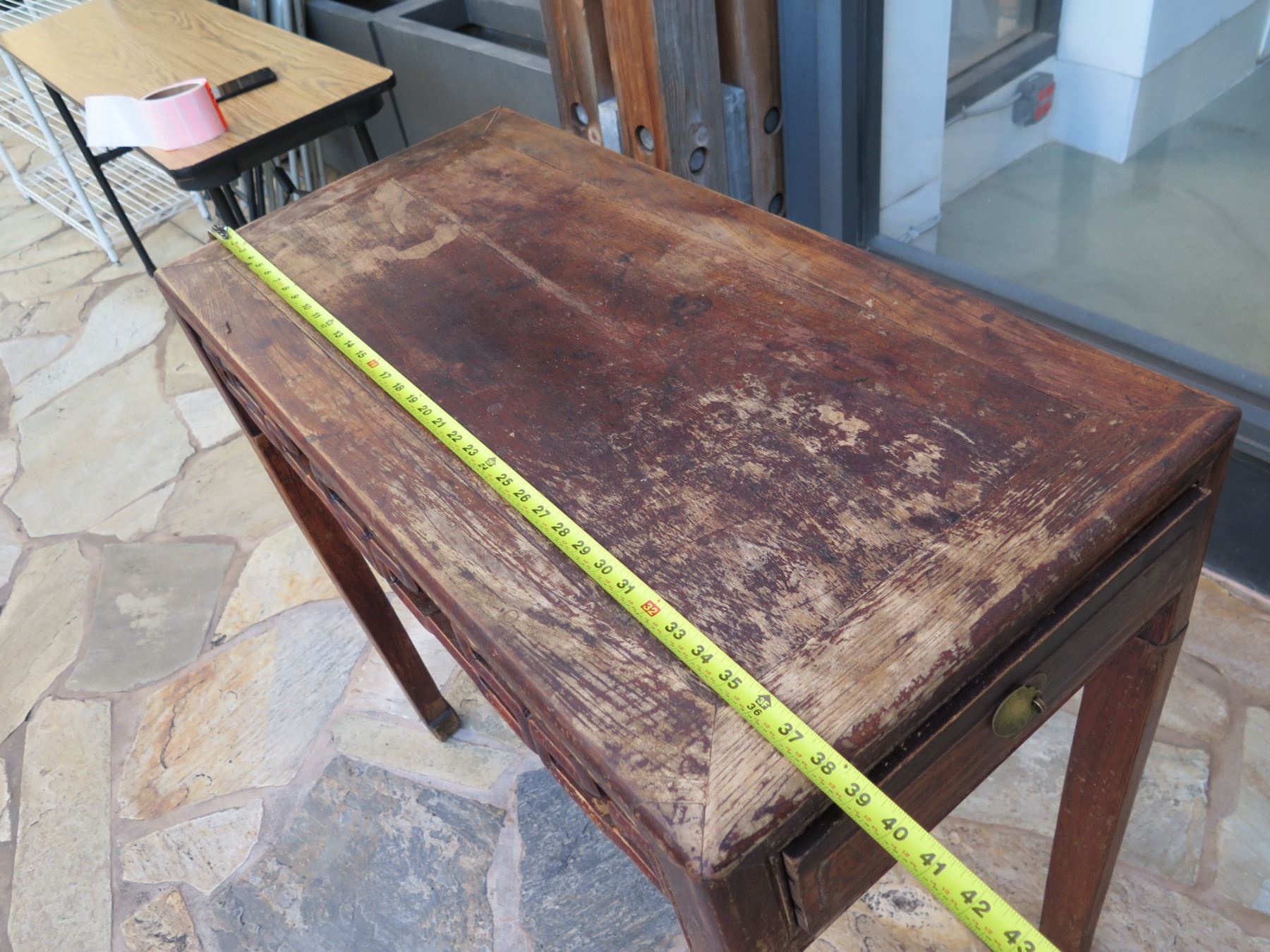 Wooden Carved Table w/ Drawer 38" x 18.5" x 35"H (leg is broken, has termite damage)