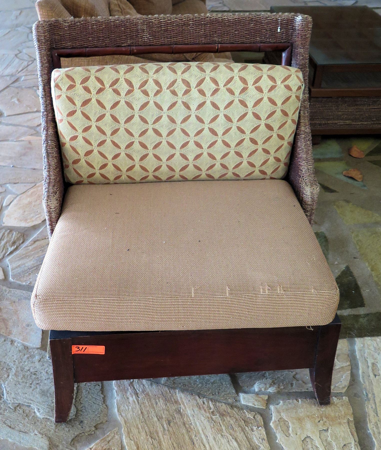 Wooden Chair w/ Woven Backrest & Back Cushion 30  x 28 D x 35 H