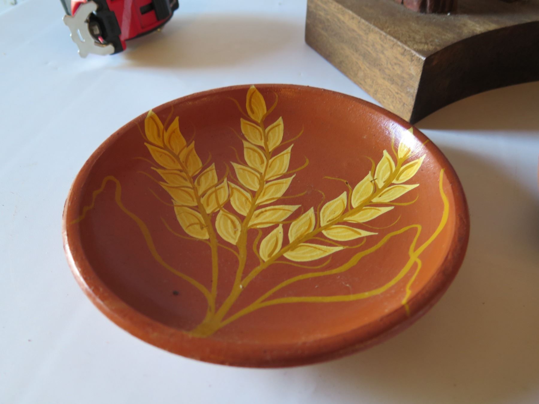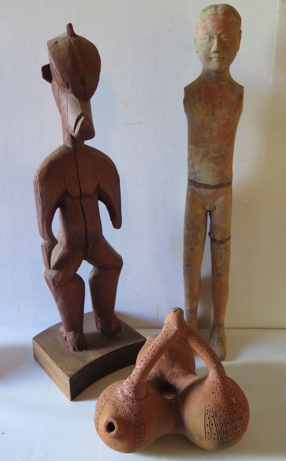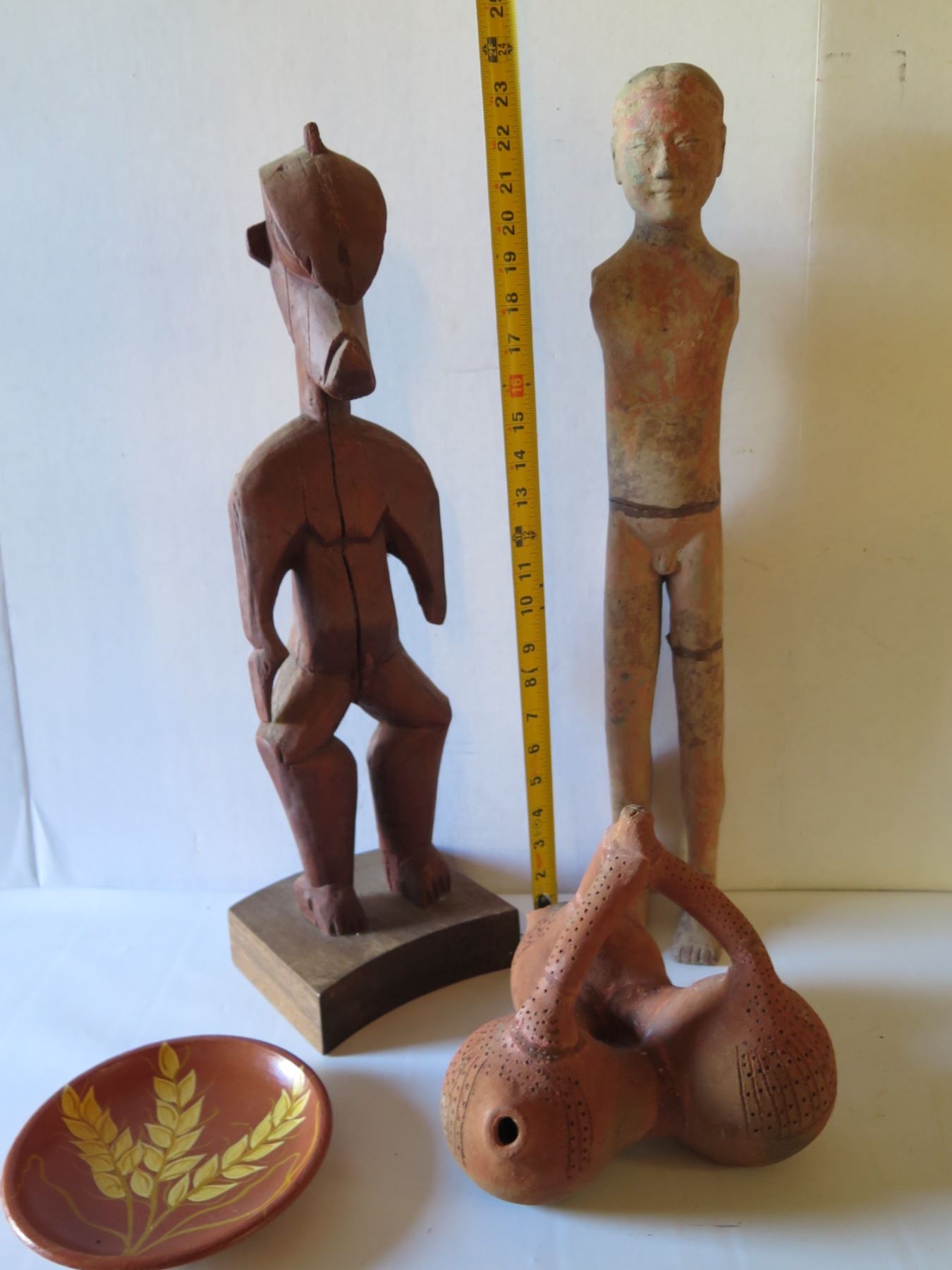 Wooden Clay and Carved Wood Figures, Form & Small Plate