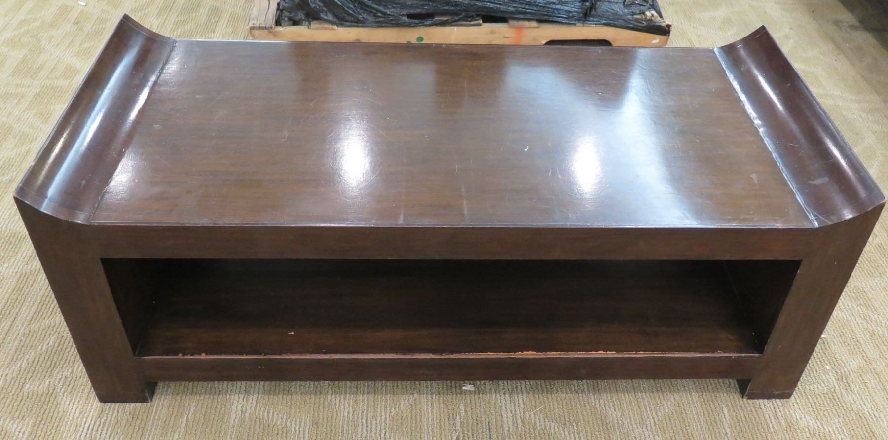 Wooden Coffee Table w/ Curved Ends & Undershelf