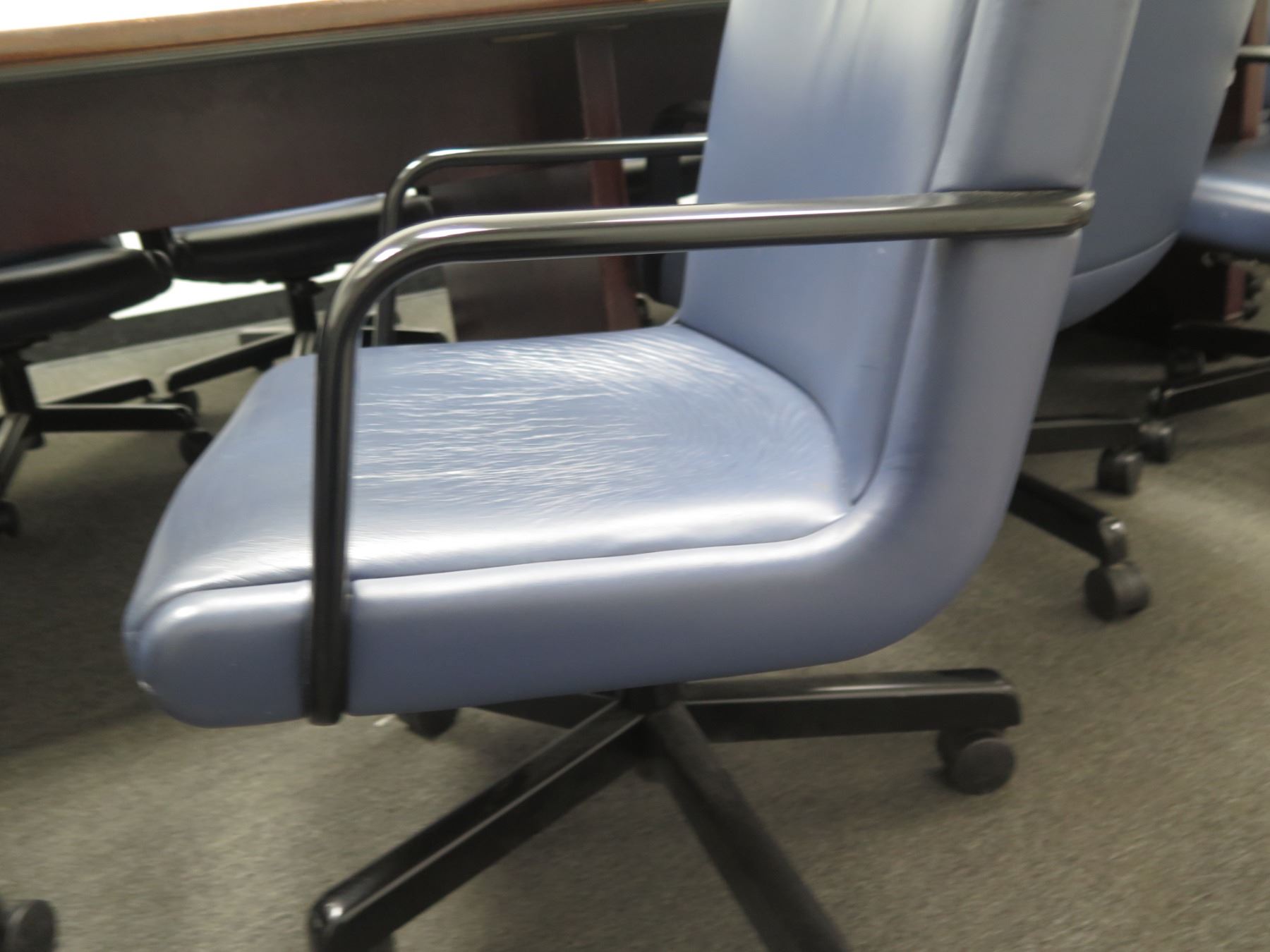 Wooden Conference Table 133"x48"x30" & 10 Rolling Upholstered Chairs