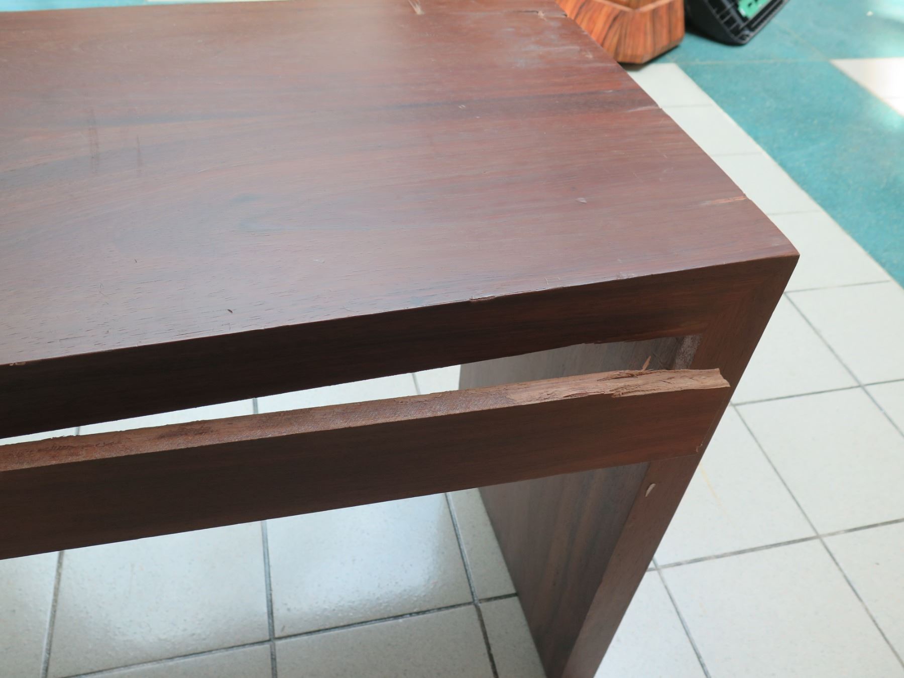 Wooden Console Table w/ Drawer & Outlet 84"x20"x30"H (damage, wear & tear)