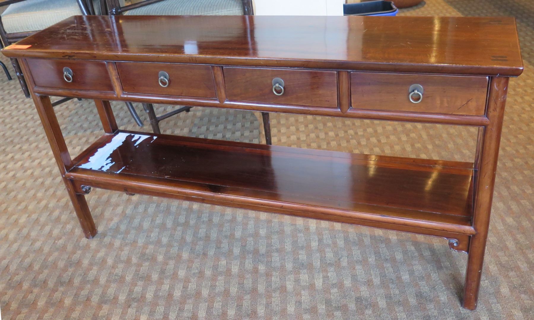 Wooden Console Table w/ Undershelf & 4 Drawers 62"Lx14"Wx33"H