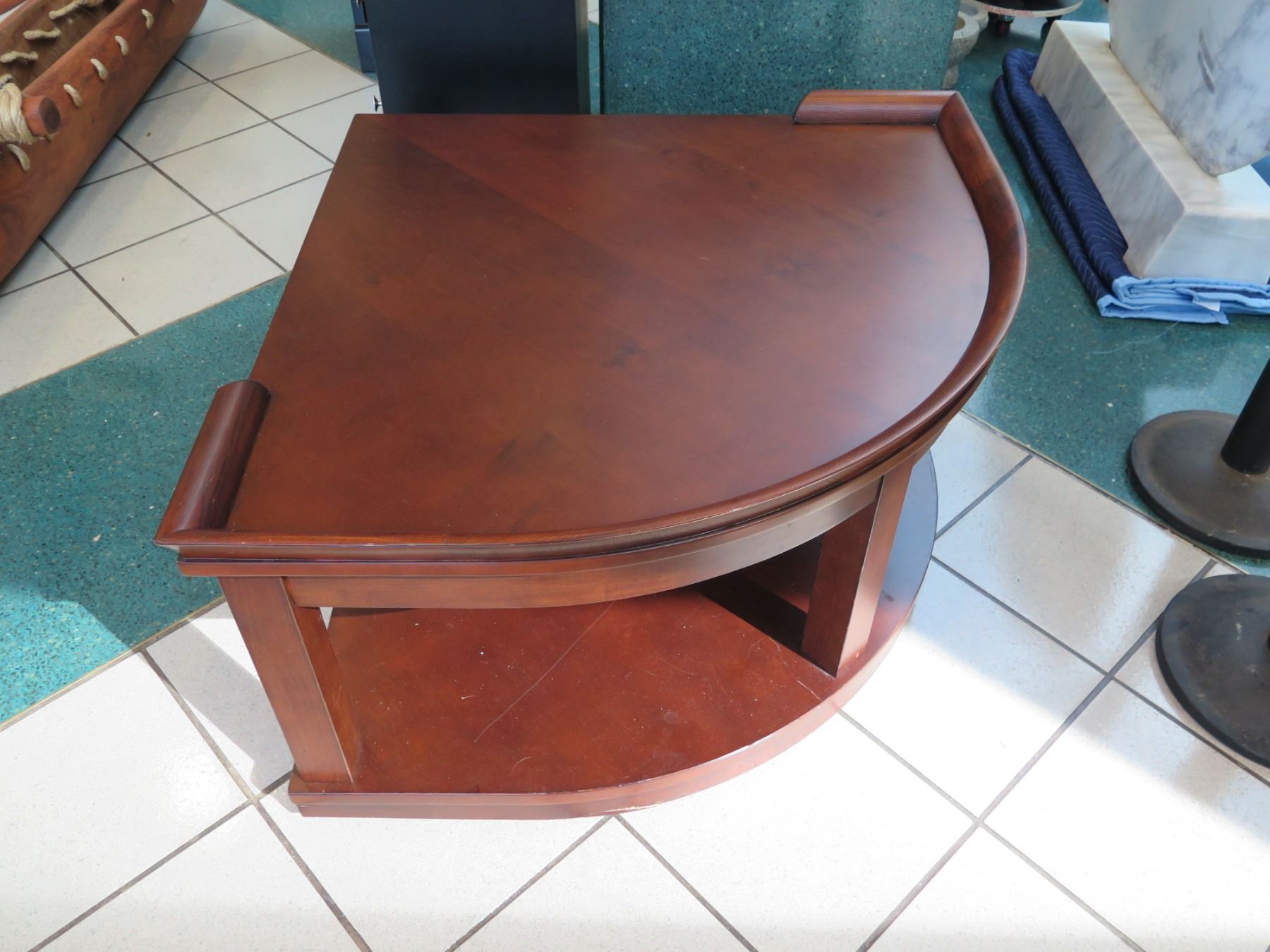 Wooden Corner Table on Wheels (Pie Shaped,) 36" From Middle Edge to Corner