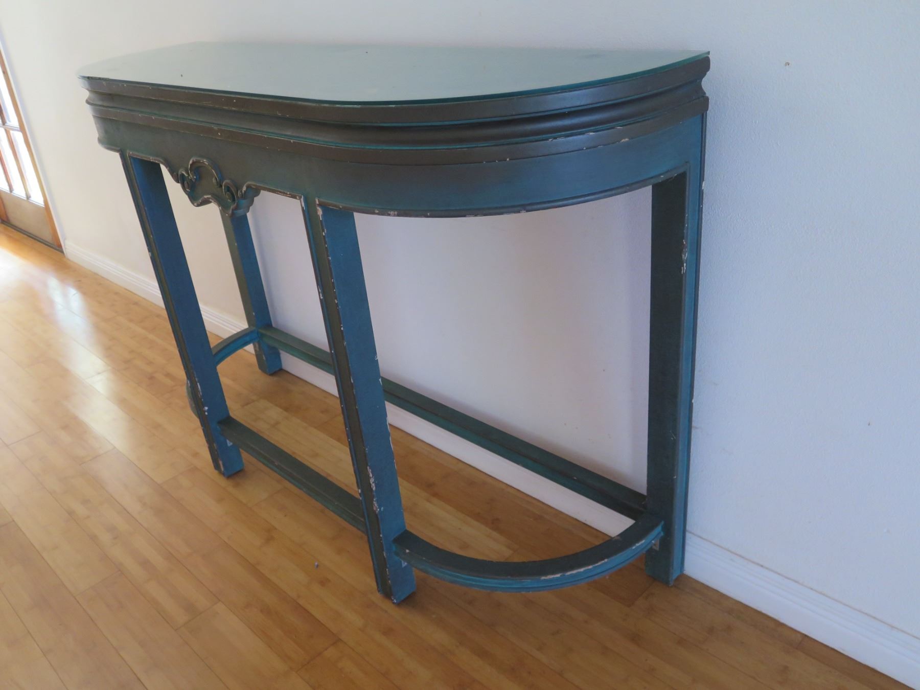 Wooden Curved Entry Table 55"x16"x36"H