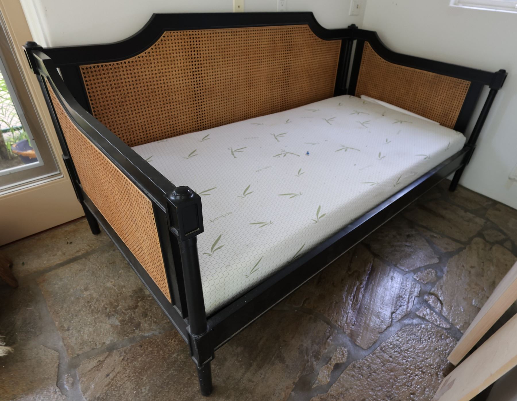Wooden Day Bed w/ Woven Back & Sides & Seat Cushion 80" x 42" x 37"H