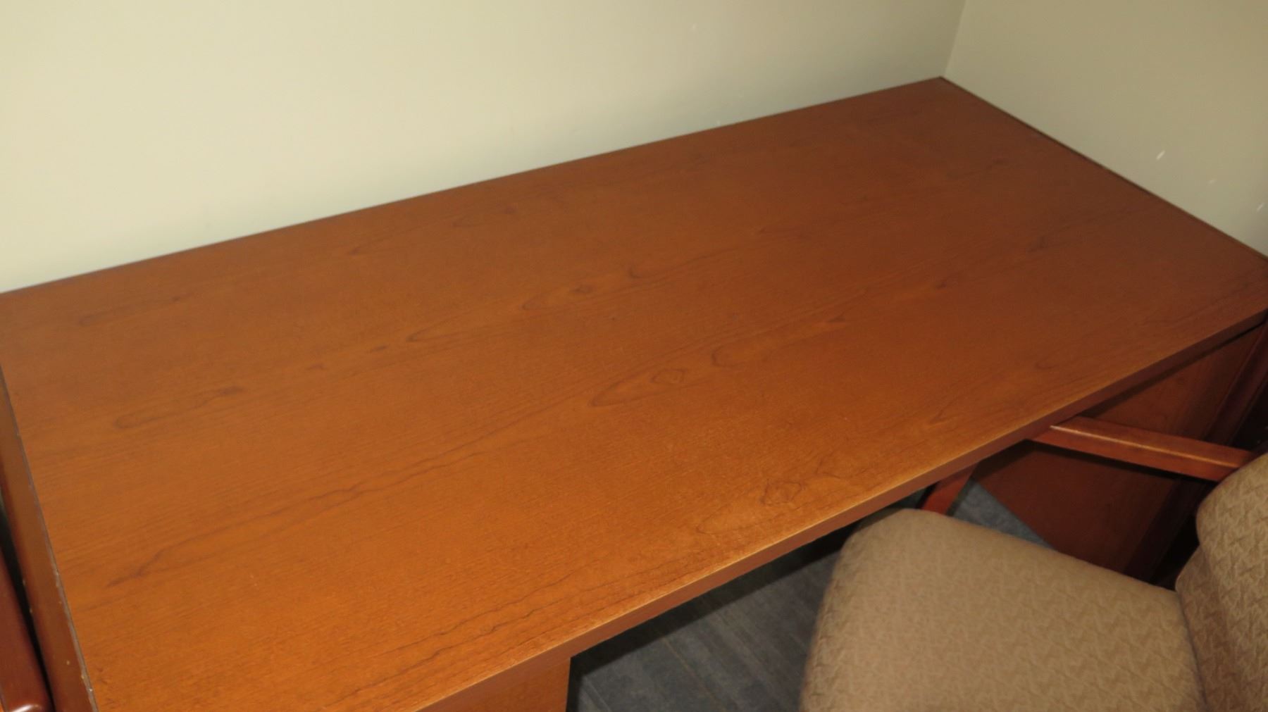 Wooden Desk 65"L x 30"D x 30"H. Buyer will be responsible for disassembling and removing all purchased items in this auction. Buyer must bring own tools, carts, etc. Loadout Thursday, May 9 to Saturday May 11. Detailed directions to building’s loading zone and designated load-out areas will be provided.