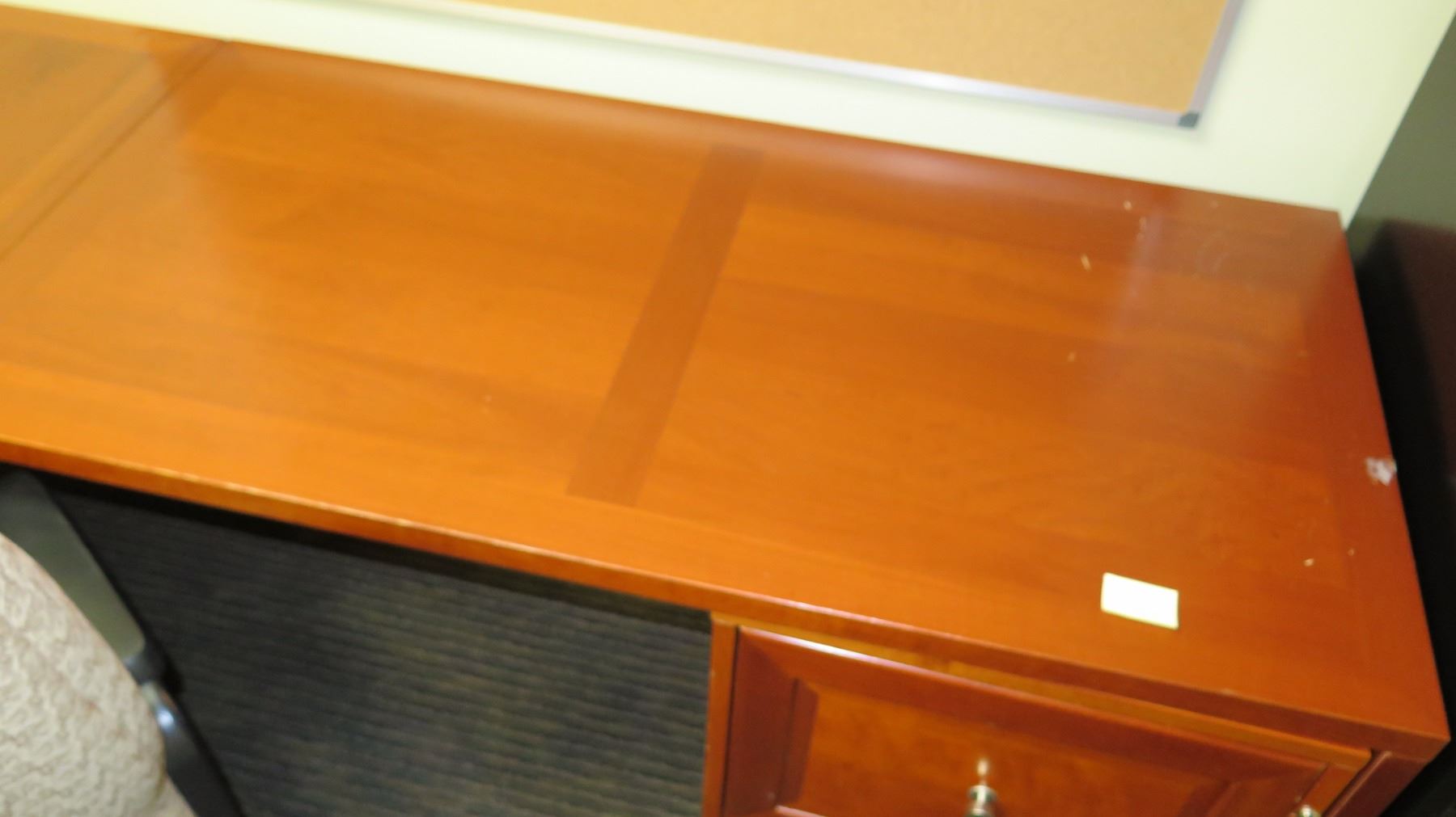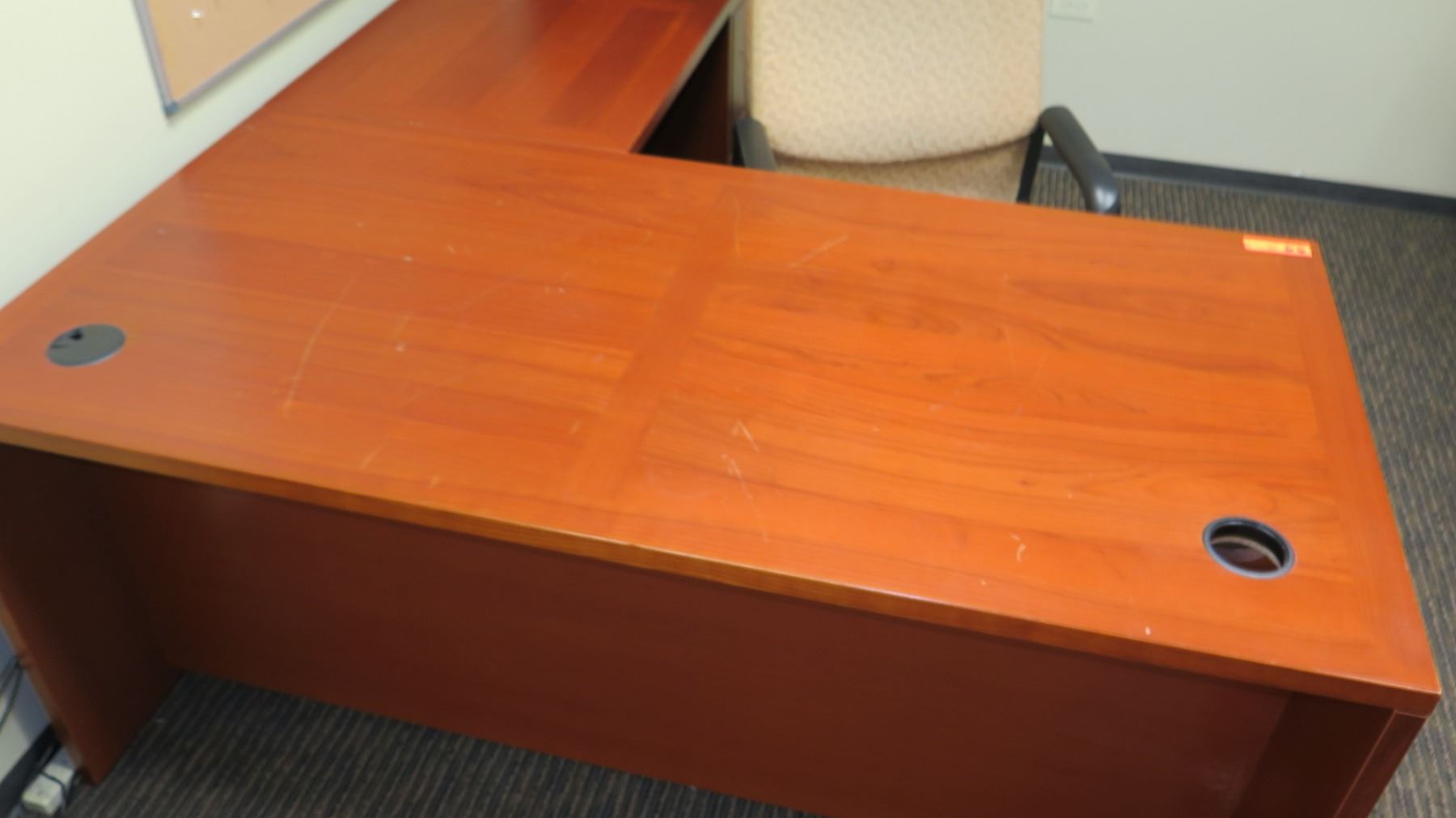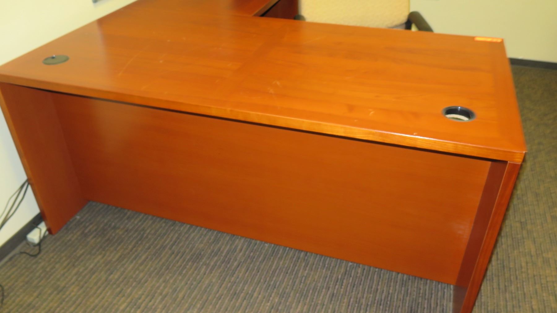 Wooden Desk Ensemble w/ Chair 63" x 31.5" x 28"H. Buyer will be responsible for disassembling and removing all purchased items in this auction. Buyer must bring own tools, carts, etc. Loadout Thursday, May 9 to Saturday May 11. Detailed directions to building’s loading zone and designated load-out areas will be provided.