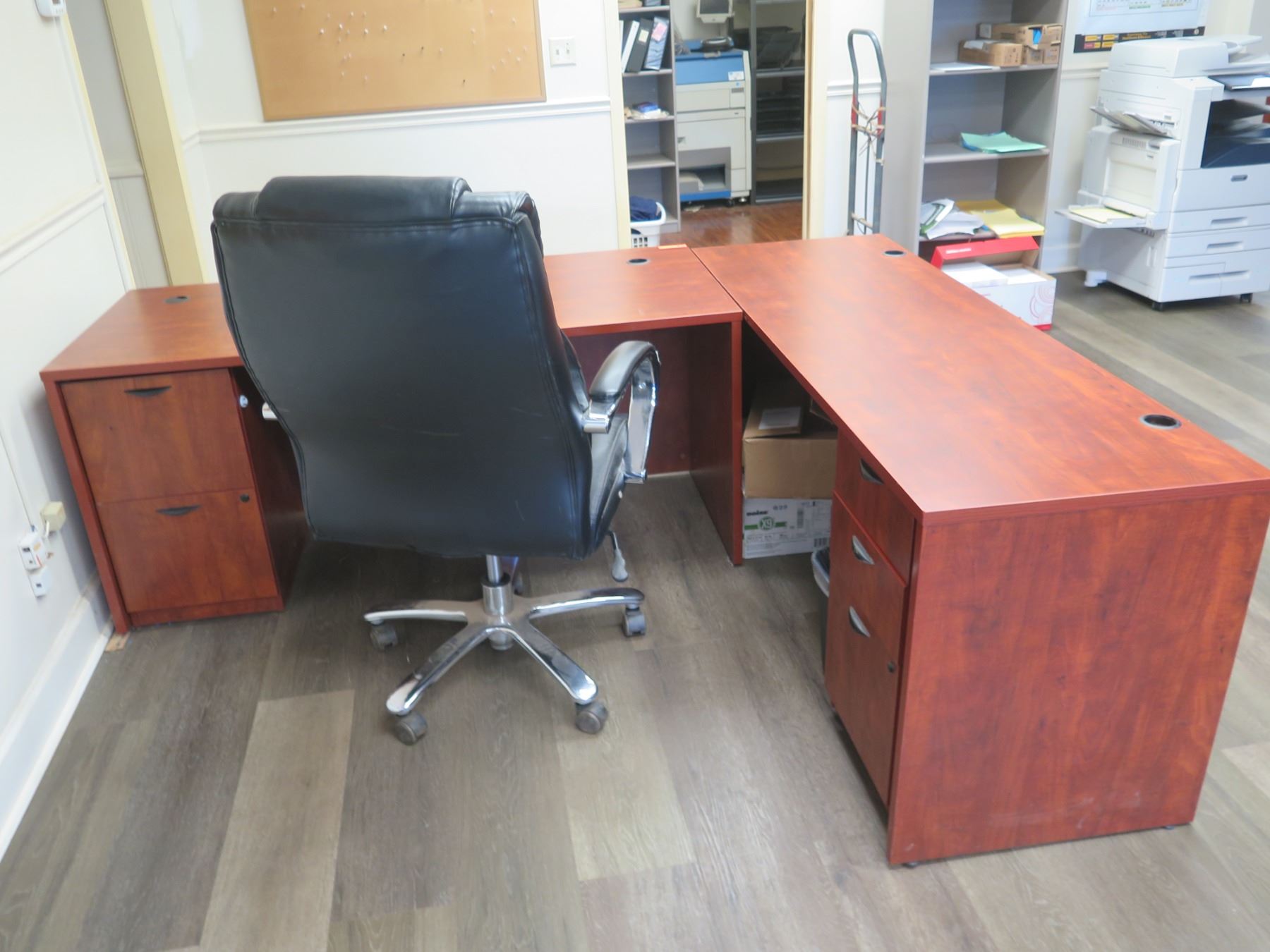 Wooden Desk Ensemble w/ Office Chair, L Configuration