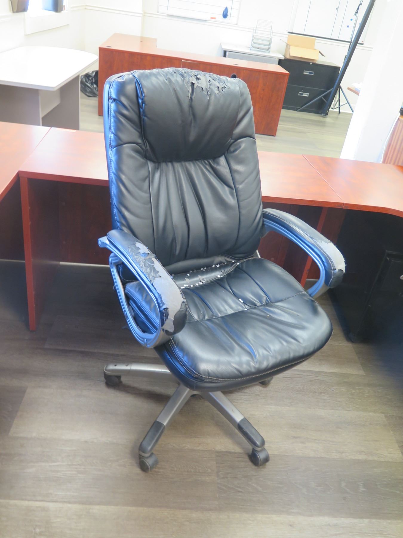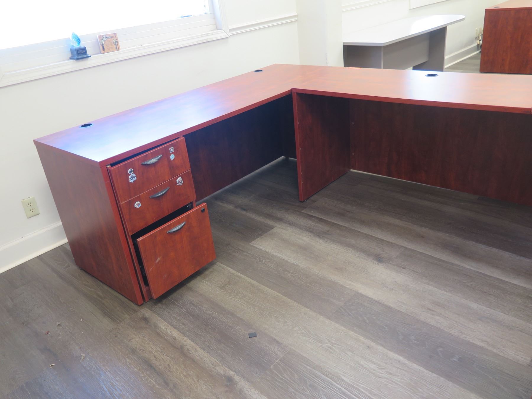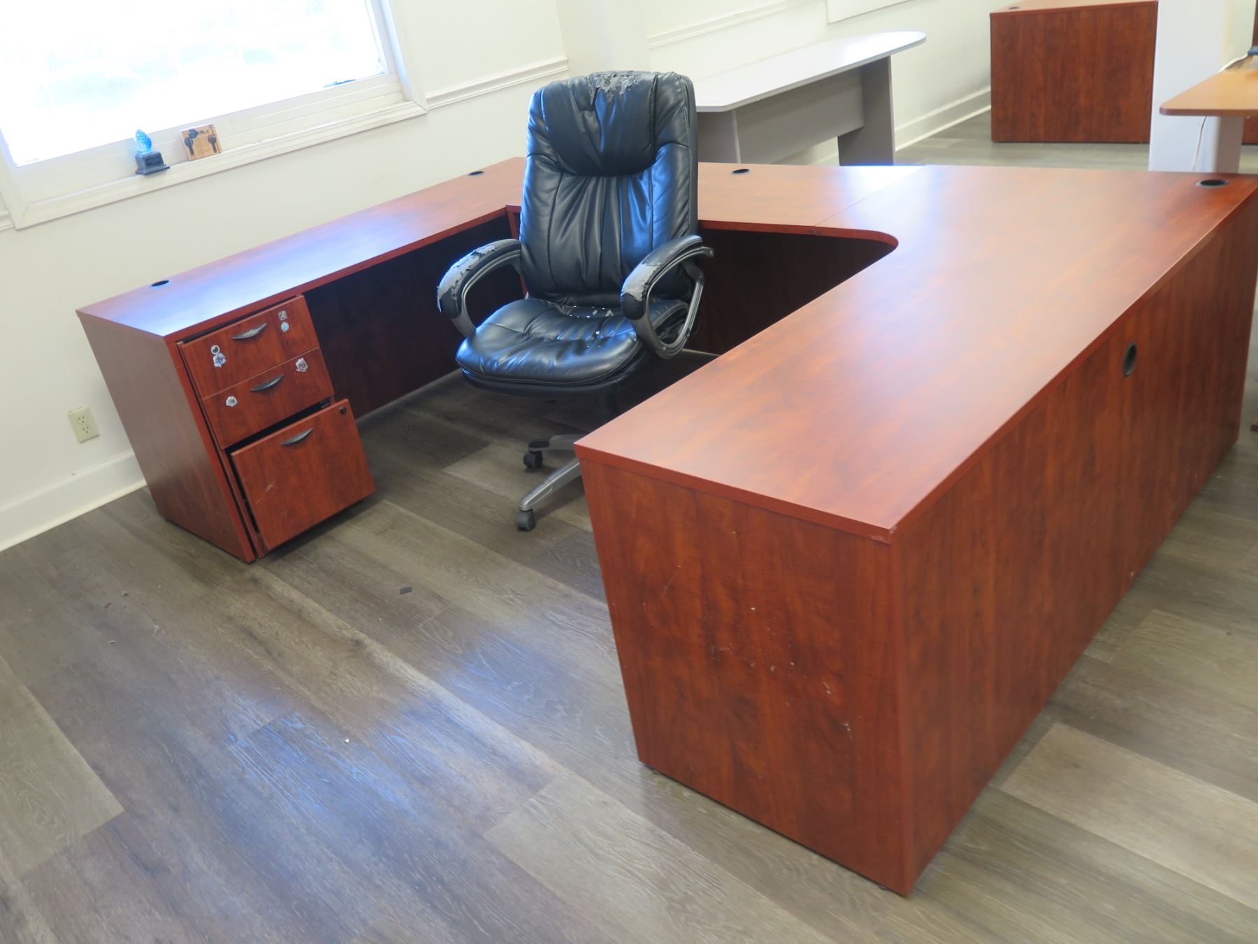 Wooden Desk Ensemble w/ Office Chair, U Configuration