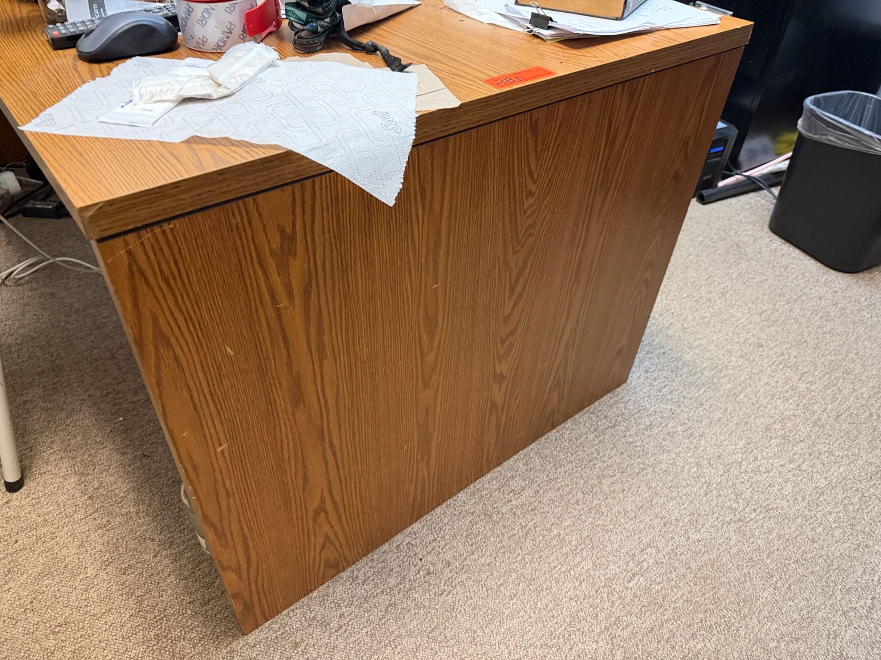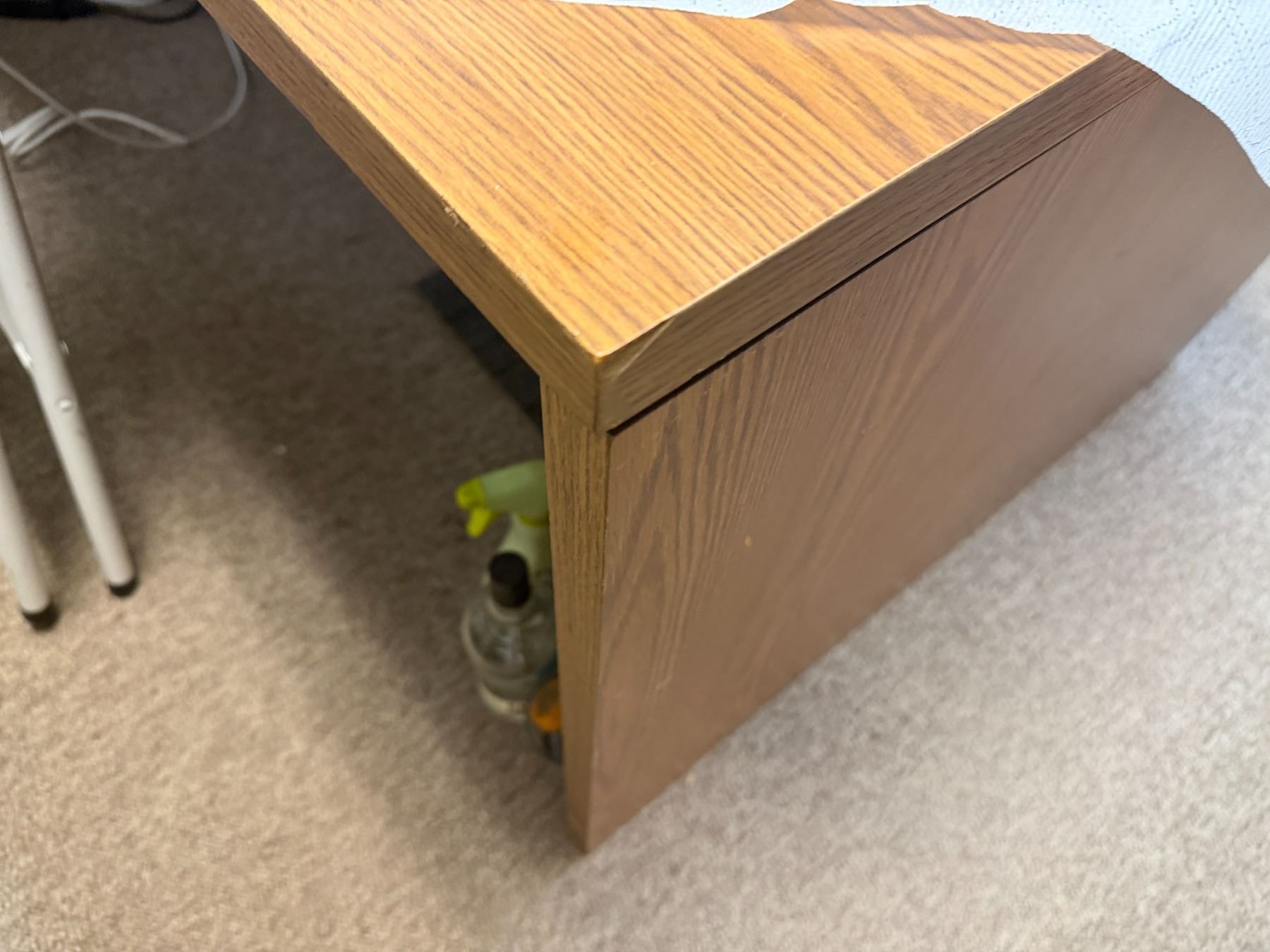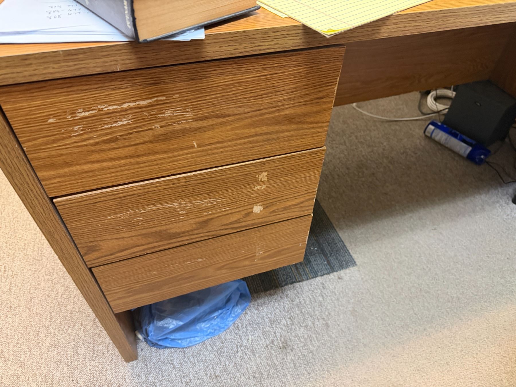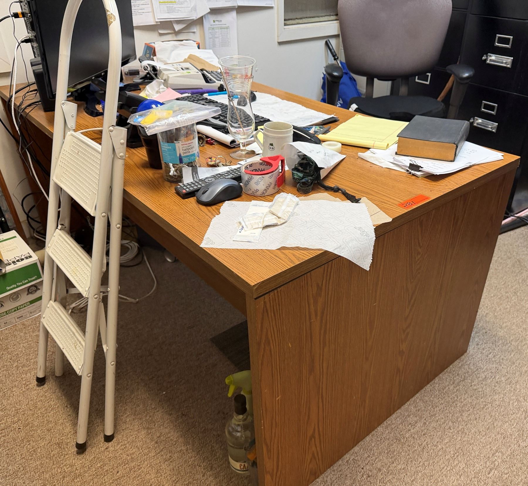 Wooden Desk w/ Chair (stepladder & contents not included)