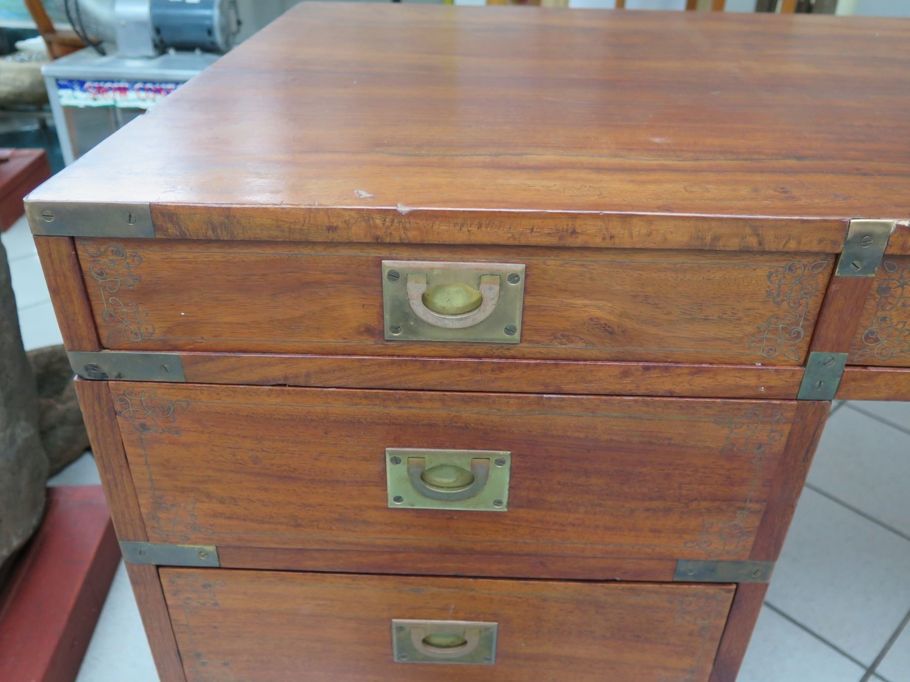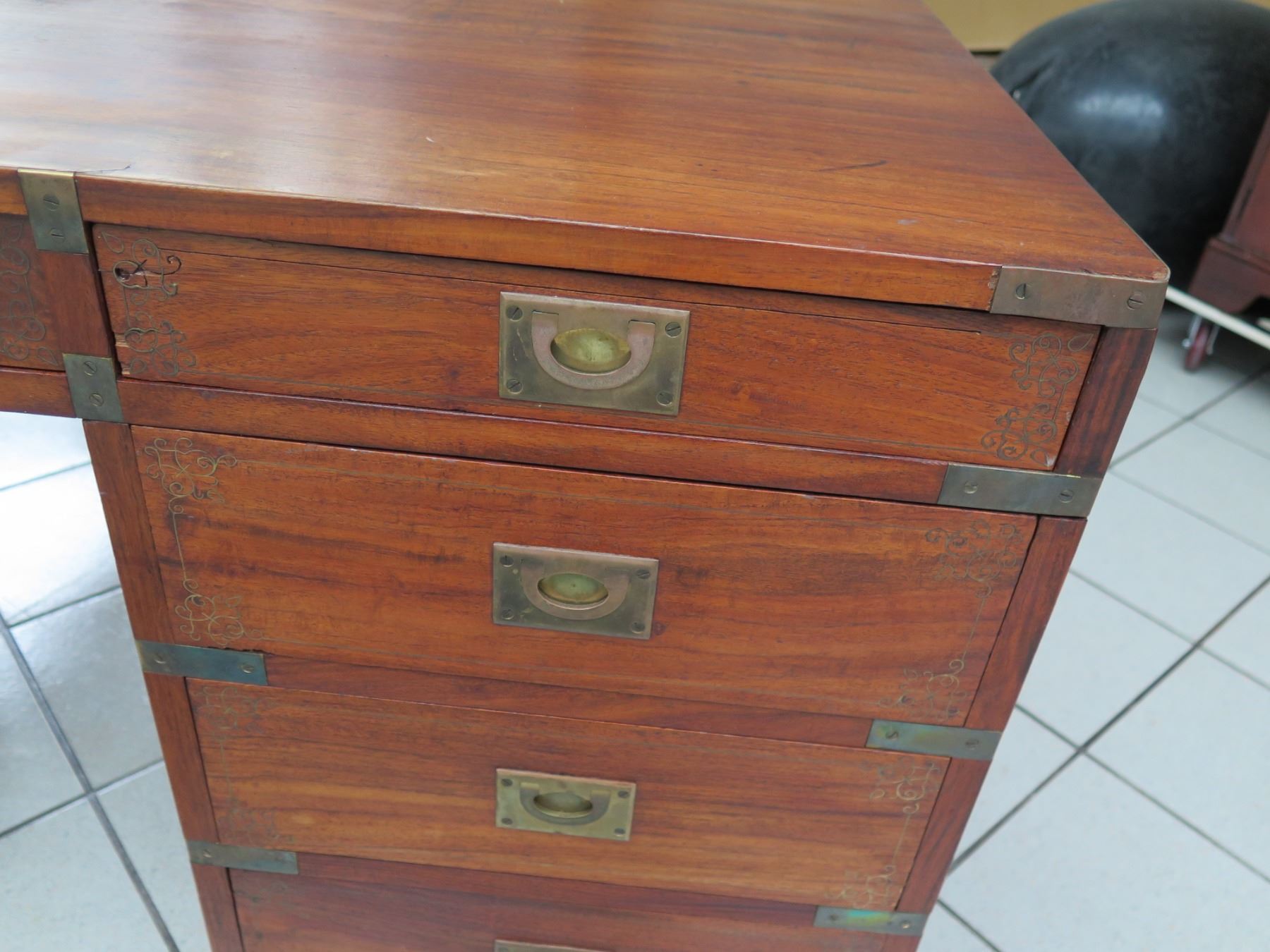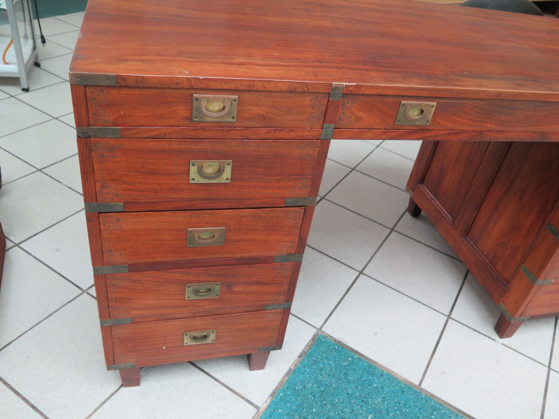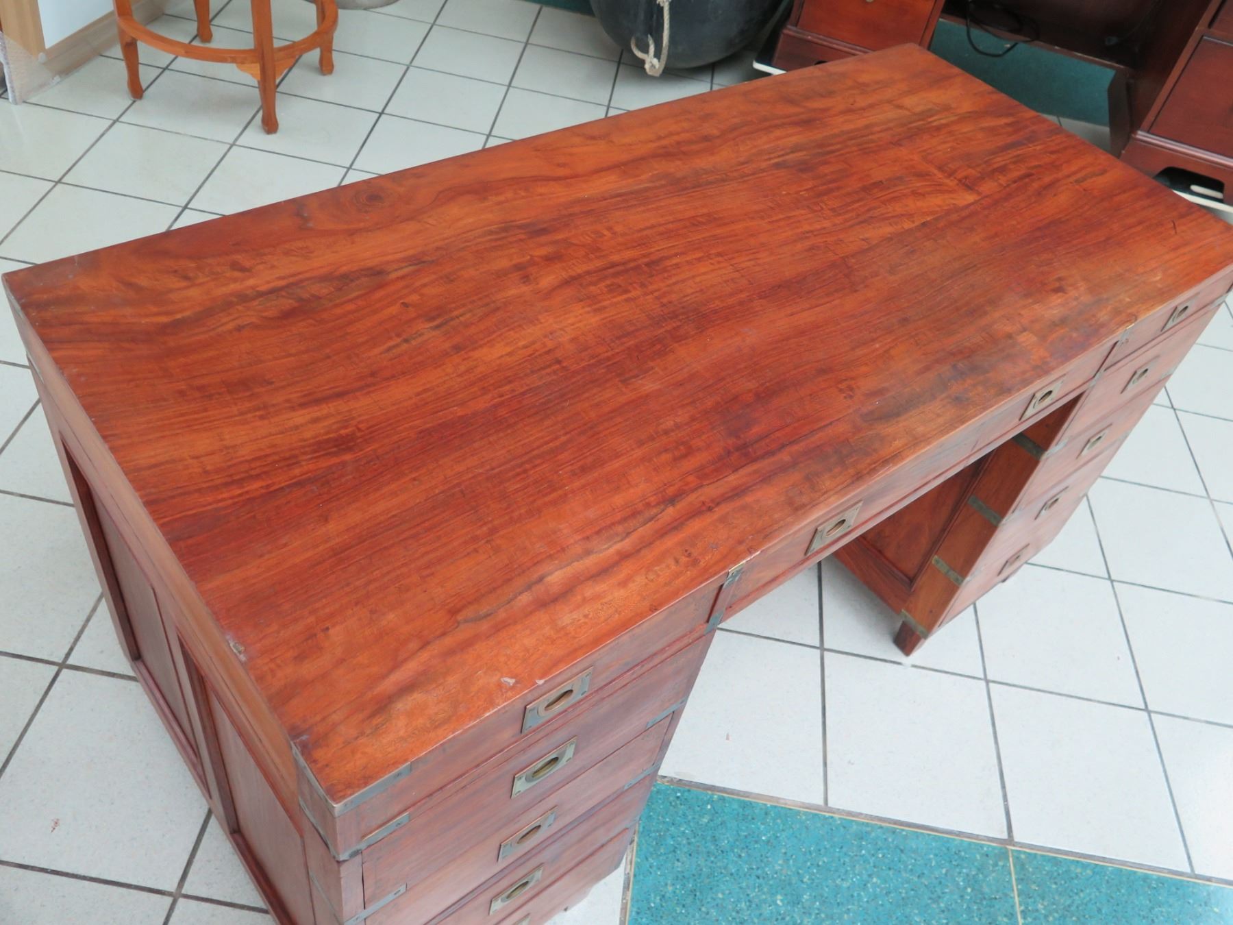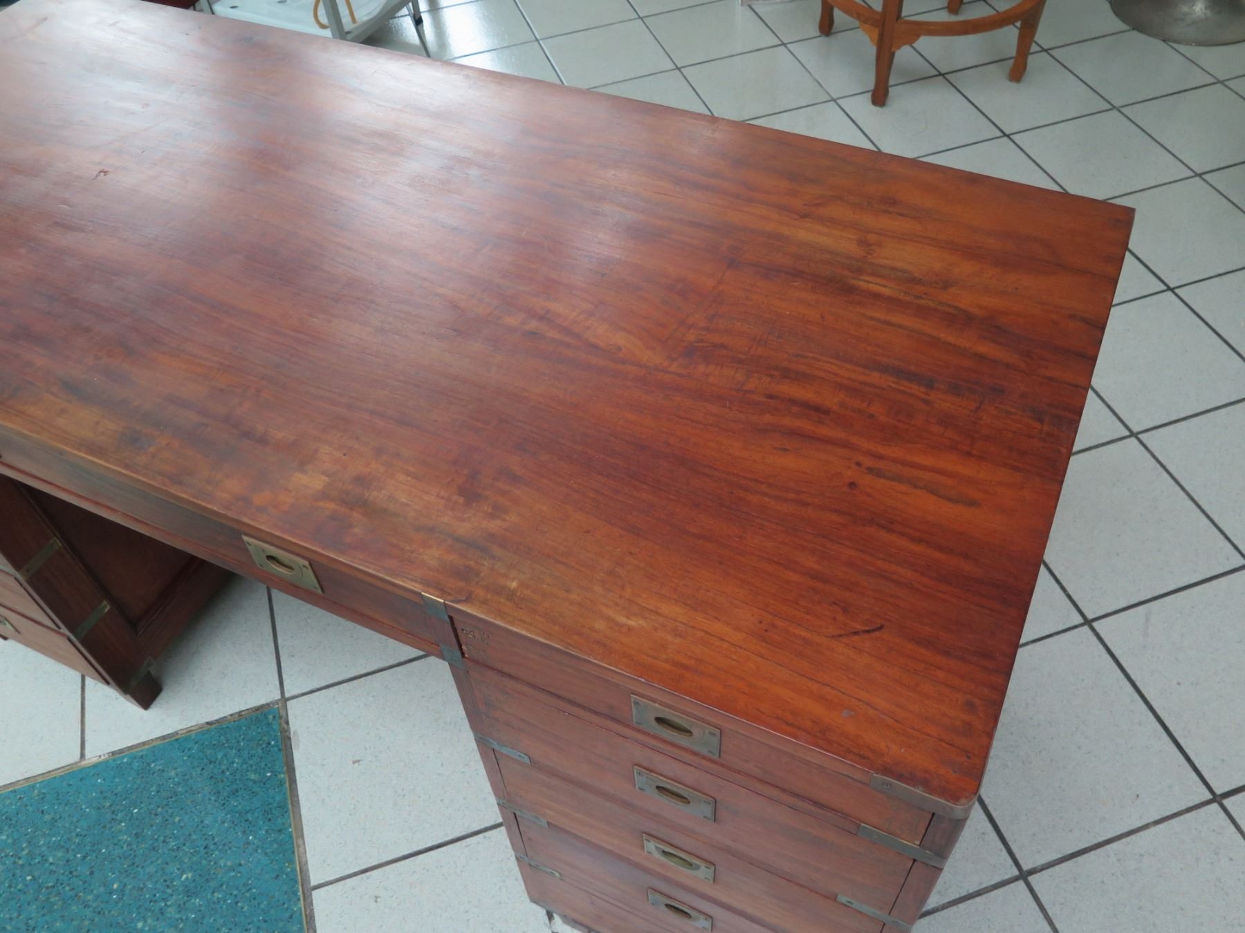 Wooden Desk with Inlaid Brass Filigree & Hardware, 59" x 29" x 31" H, Has Cosmetic Blemishes From Age (as shown in the pictures)