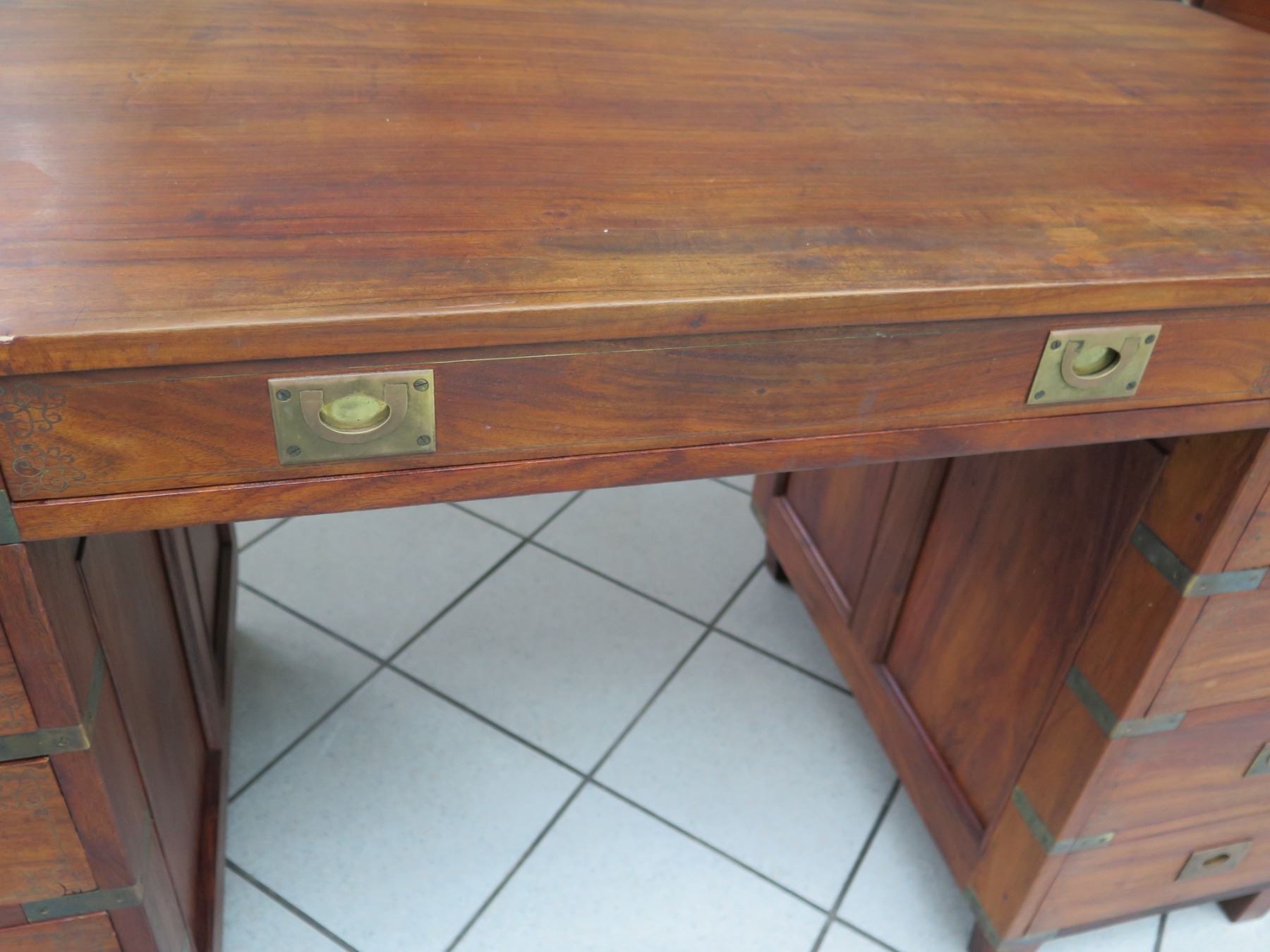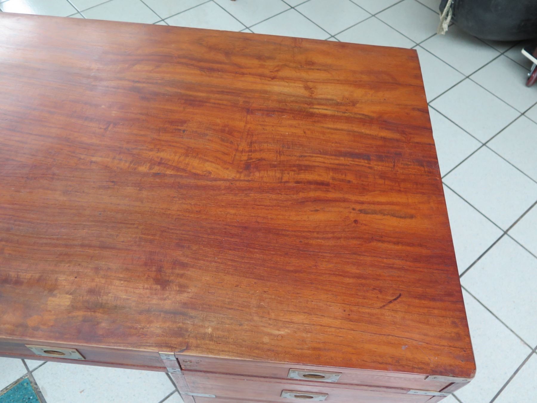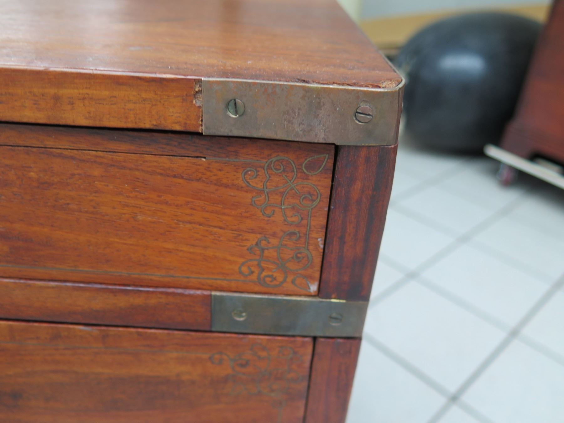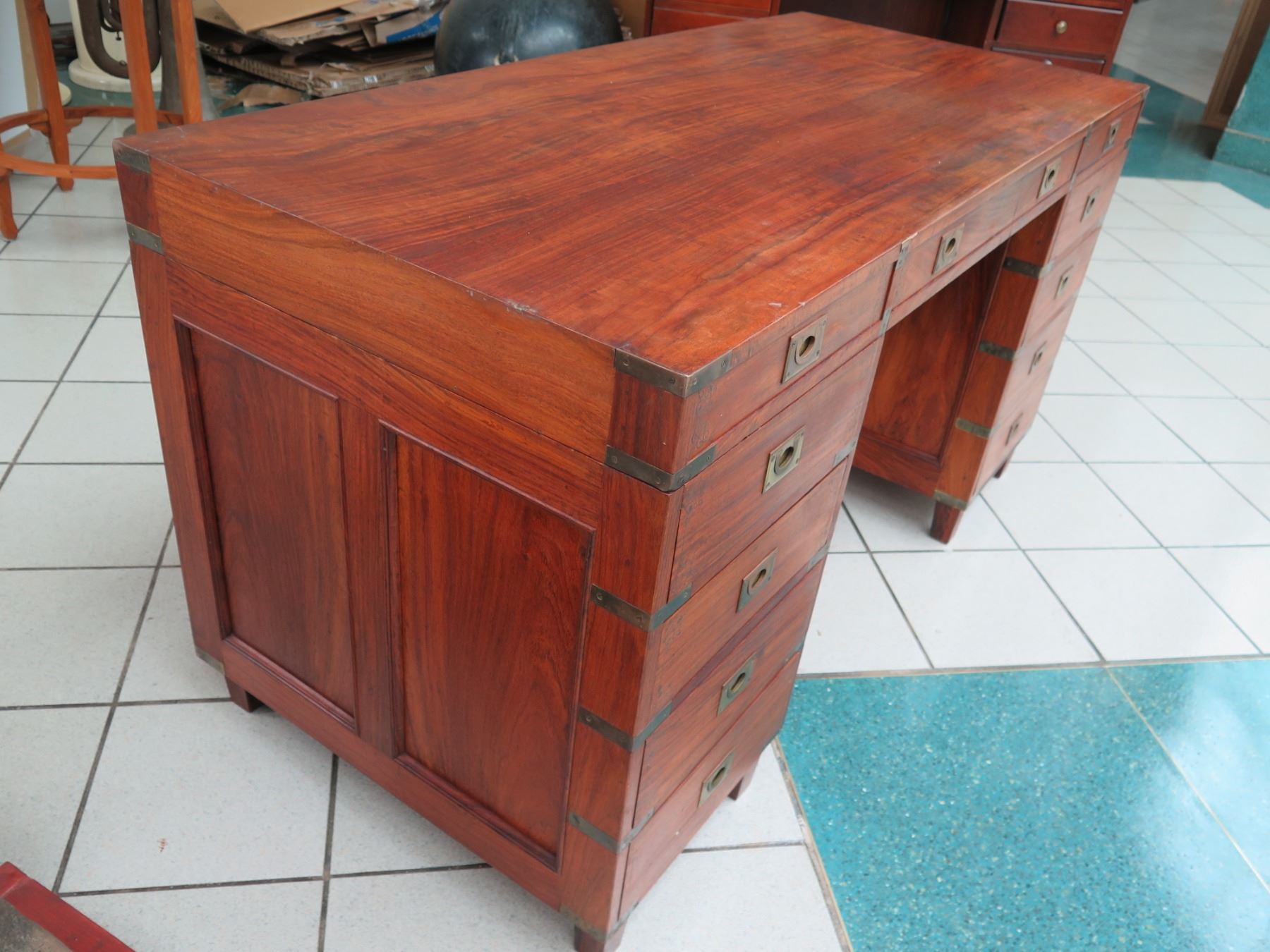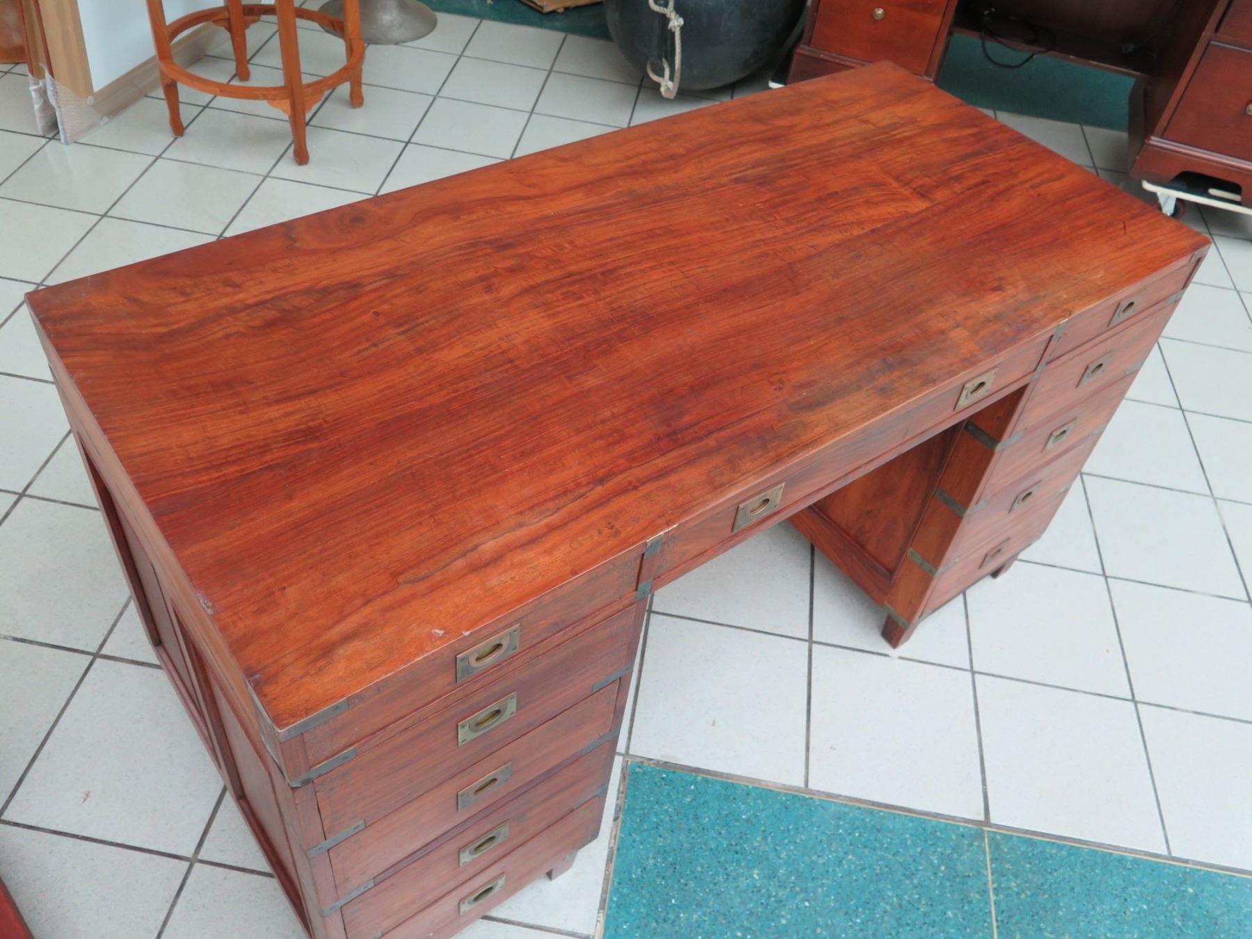 Wooden Desk with Inlaid Brass Filigree & Hardware, 59" x 29" x 31" H, Has Cosmetic Blemishes From Age (as shown in the pictures)