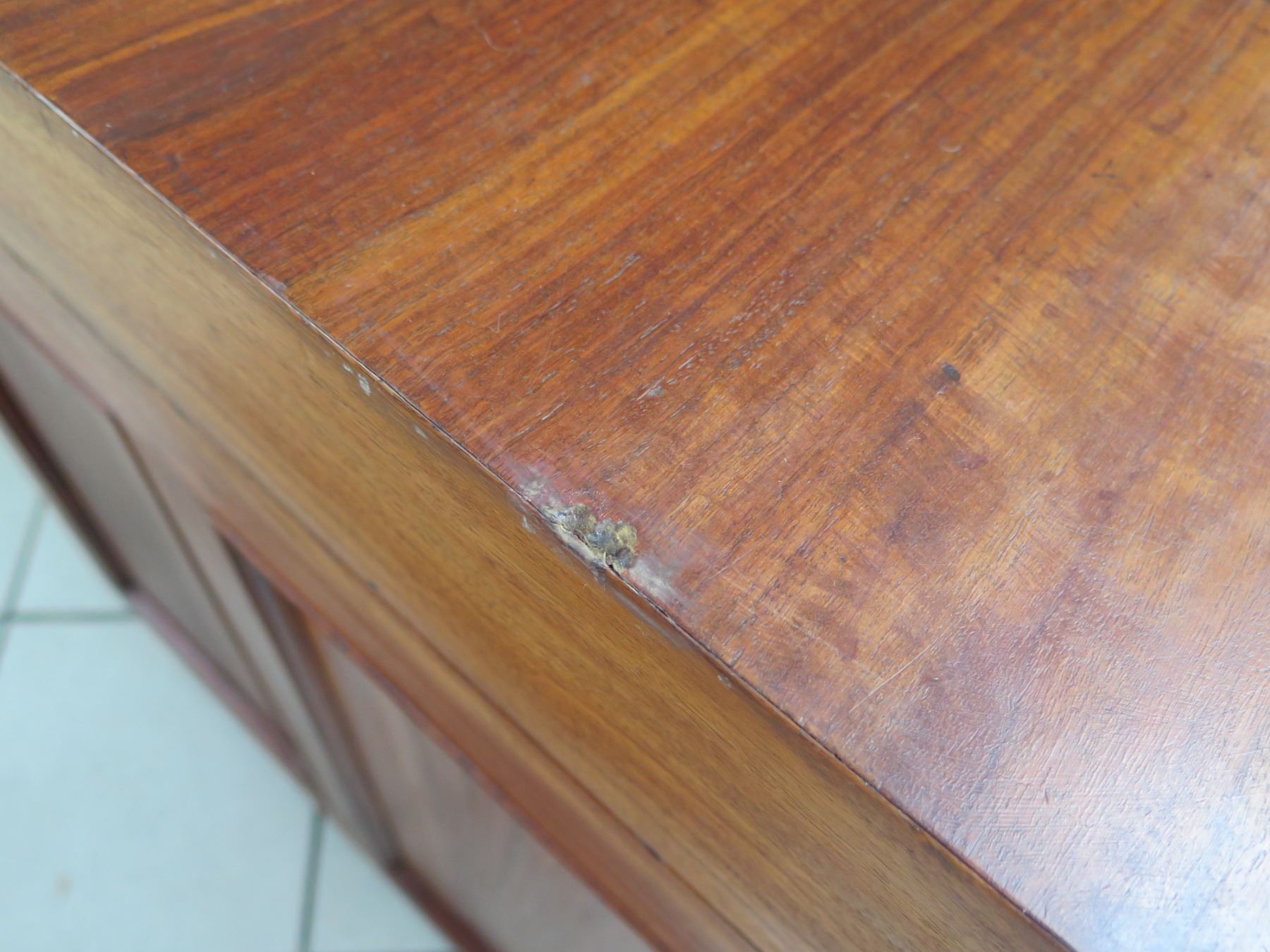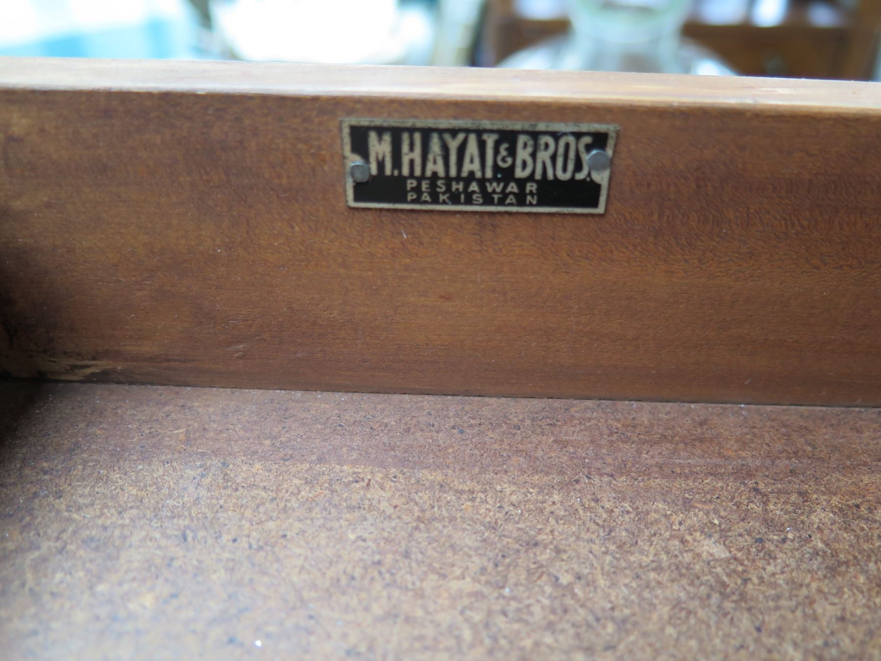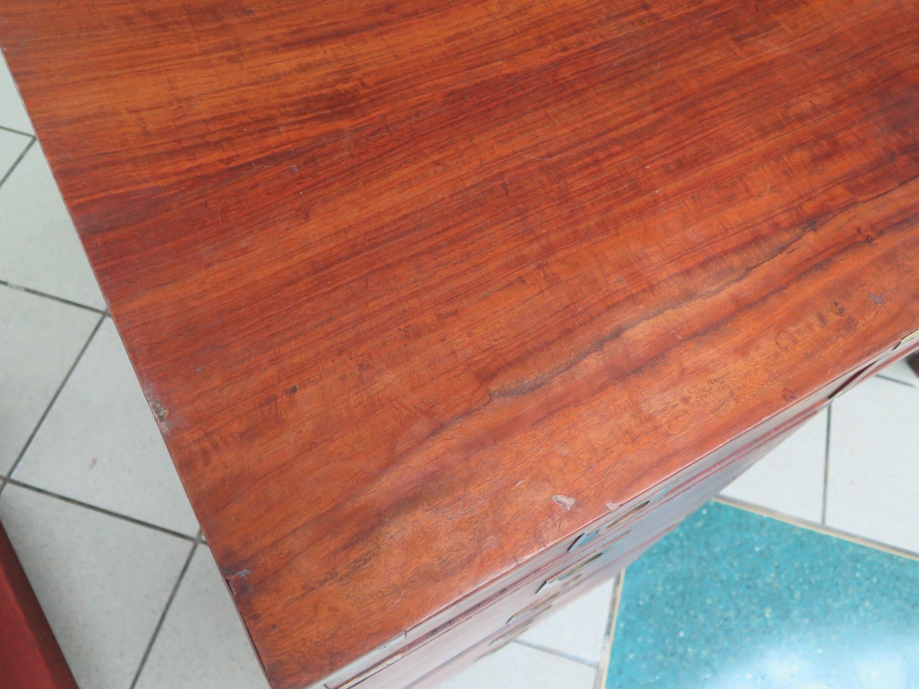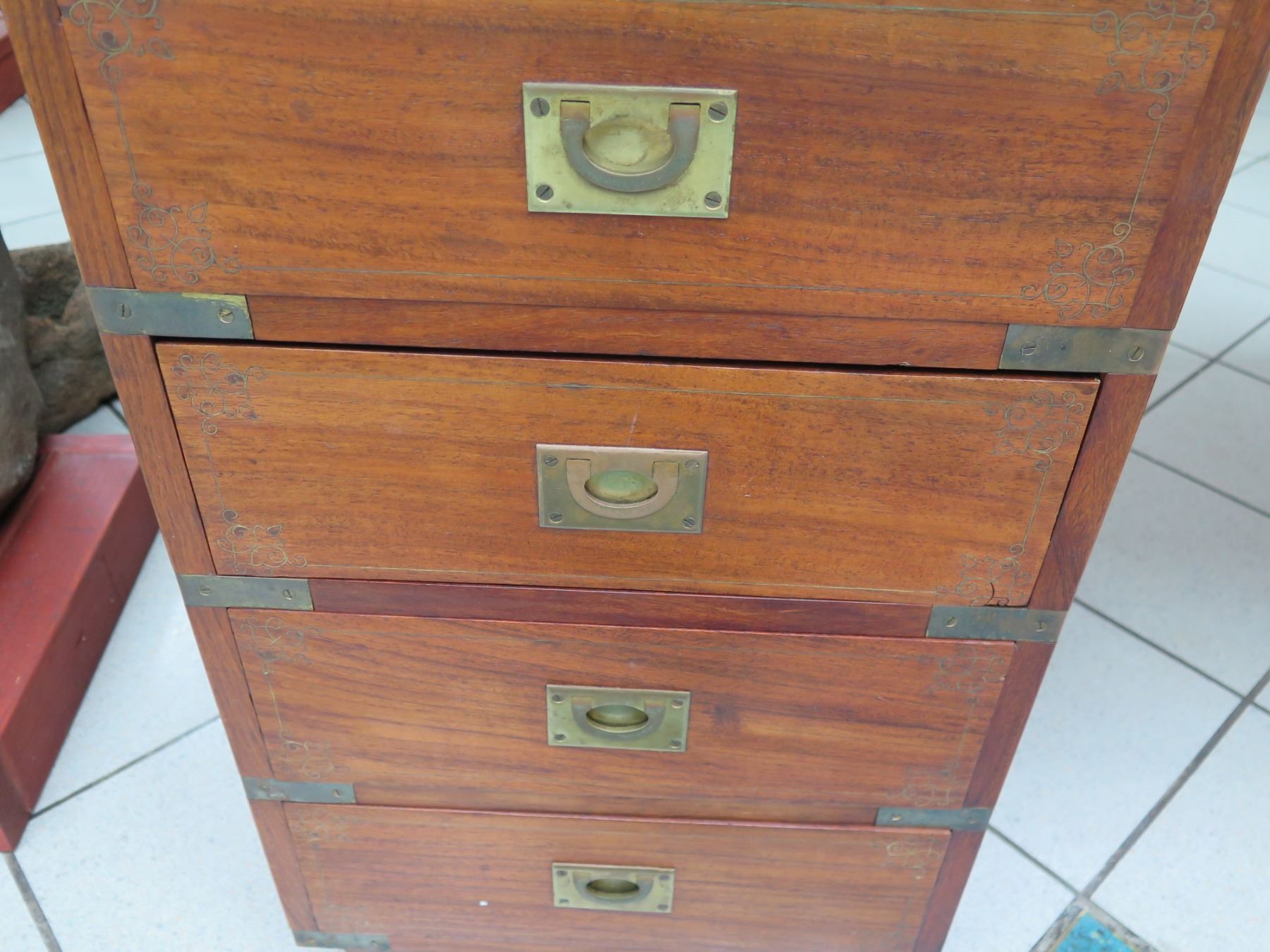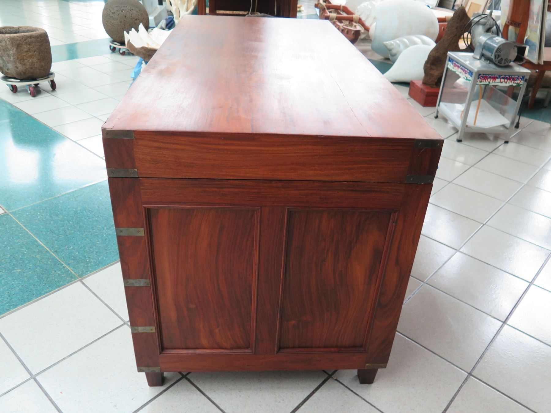 Wooden Desk with Inlaid Brass Filigree & Hardware, 59" x 29" x 31" H, Has Cosmetic Blemishes From Age (as shown in the pictures)