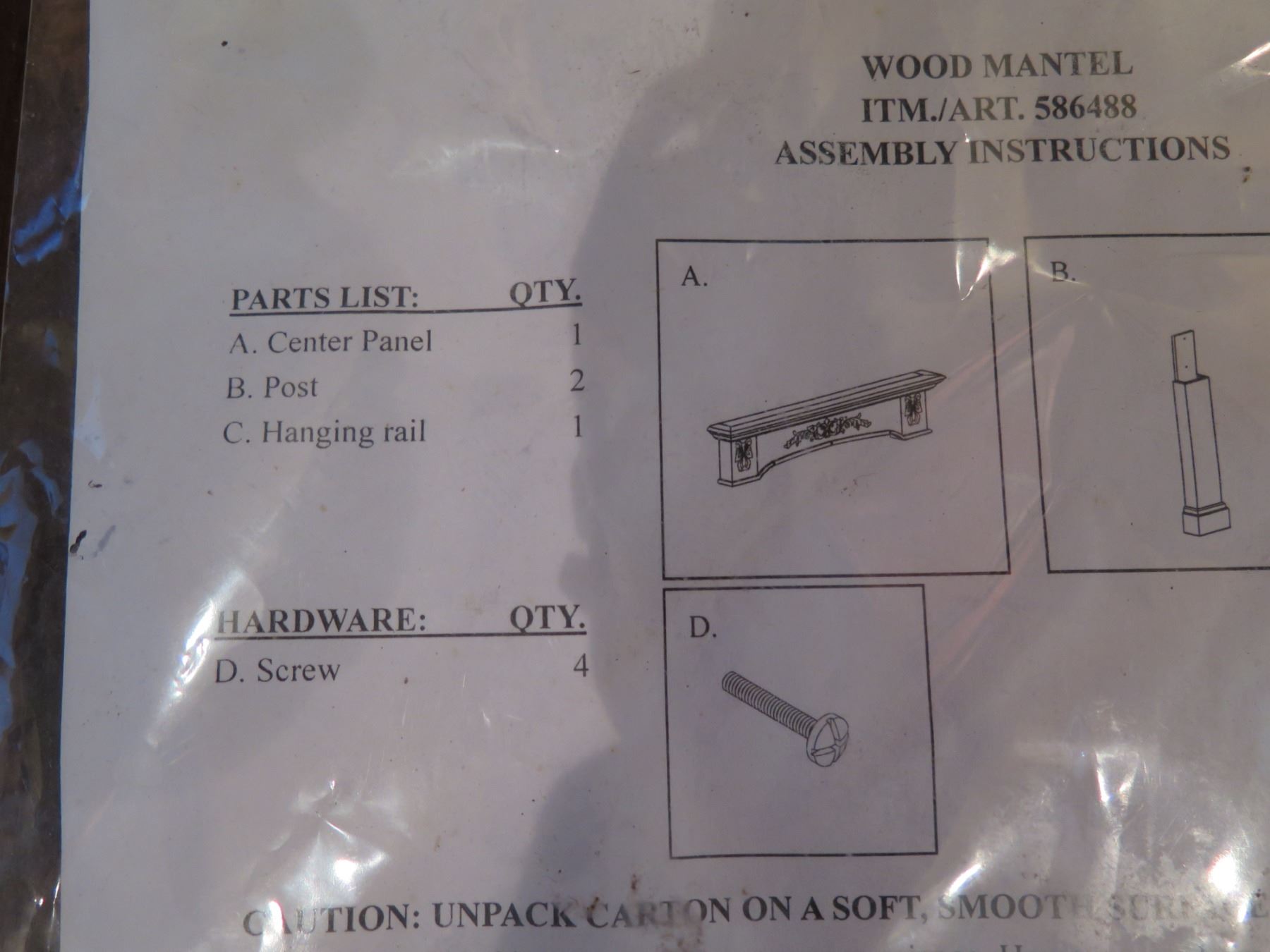 Wooden Fireplace Mantel w/ Raised Design Instructions included 47" x 65" x 10"