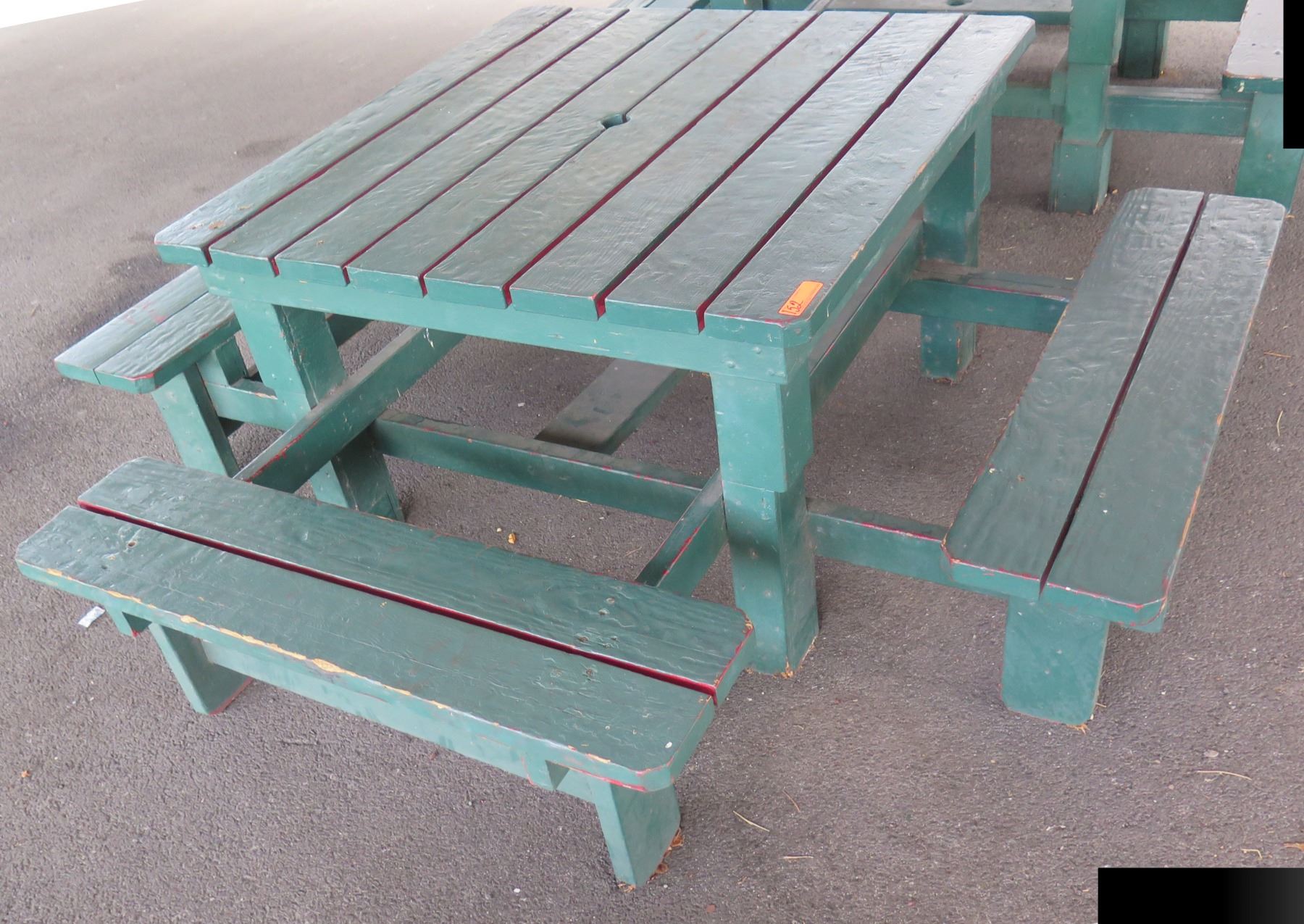 Wooden Green Picnic Table w/ 3 Attached Benches 84"x66"x30"H