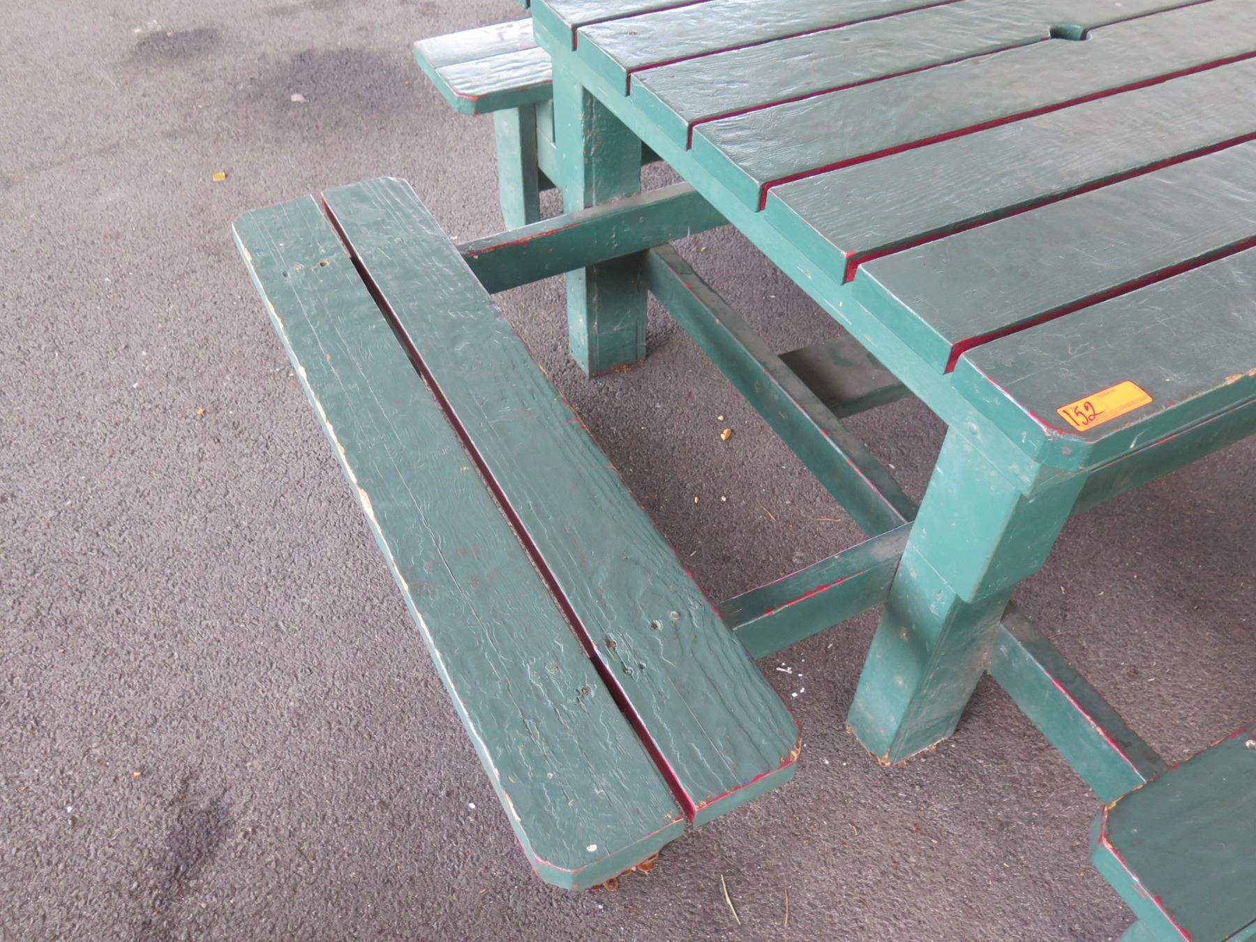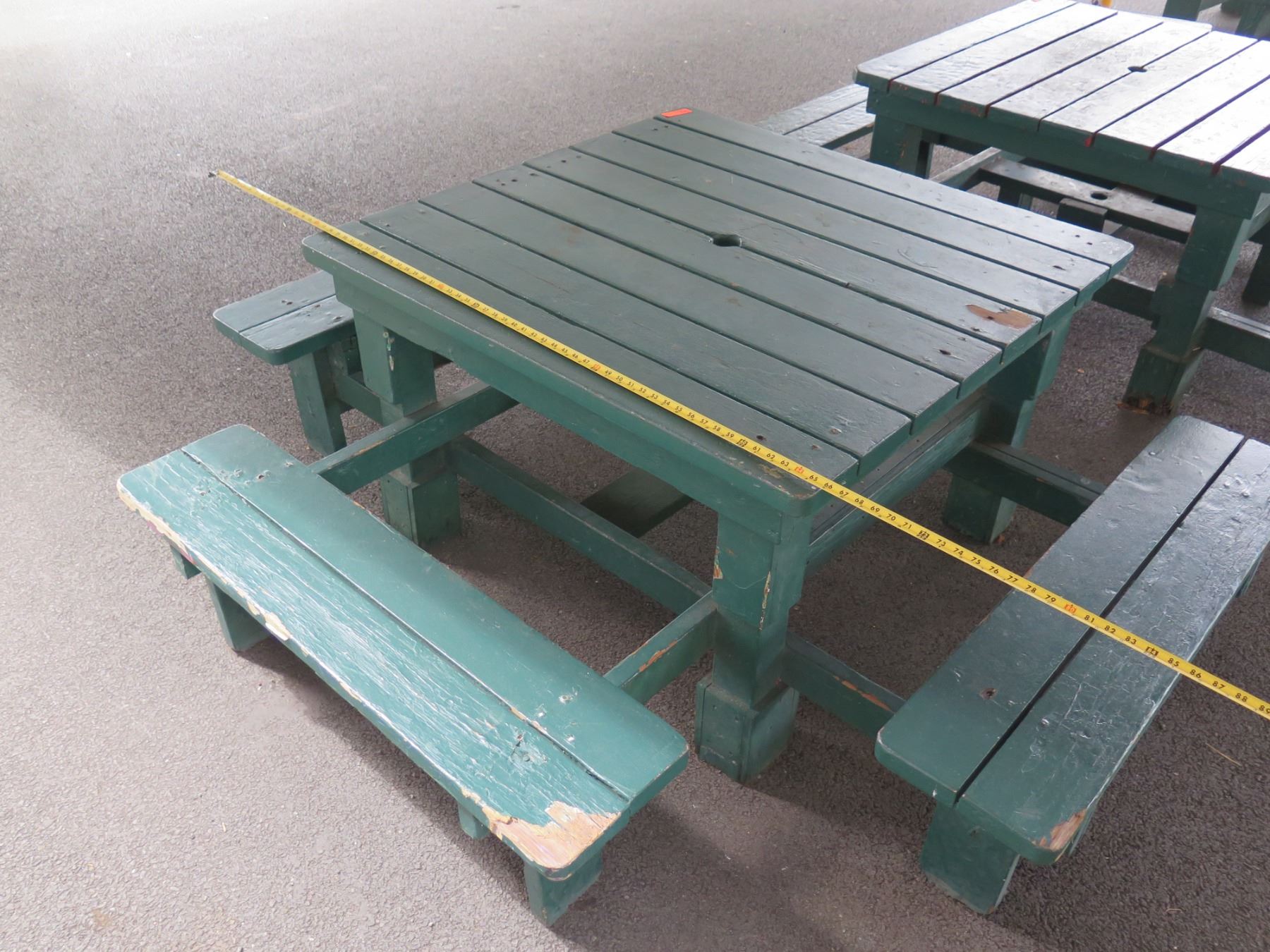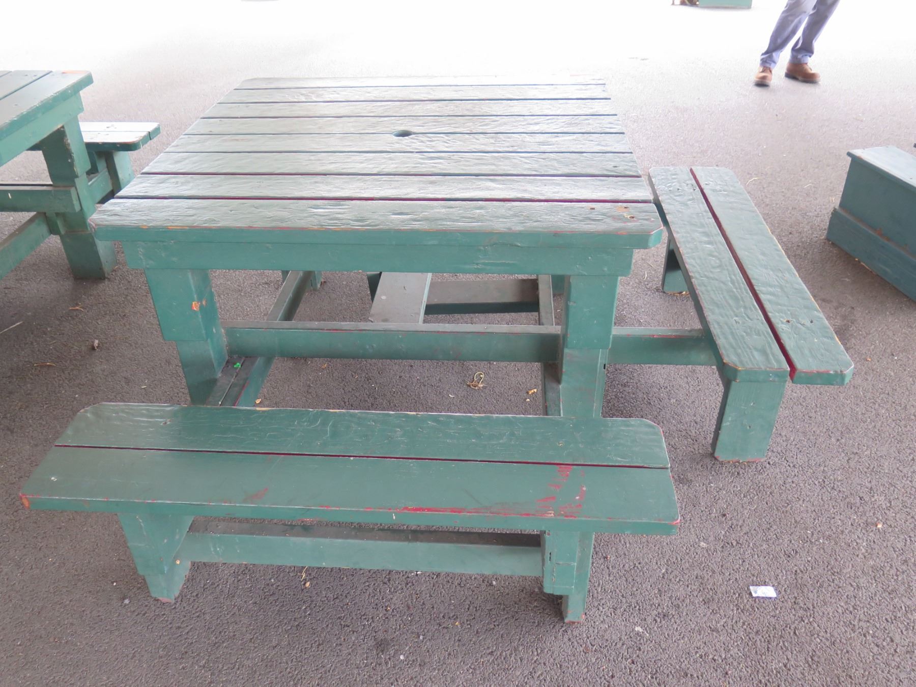 Wooden Green Picnic Table w/ 3 Attached Benches 84 x66 x30 H