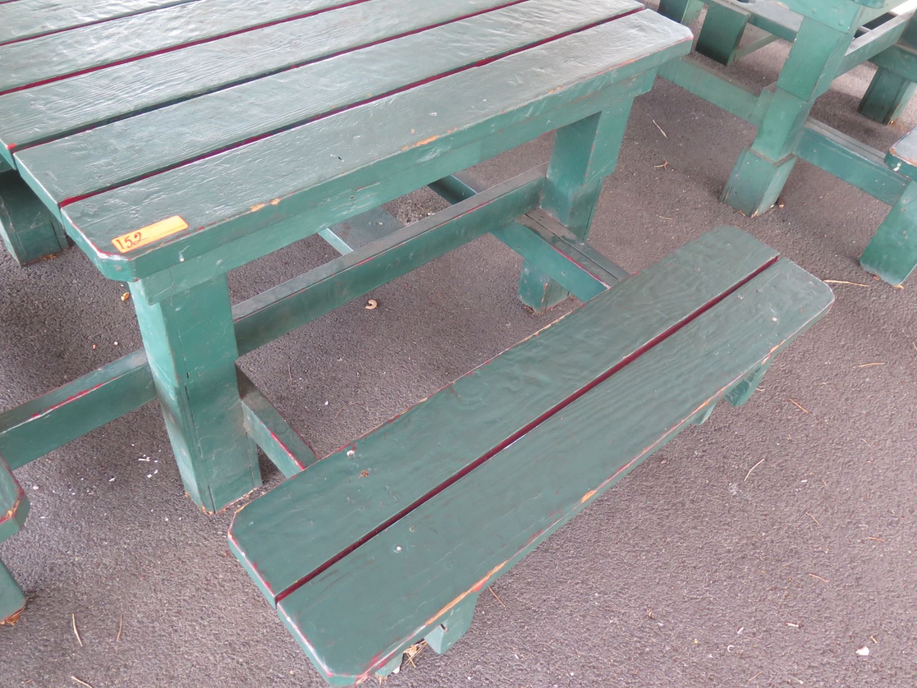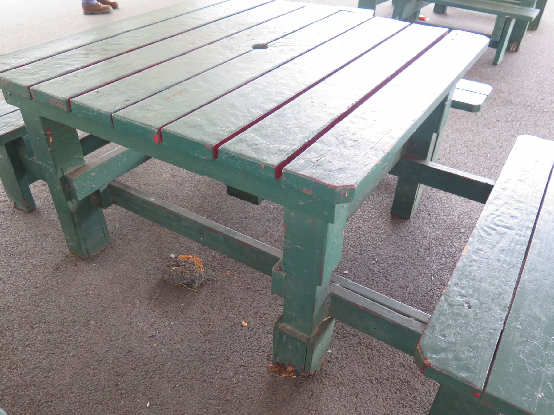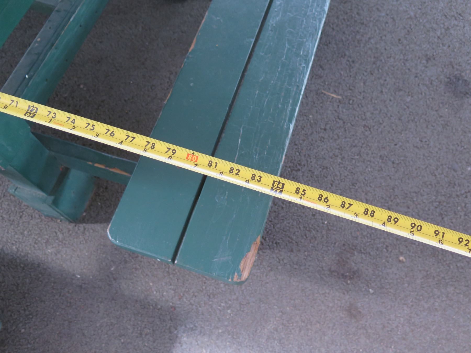 Wooden Green Picnic Table w/ 3 Attached Benches 84 x66 x30 H