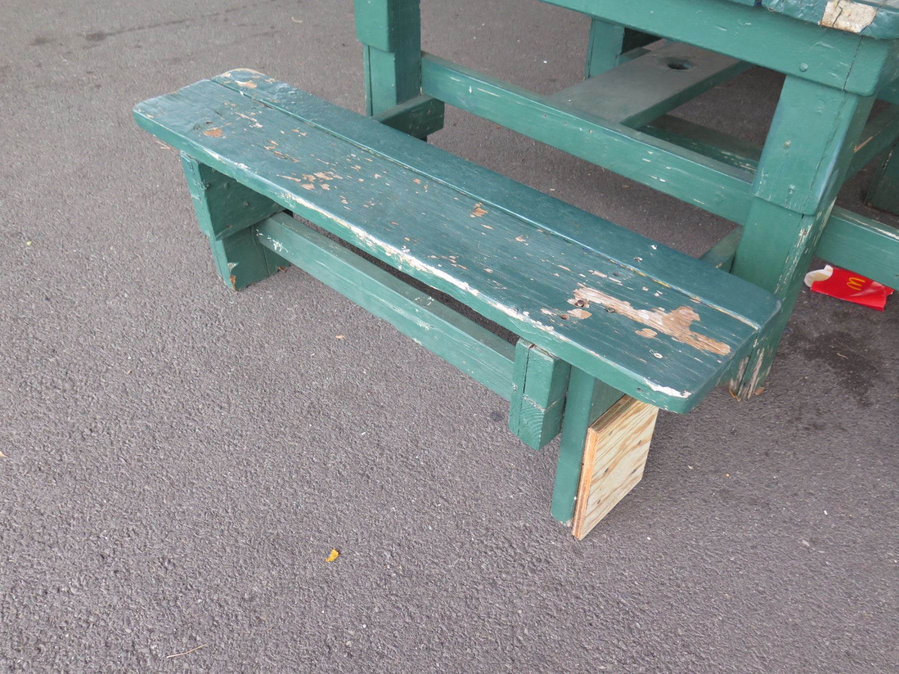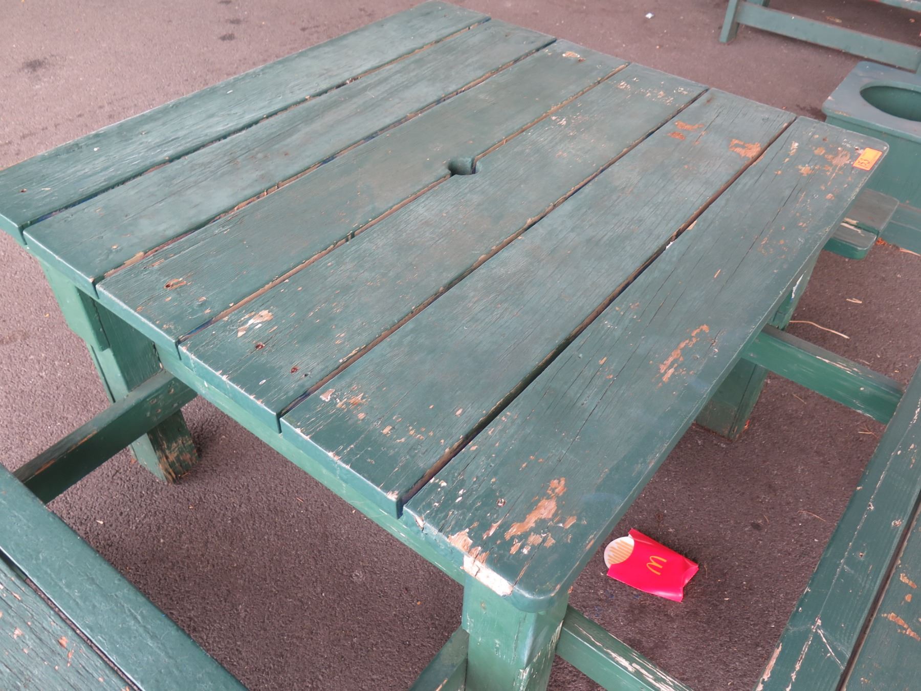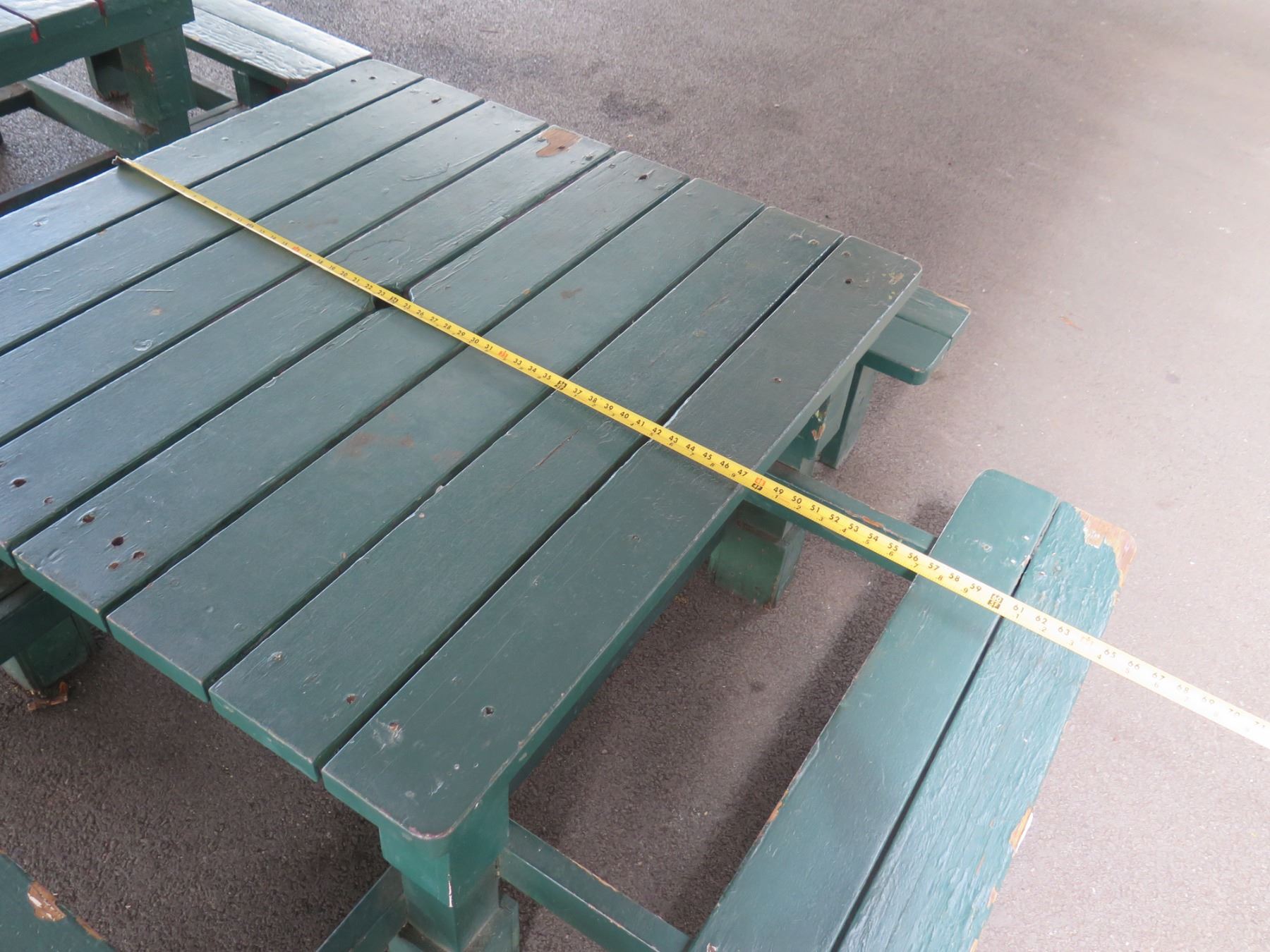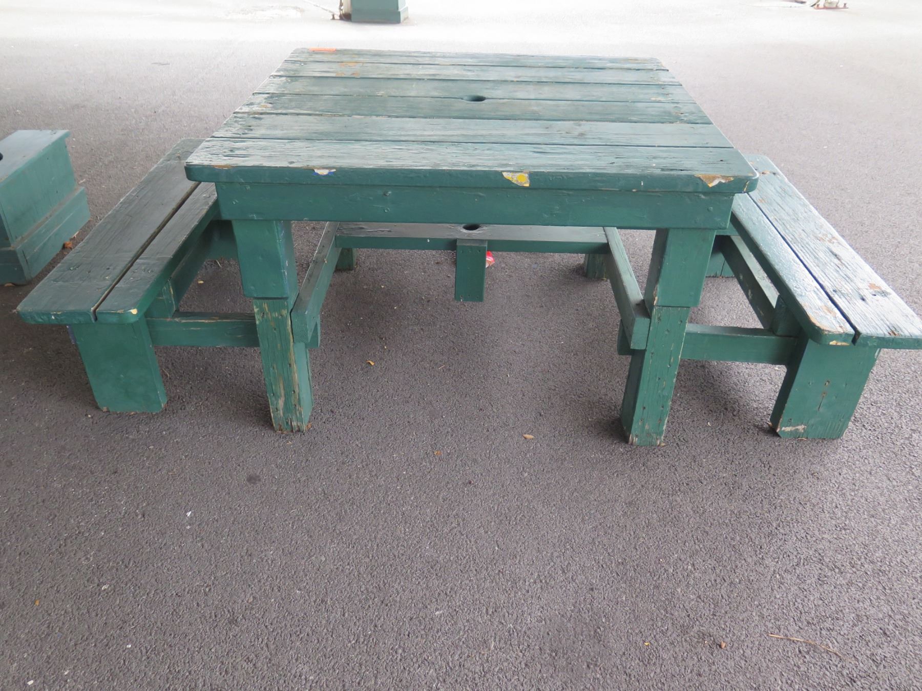 Wooden Green Picnic Table w/ 3 Attached Benches 84"x66"x30"H
