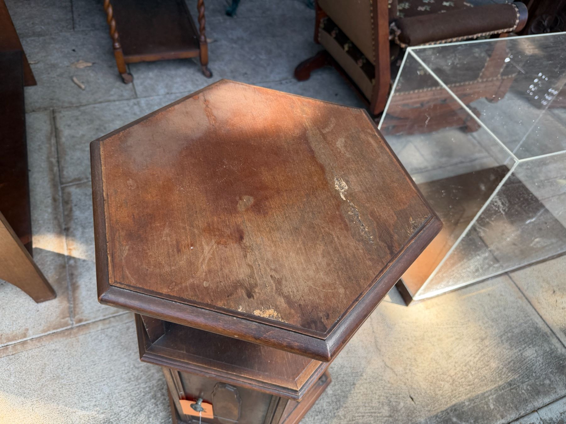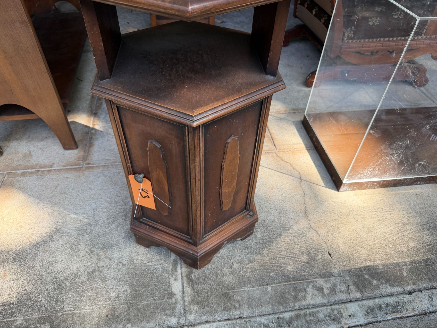 Wooden Hexagon Shaped Cabinet w/ Undershelf 15" Dia, 30"H