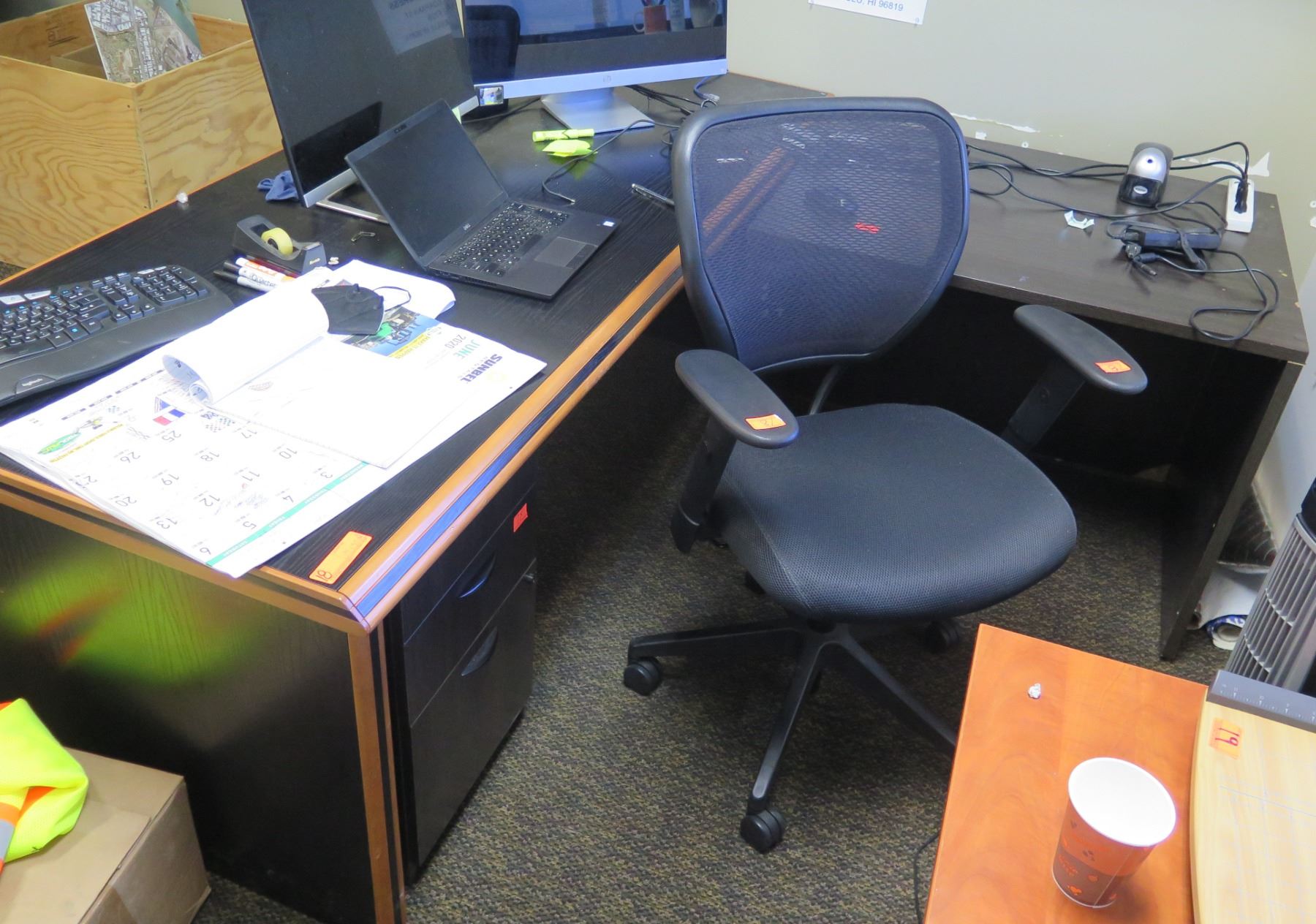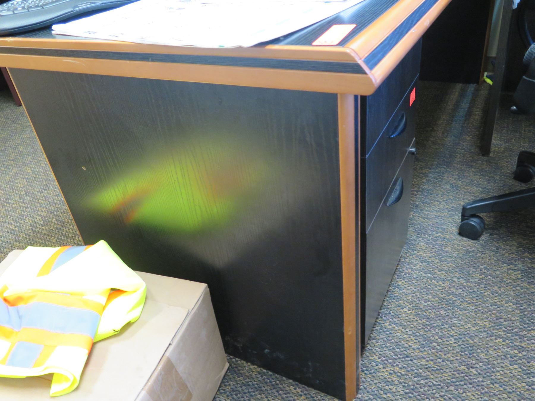 Wooden 'L' Shaped Desk 79"x35" w/ Rolling Chair & File Drawers (Contents not included)