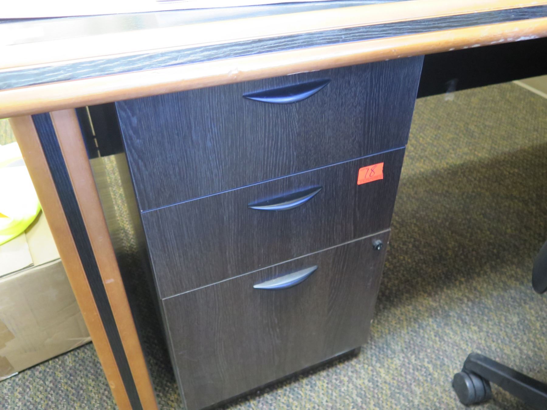 Wooden 'L' Shaped Desk 79 x35  w/ Rolling Chair & File Drawers (Contents not included)
