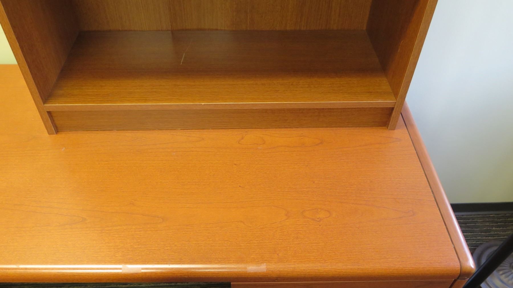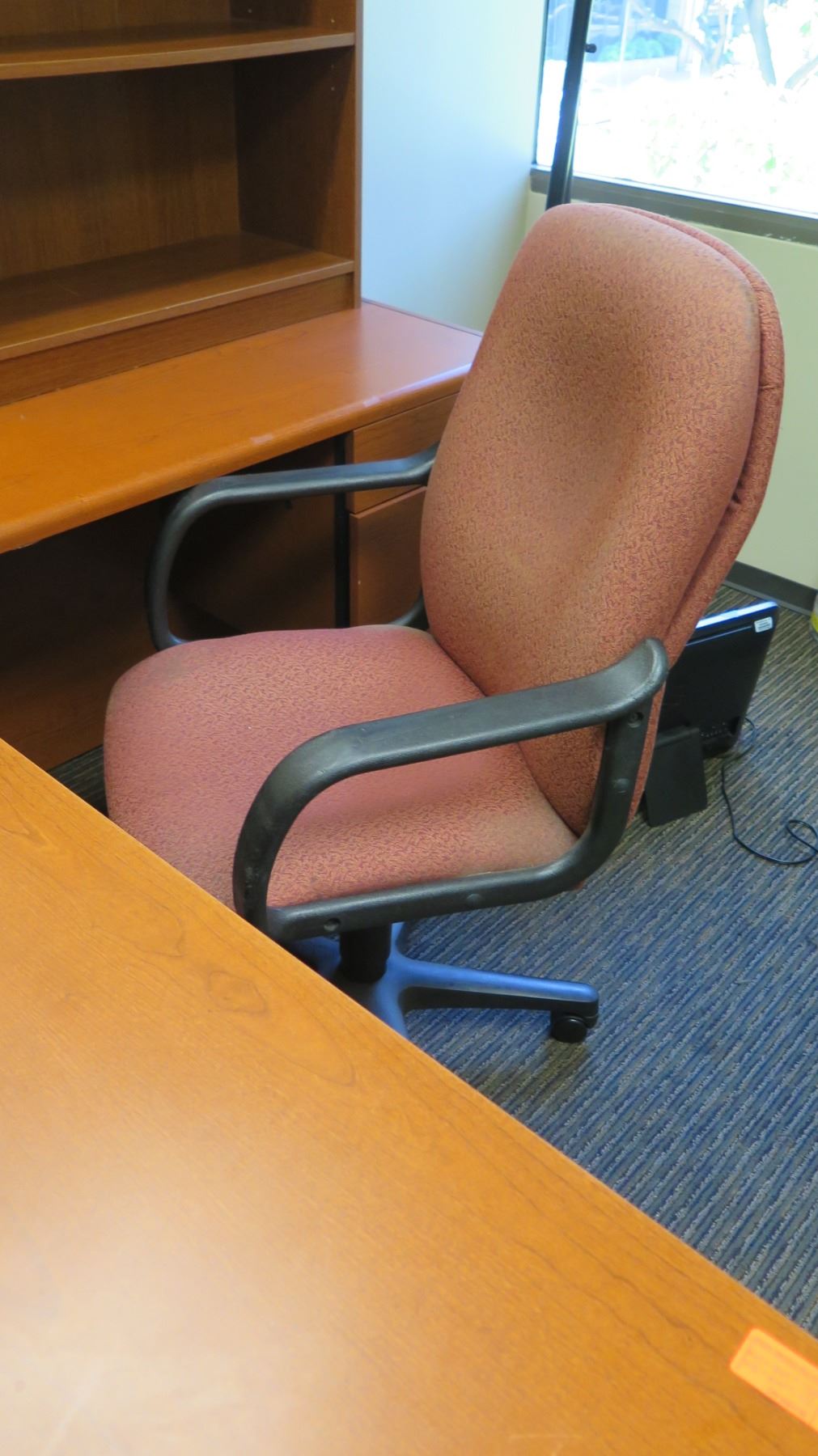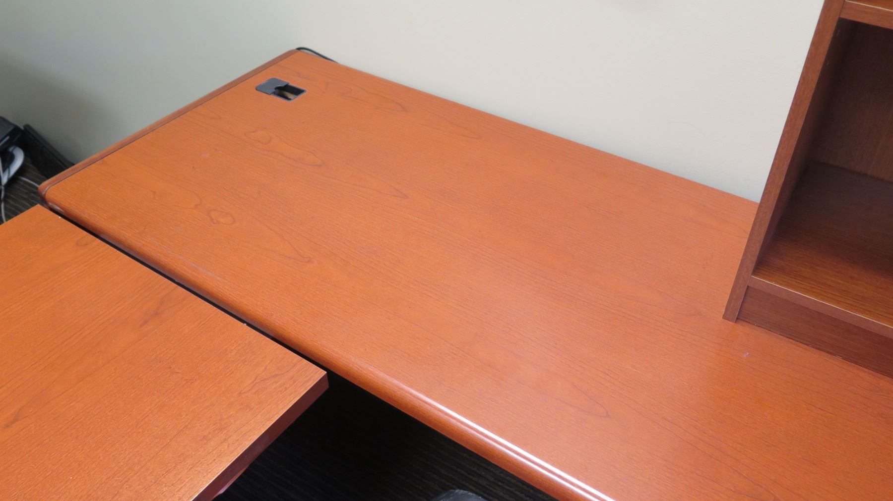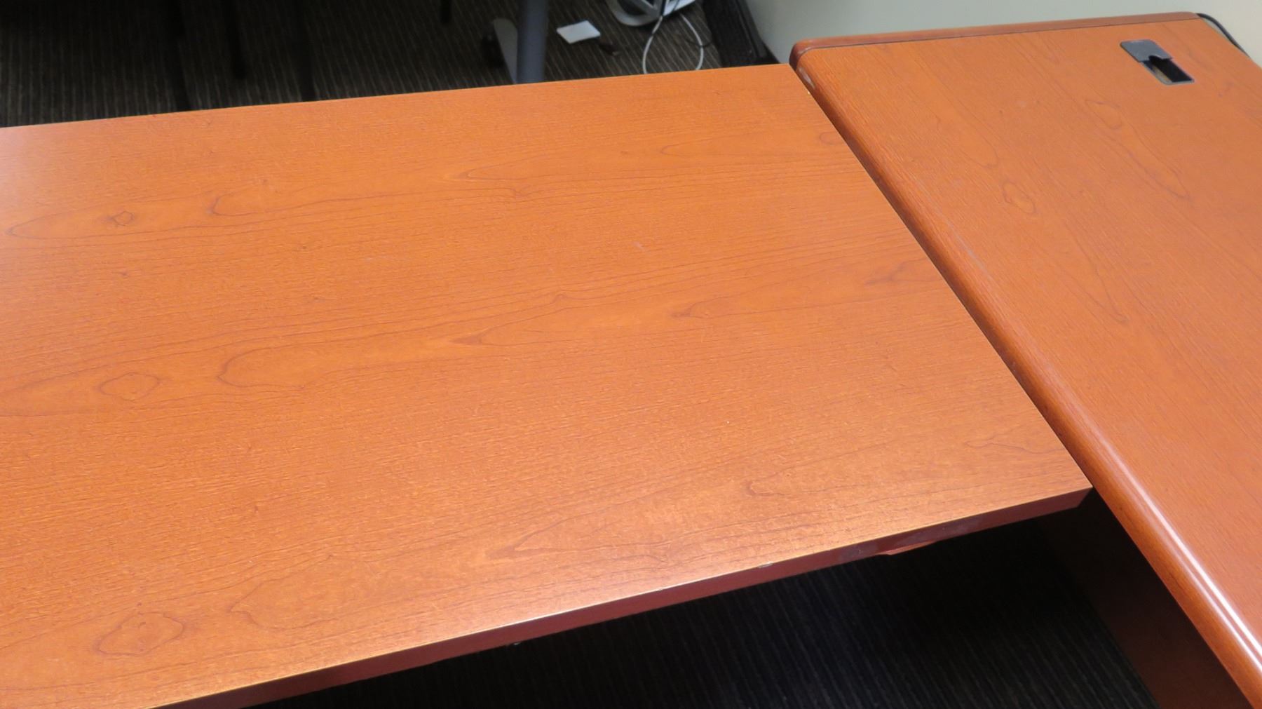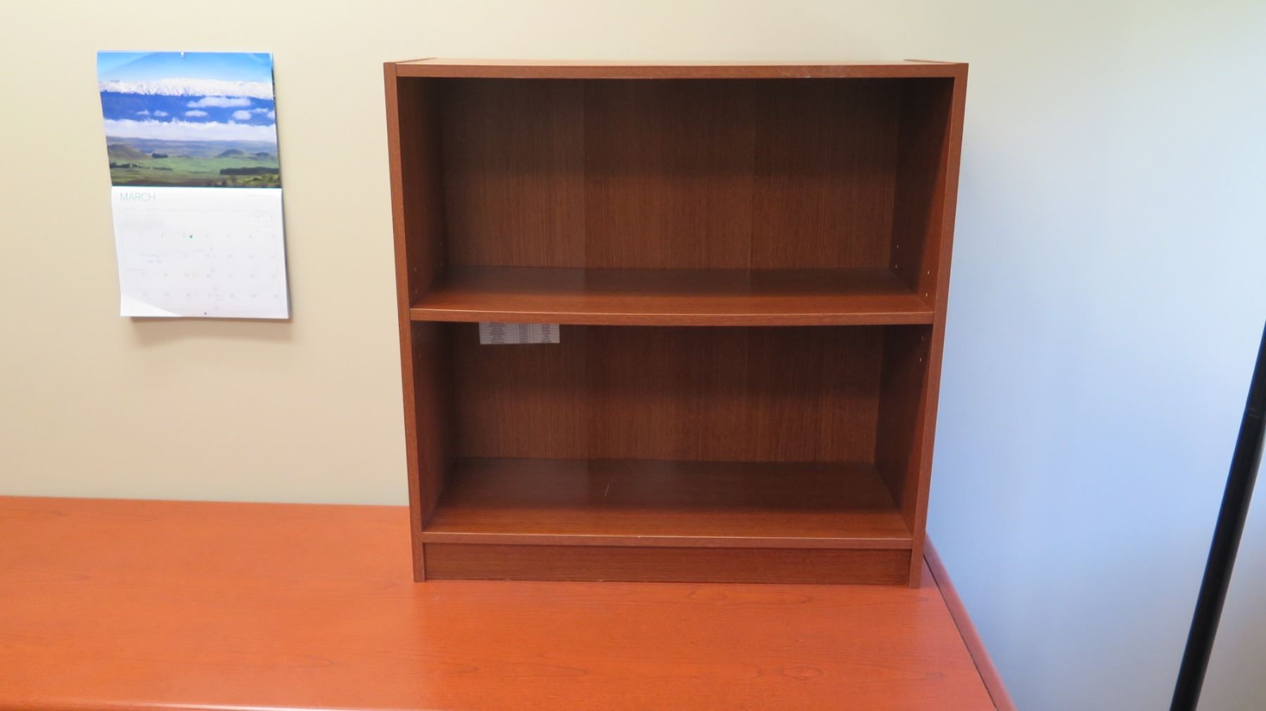 Wooden L-Shaped Desk Ensemble w/ Office Chair, Small Bookcase 72"x24"30"H & 48"x24"29"H. Buyer will be responsible for disassembling and removing all purchased items in this auction. Buyer must bring own tools, carts, etc. Loadout Thursday, May 9 to Saturday May 11. Detailed directions to building’s loading zone and designated load-out areas will be provided.