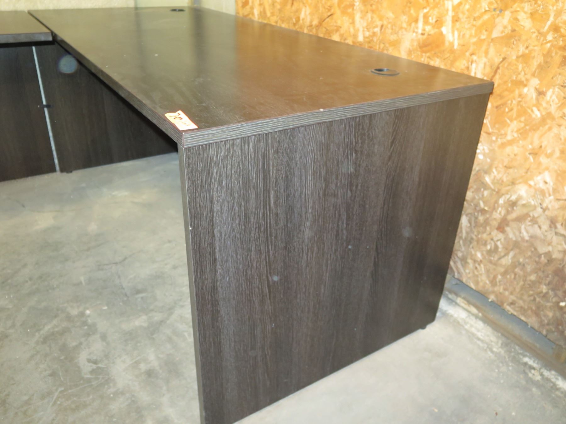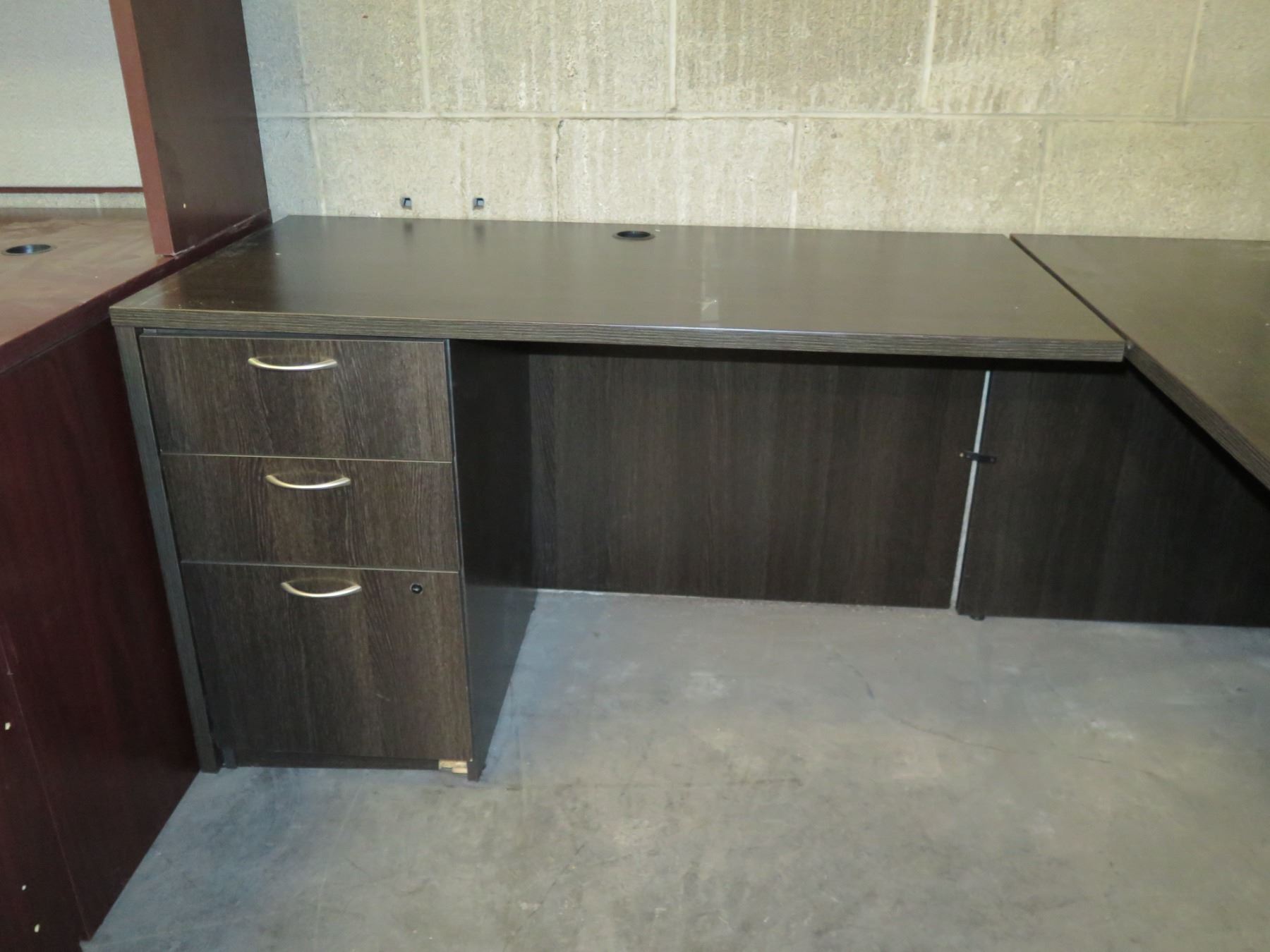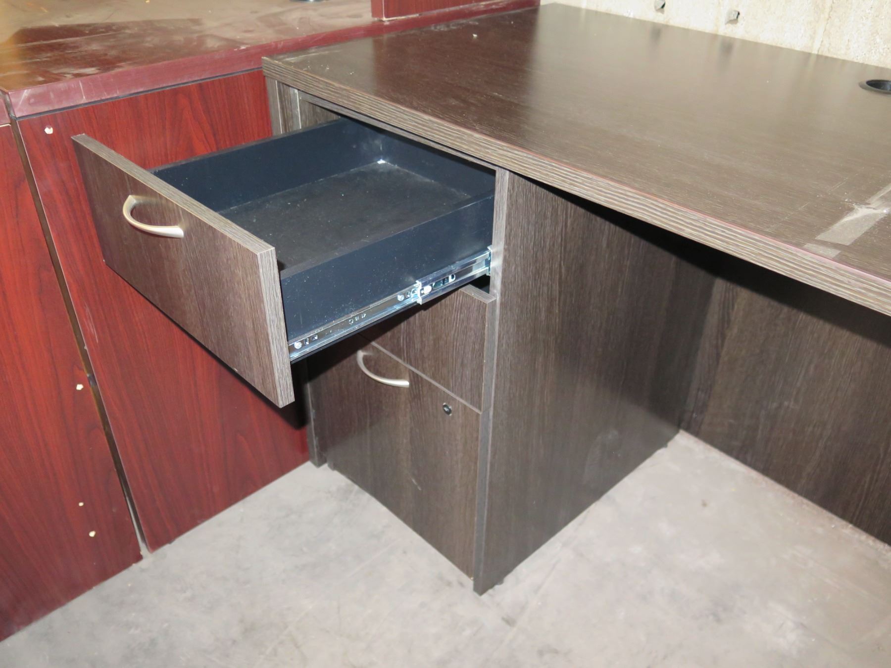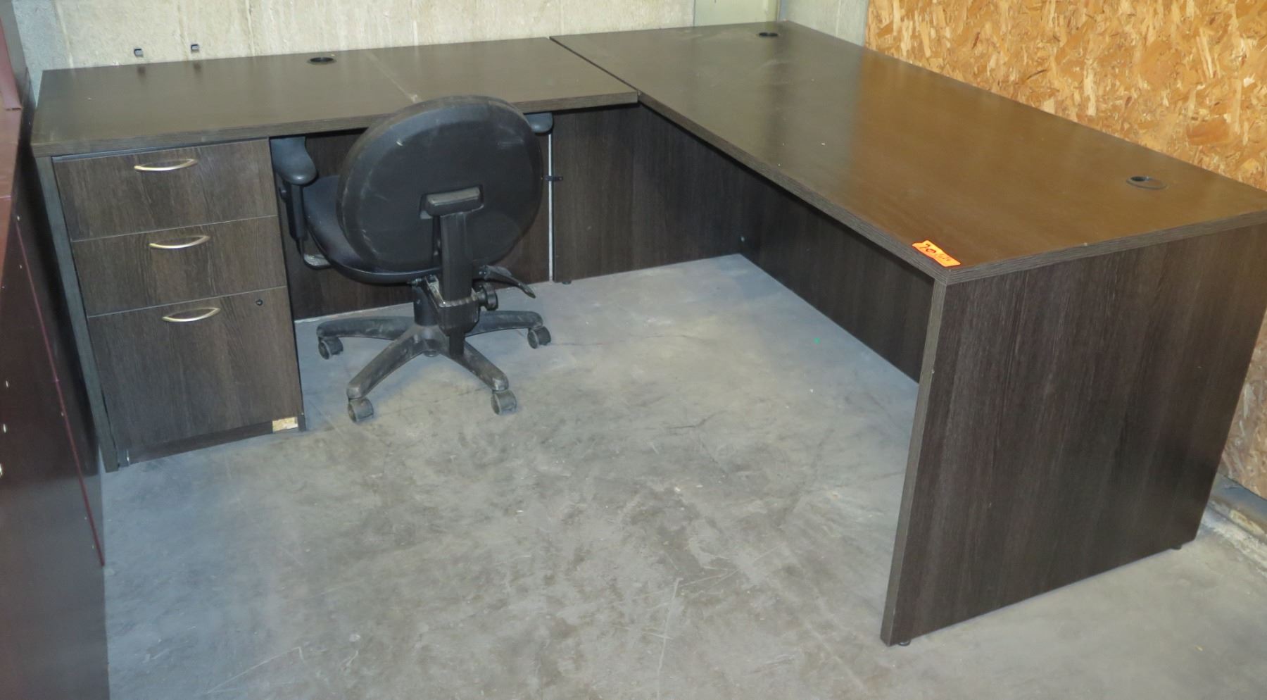 Wooden 'L' Shaped Desk w/ 3 Drawer Cabinet & Rolling Office Chair 78"x66"x29"H