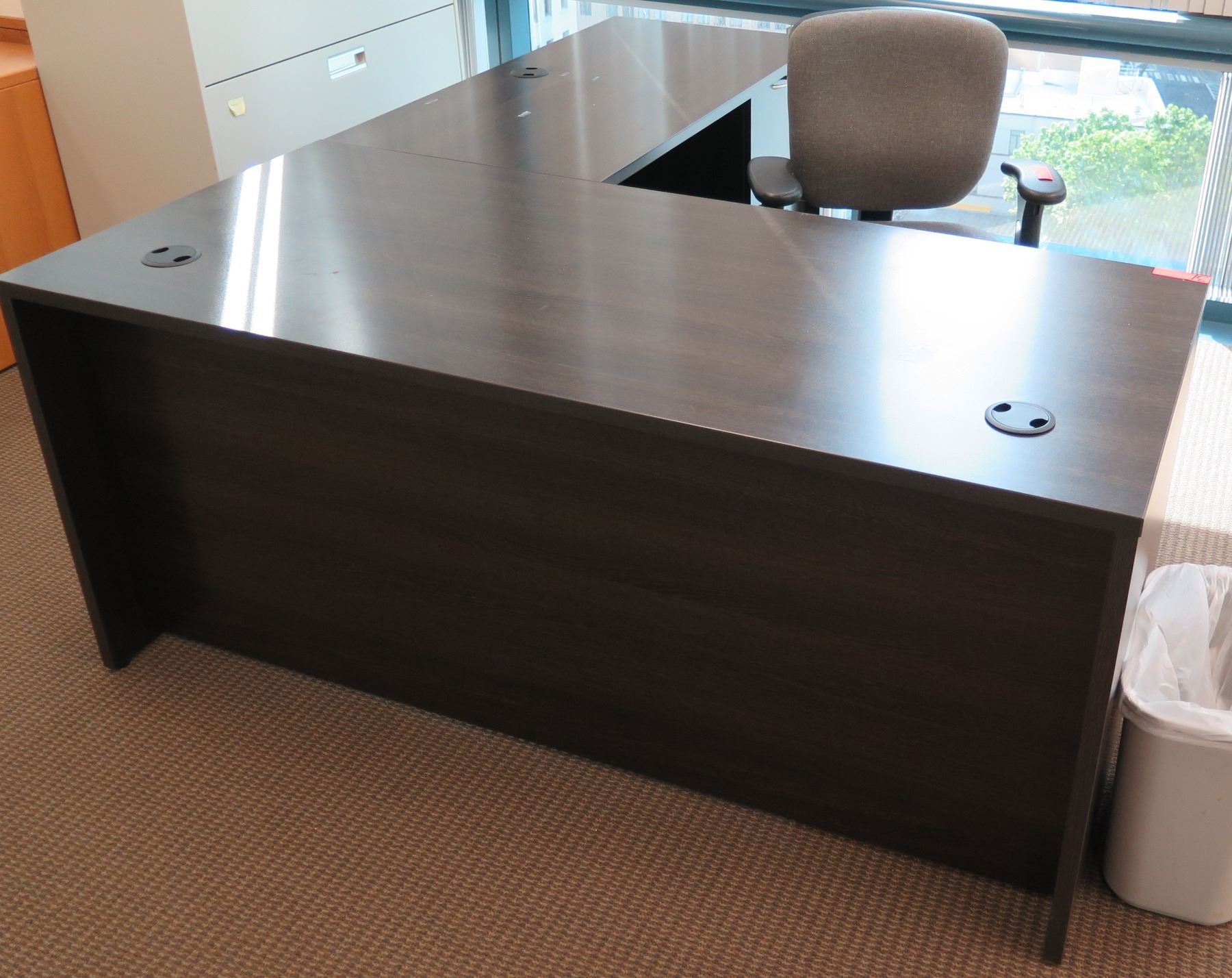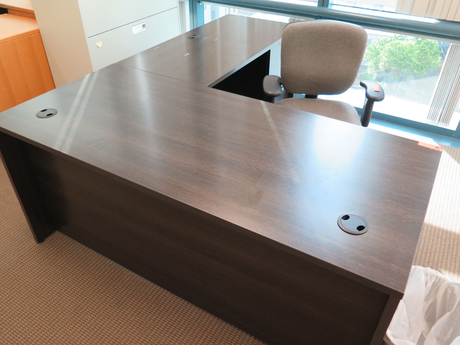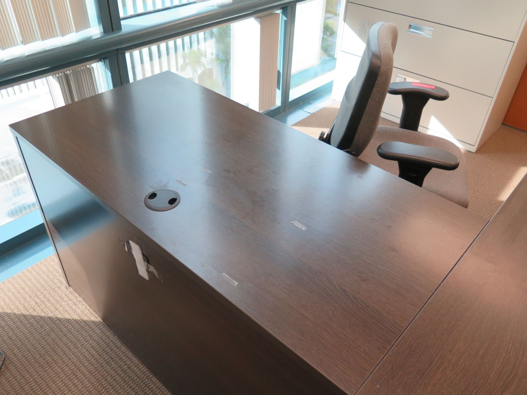 Wooden 'L' Shaped Desk w/ Drawers & Rolling Office Chair