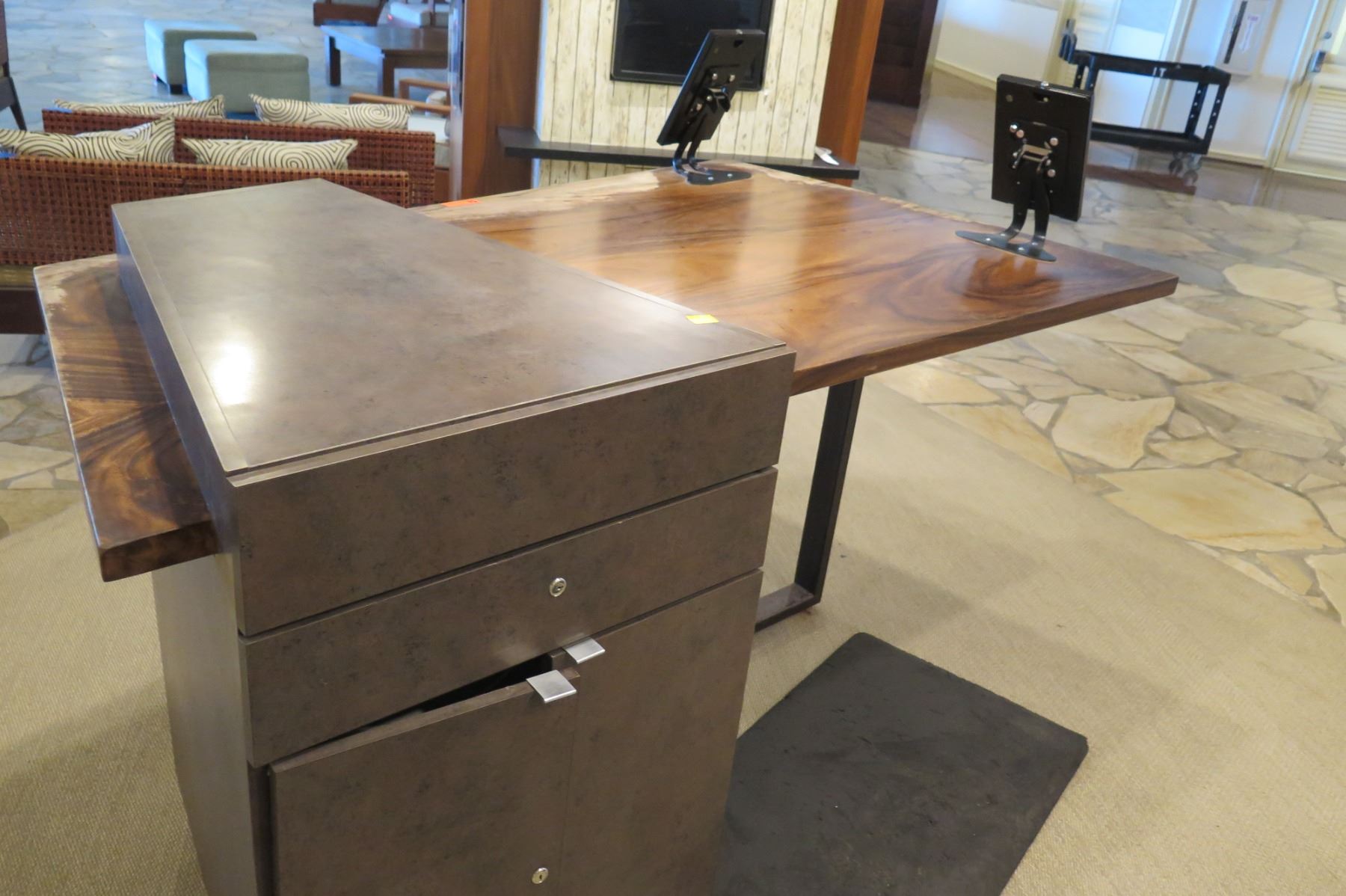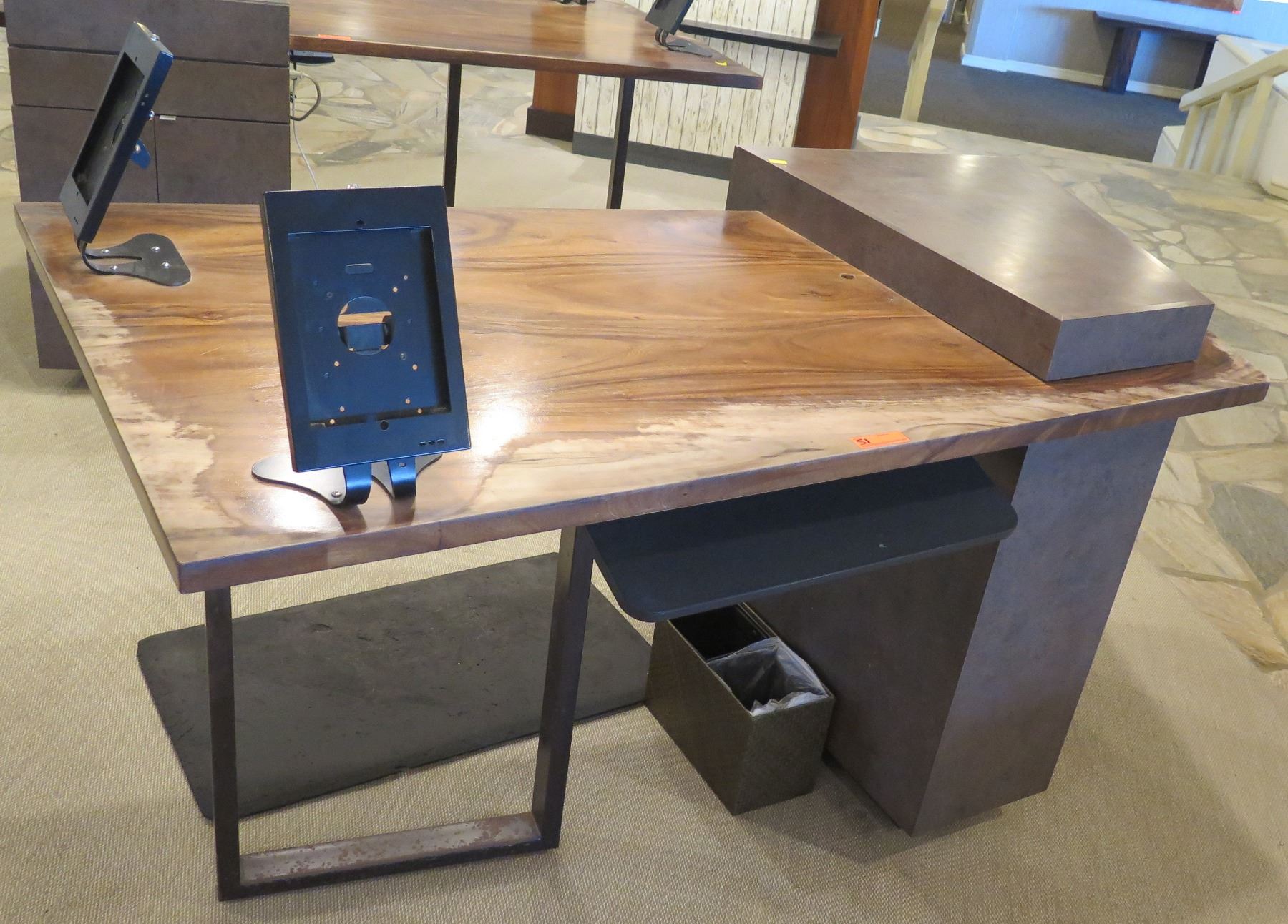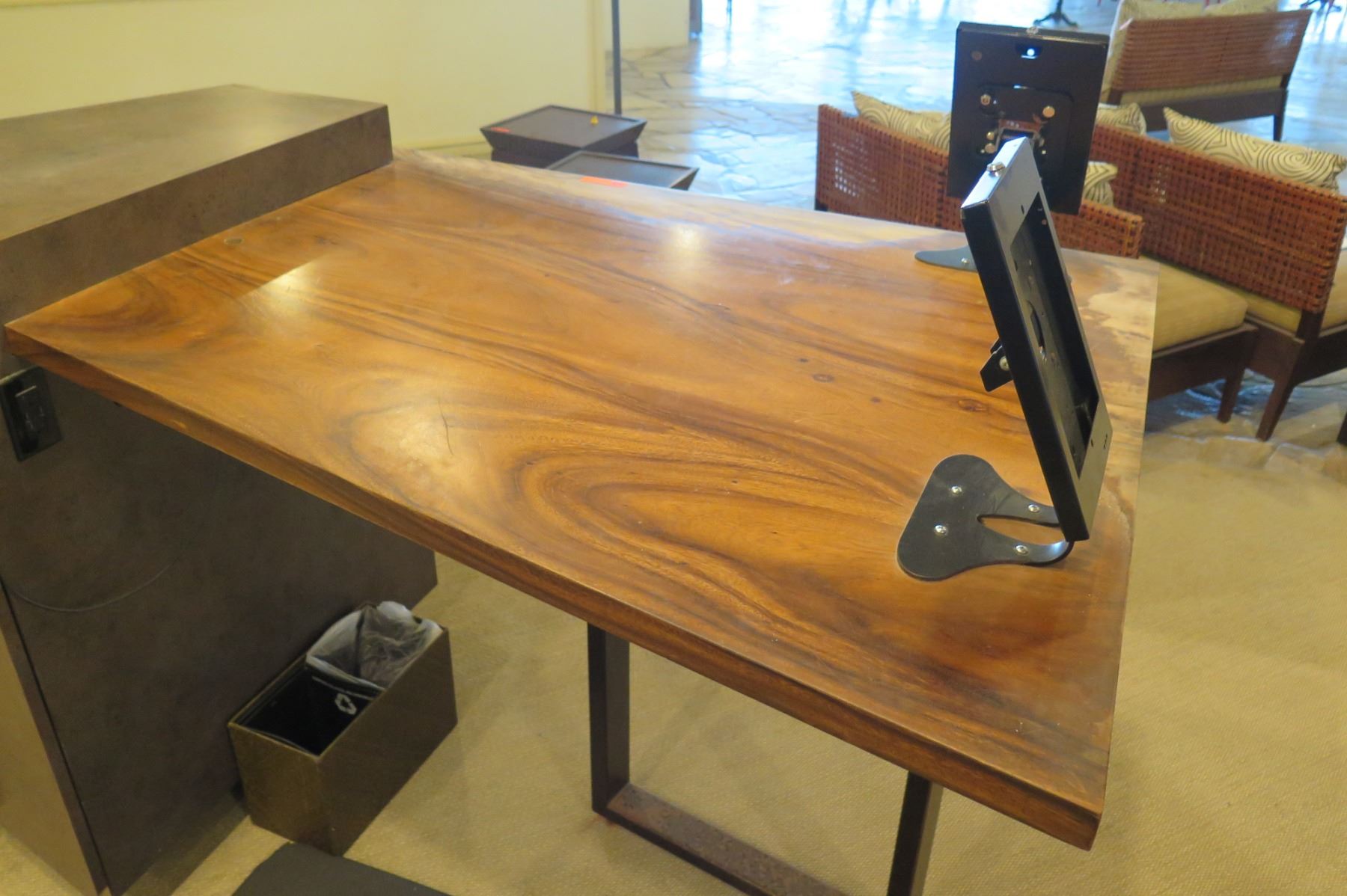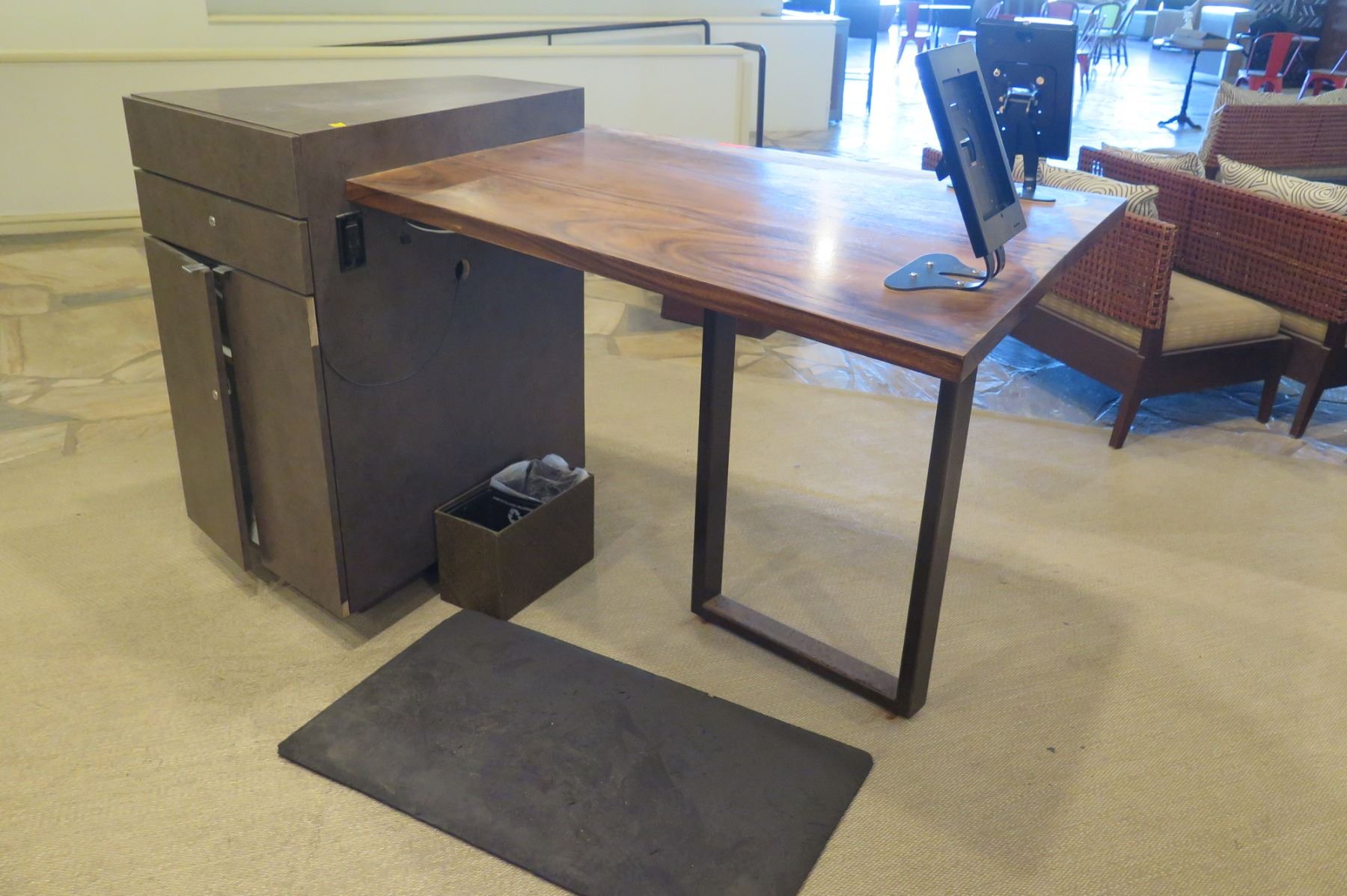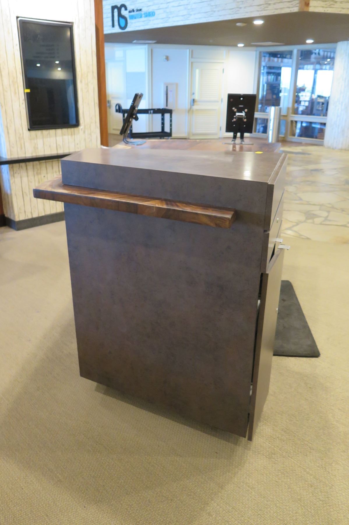 Wooden Reception Desk w/ Attached Cabinet & 2 Tablet Holders