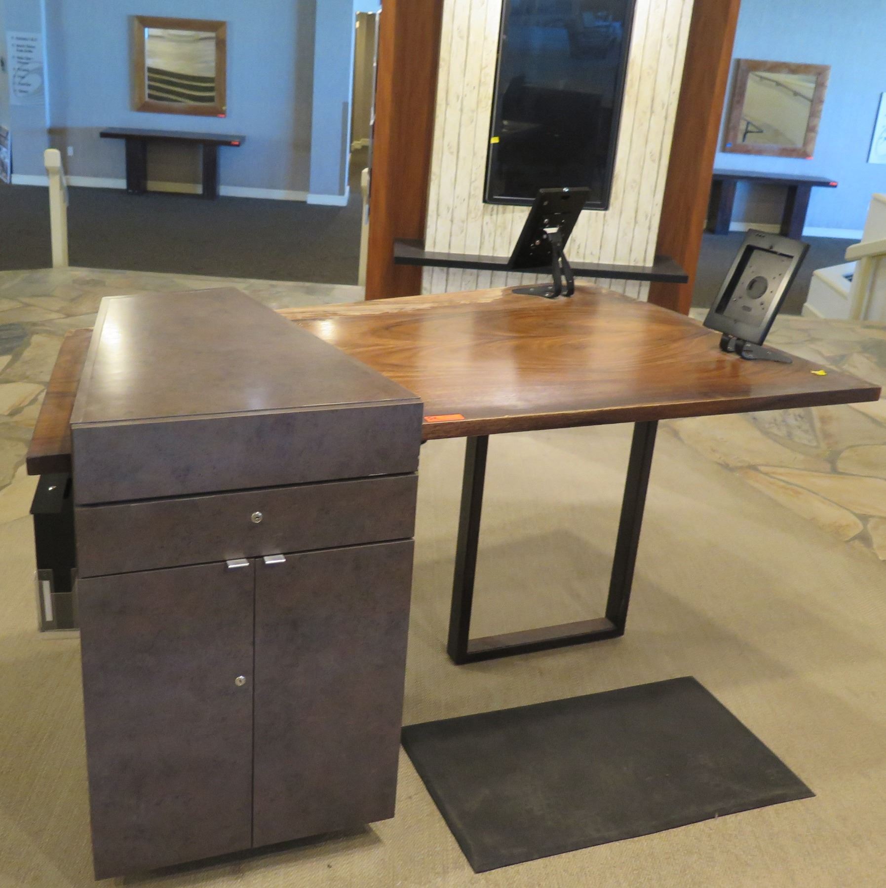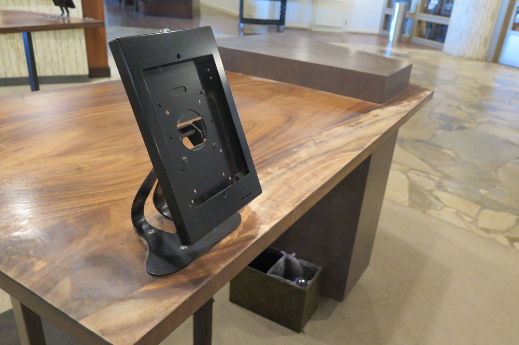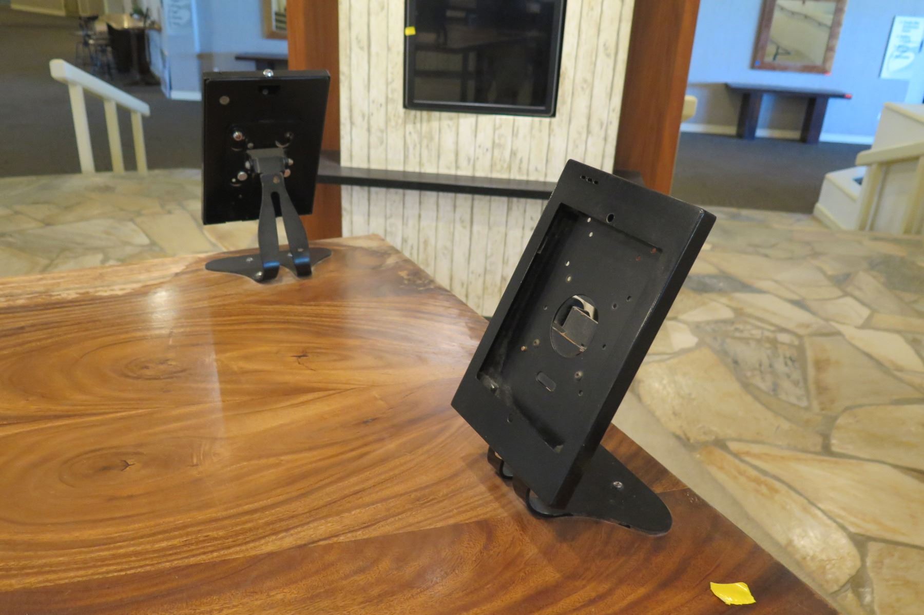 Wooden Reception Desk w/ Attached Cabinet & 2 Tablet Holders