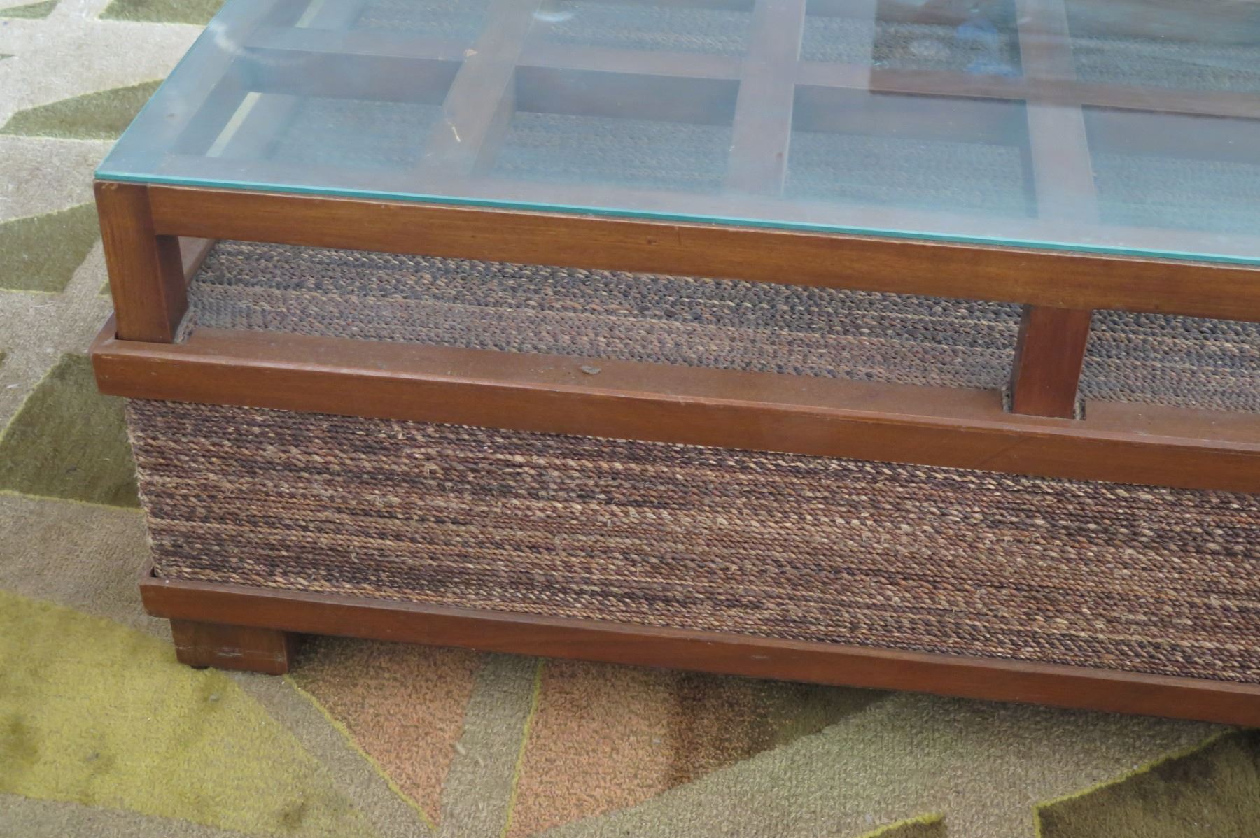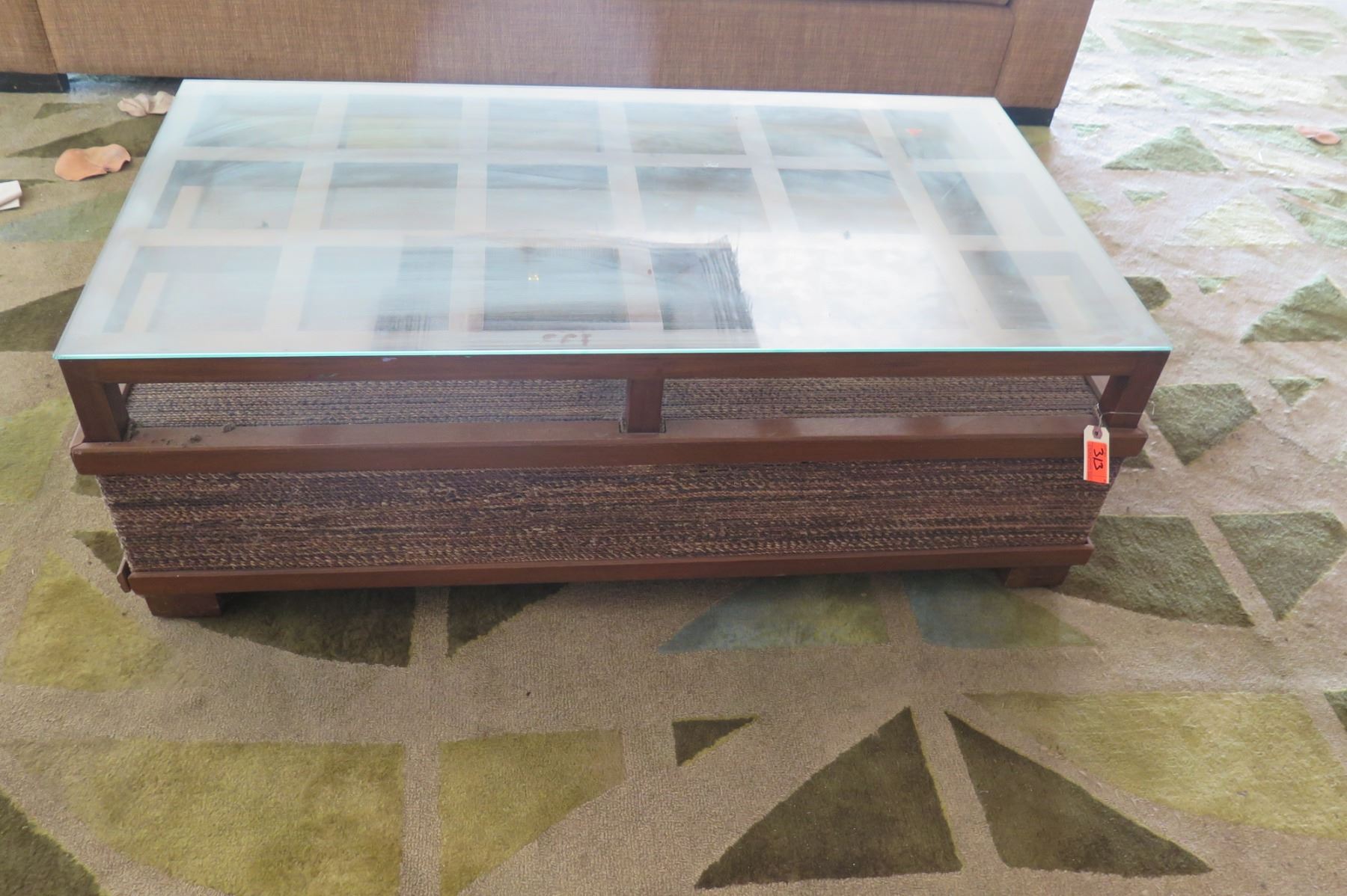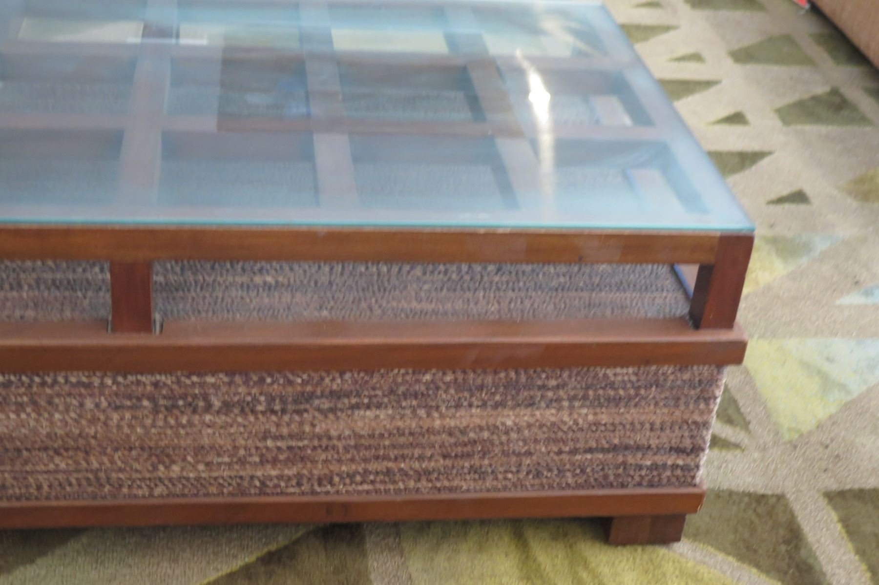 Wooden Rectangular Coffee Table w/ Glass Top & Woven Base 50" x 27"D x 17"H