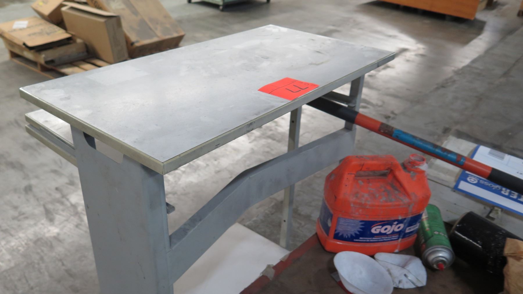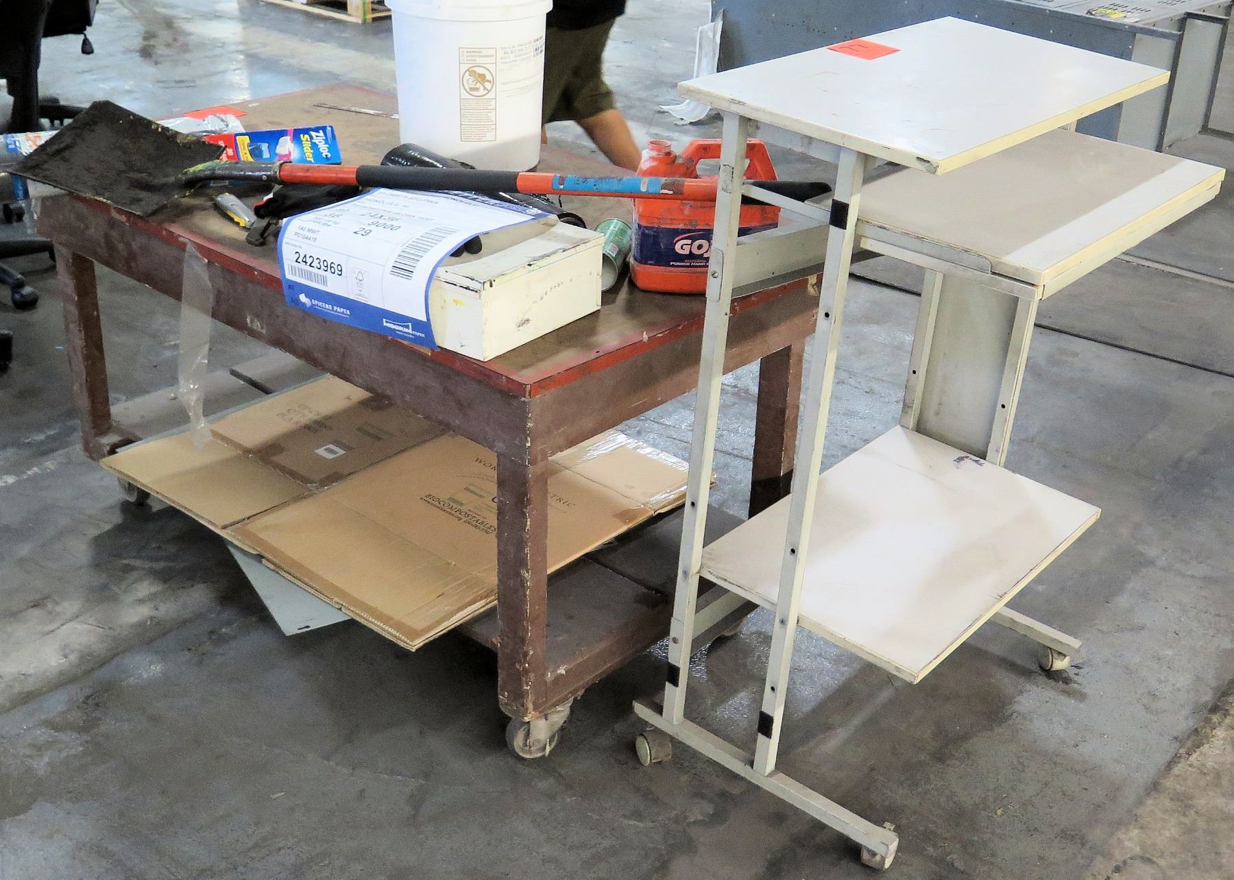 Wooden Rolling Work Table w/ Misc. Supplies & Supply Stand