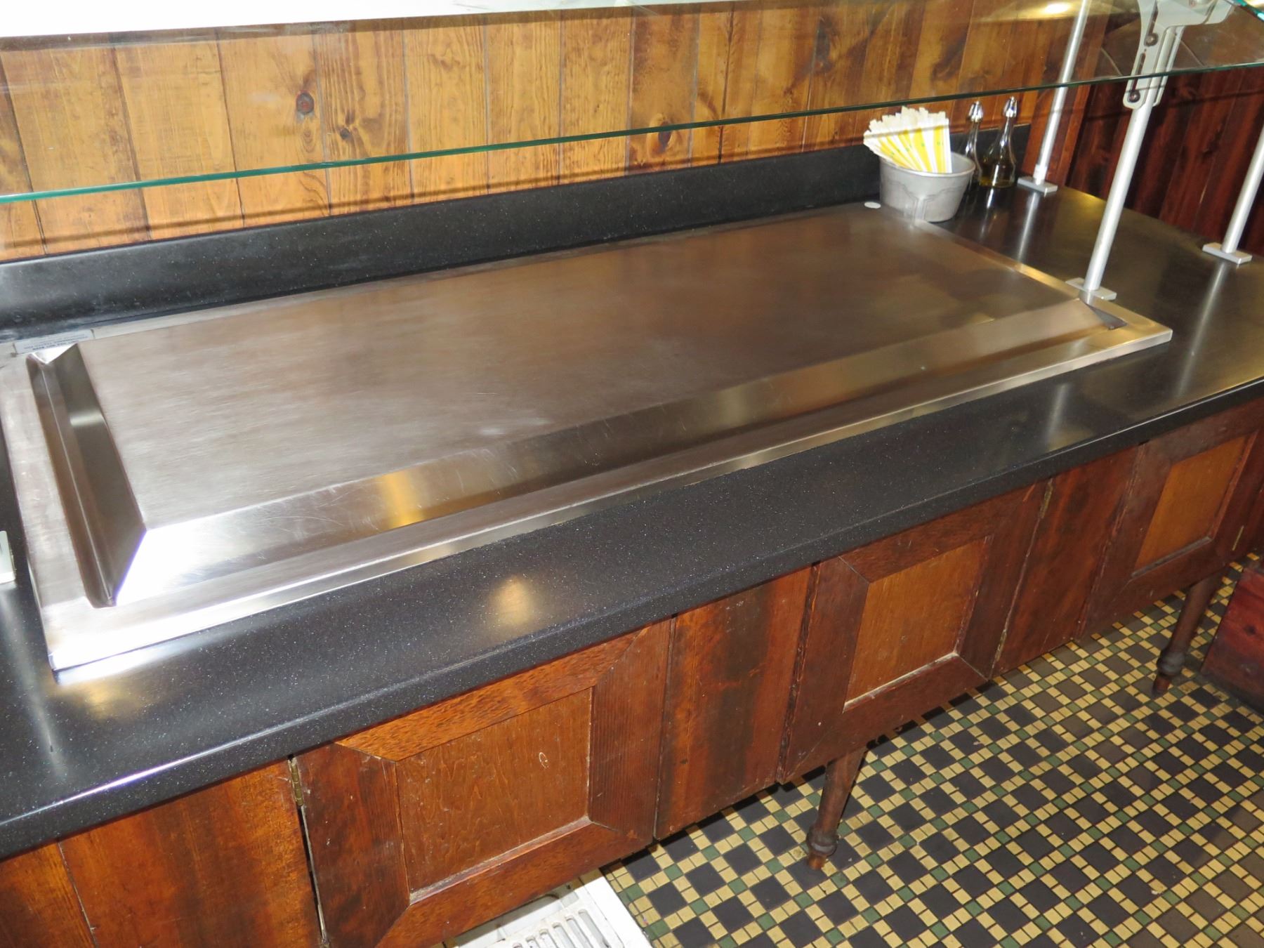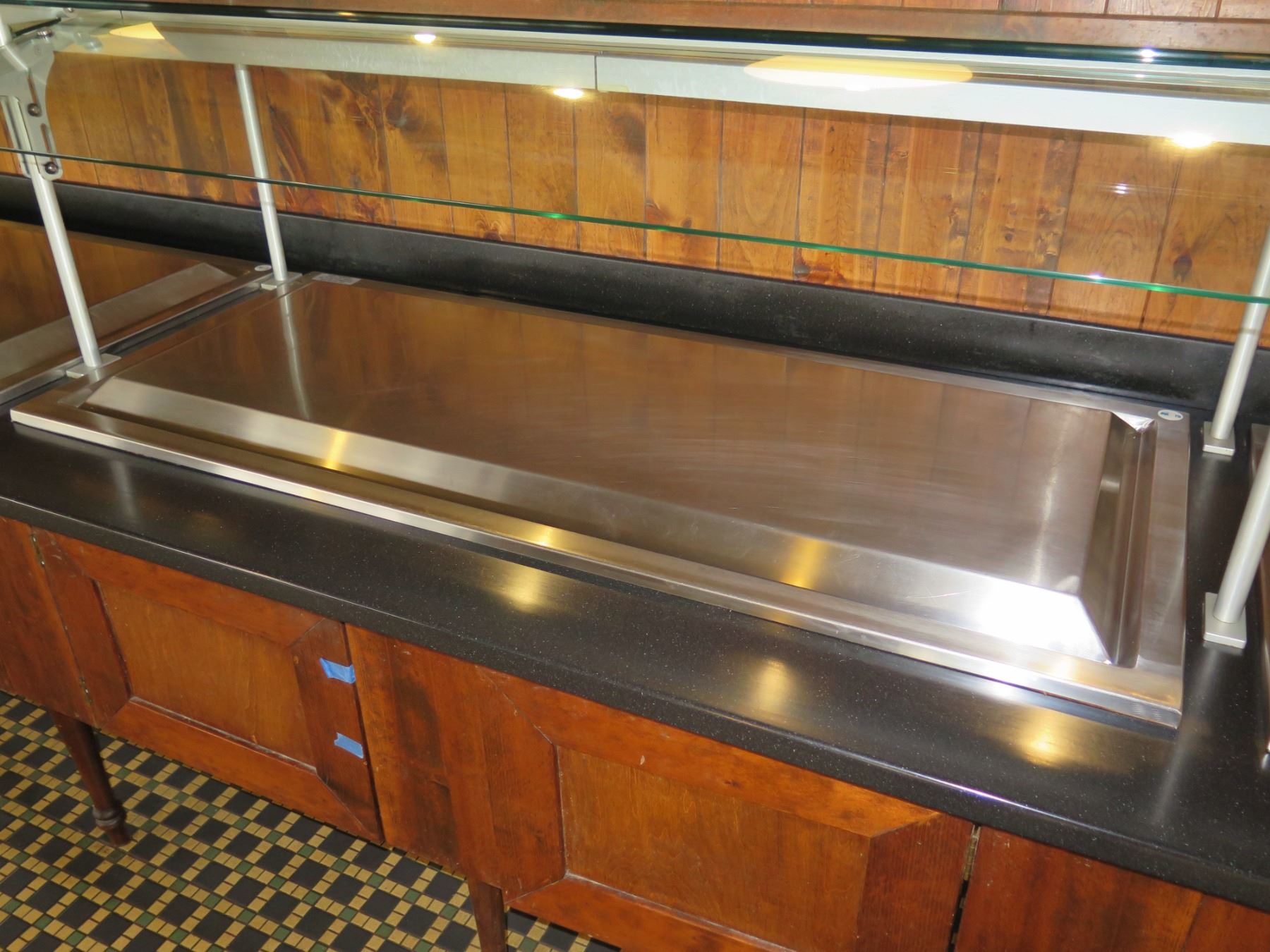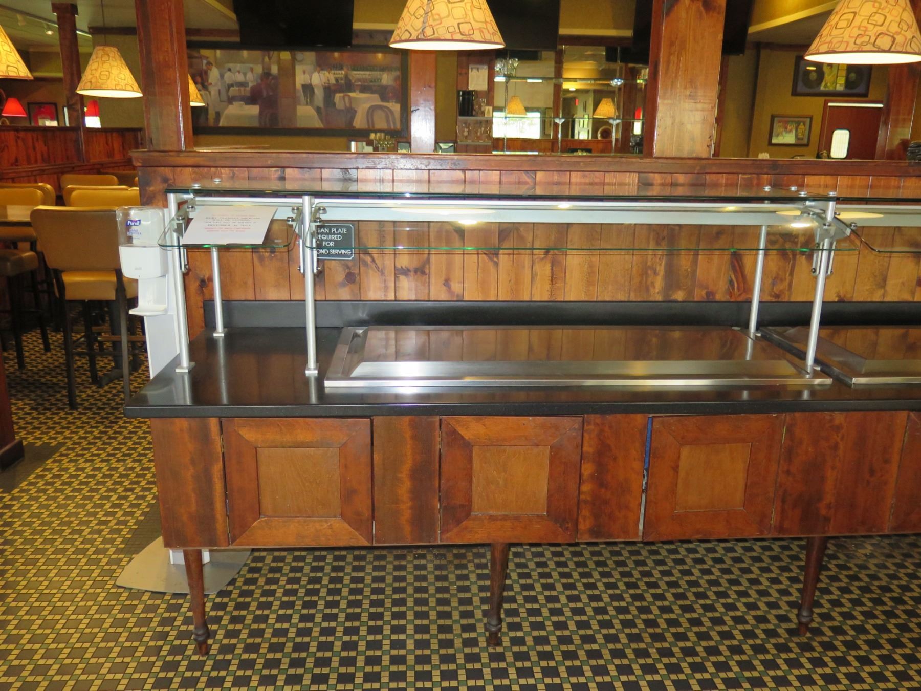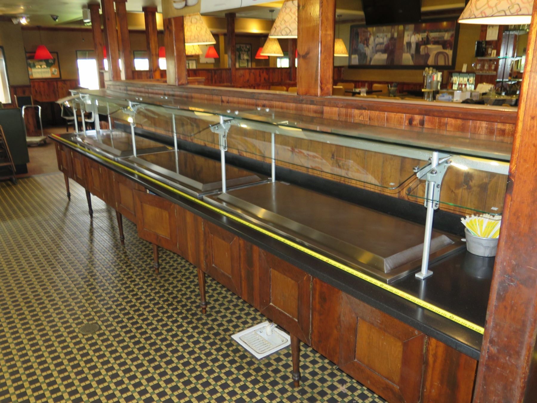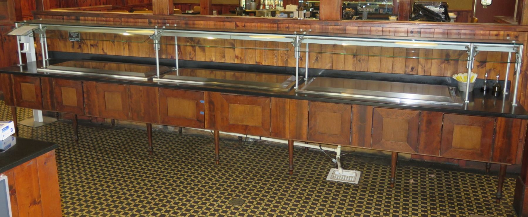 Wooden Salad Bar w/ Cabinet, Delfield N8259 Frost Top & Splashguard 224" x 30" x 56"H. Successful bidder will be responsible for disassembly and removal. Please plan accordingly and bring the proper tools, helpers, vehicle(s). You will have 3 days to disassemble and remove.