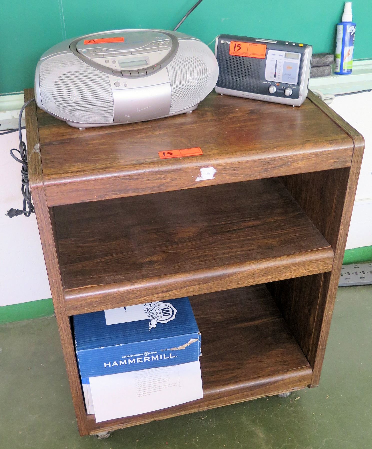 Wooden Shelf w/ CD Boombox, Weather Radio (RM-206)