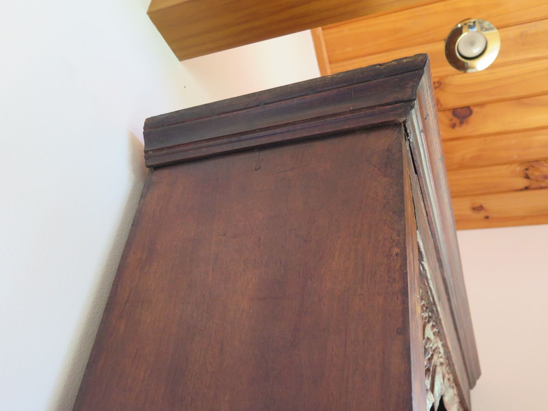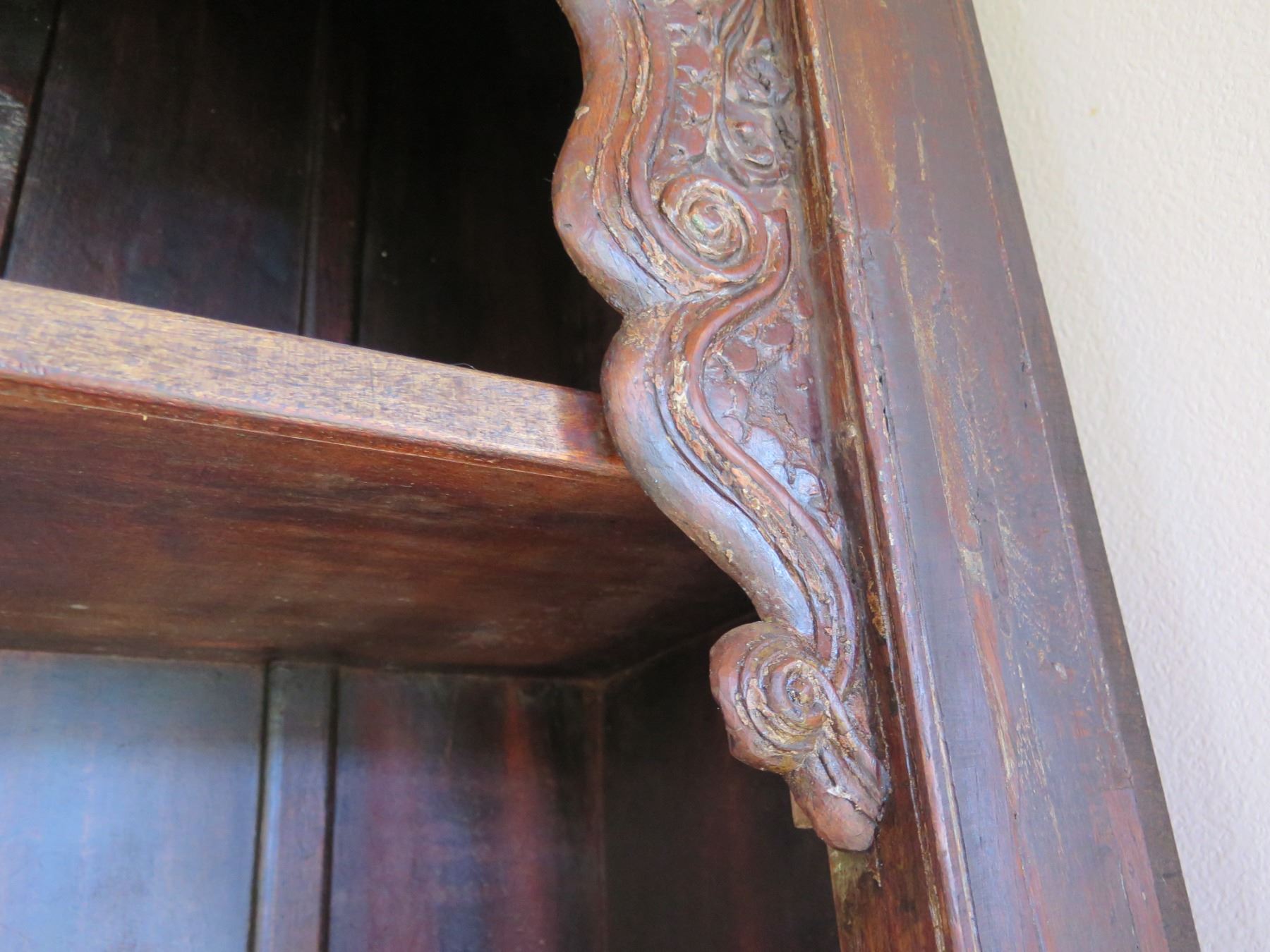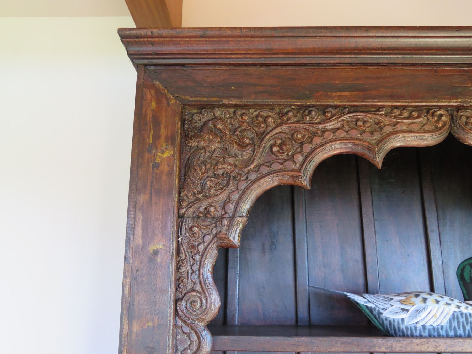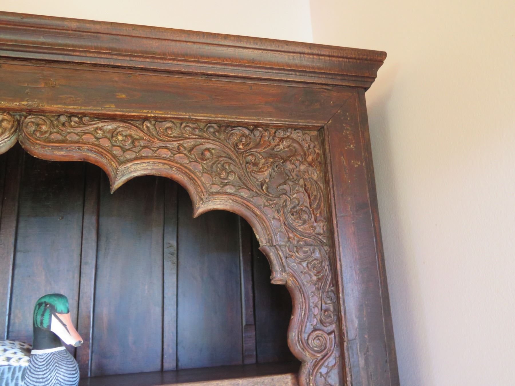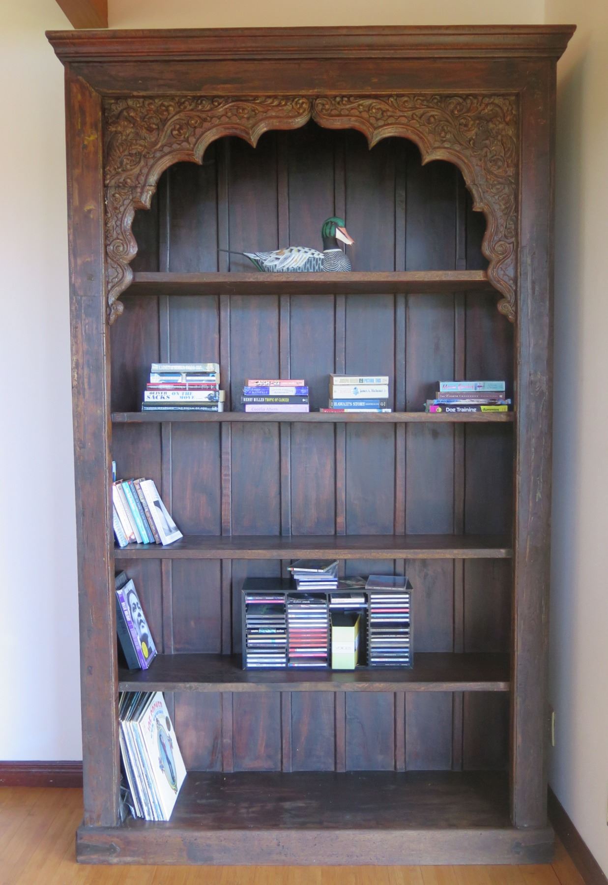 Wooden Shelf w/ Carved Top Design 93"x15"x54"H (Contents Not Included)