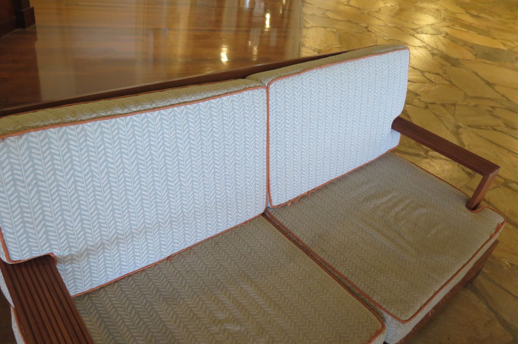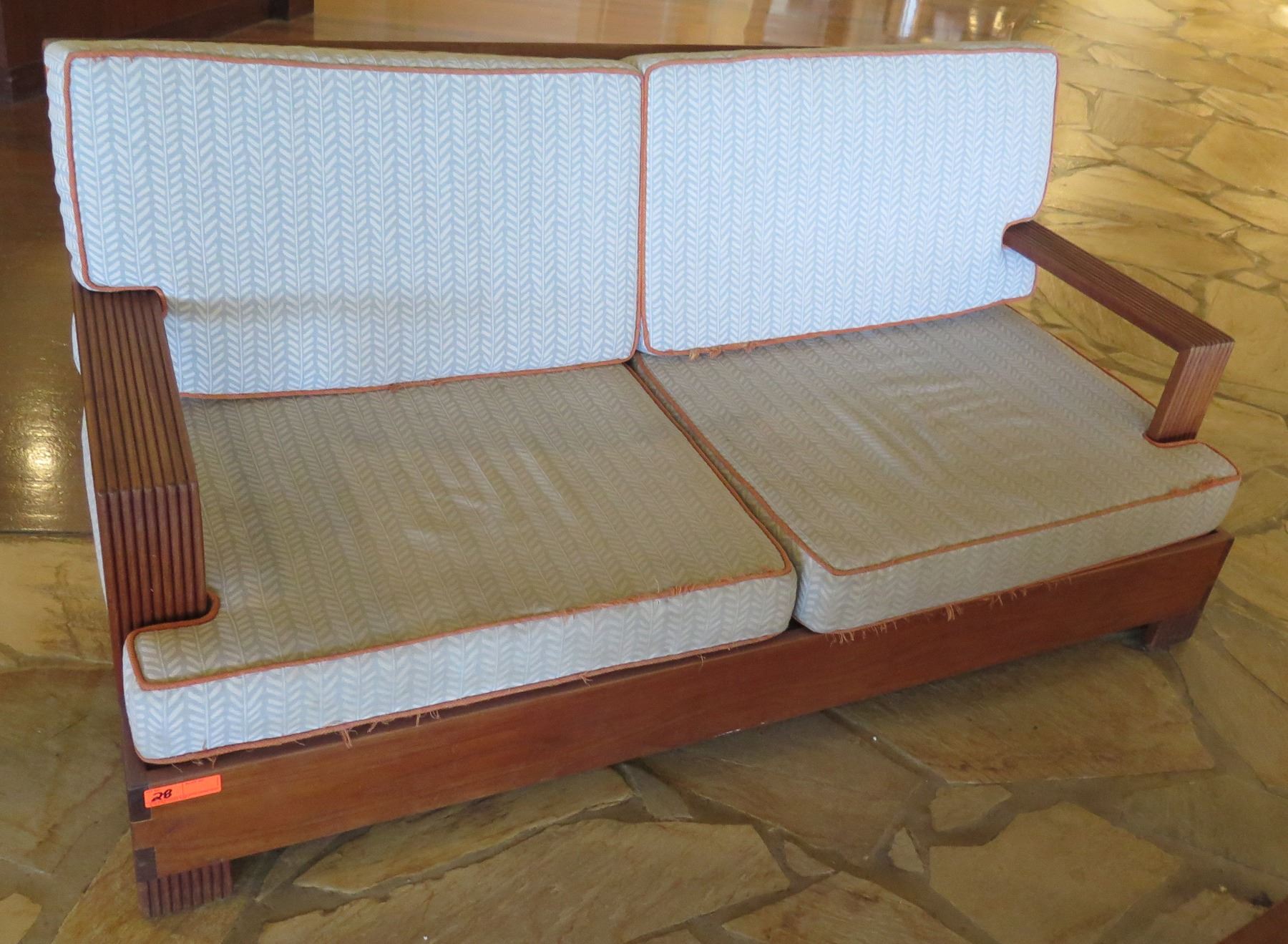 Wooden Sofa w/ Back & Seat Cushions 73" x 28" x 33"Ht