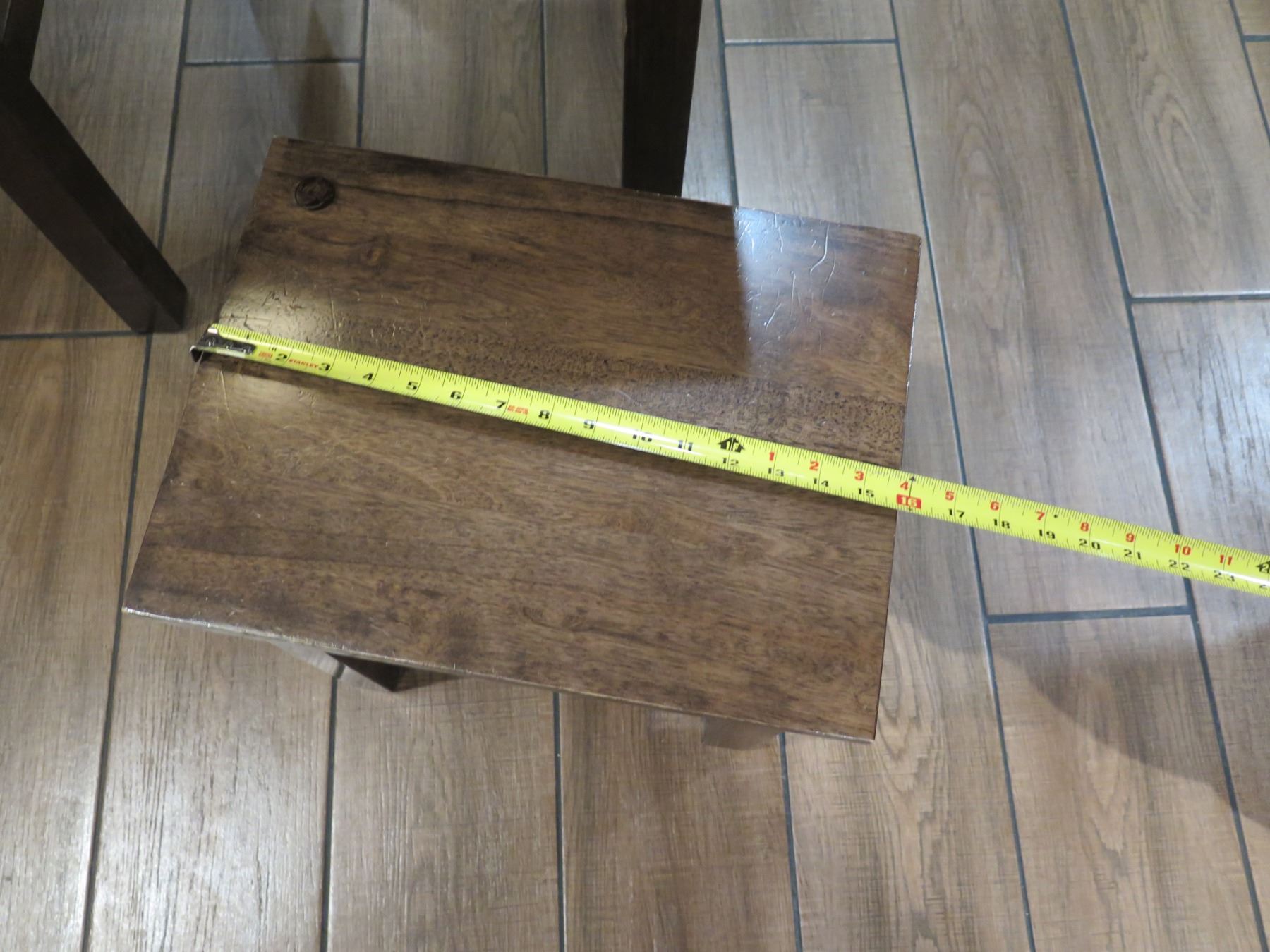 Wooden Table 30"x25"x30"H w/ 2 Matching Stools 16"x12"x17"H. This is a stock photo that is generally representative of the item(s) in this auction lot. Conditions may vary.
