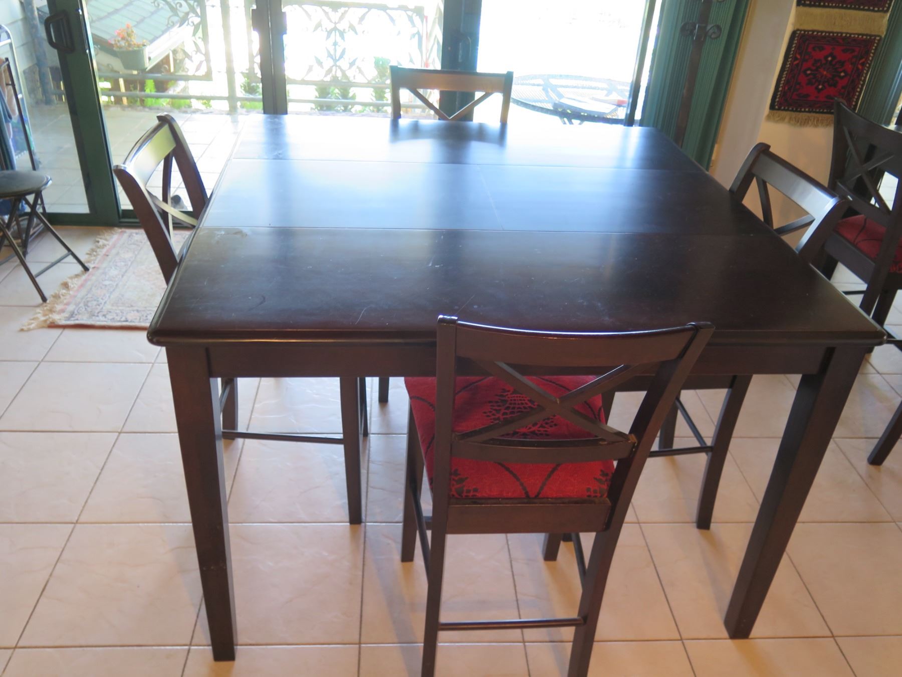 Wooden Table 54"x36" with Leaf & 4 Chairs w/ Upholstered Seat
