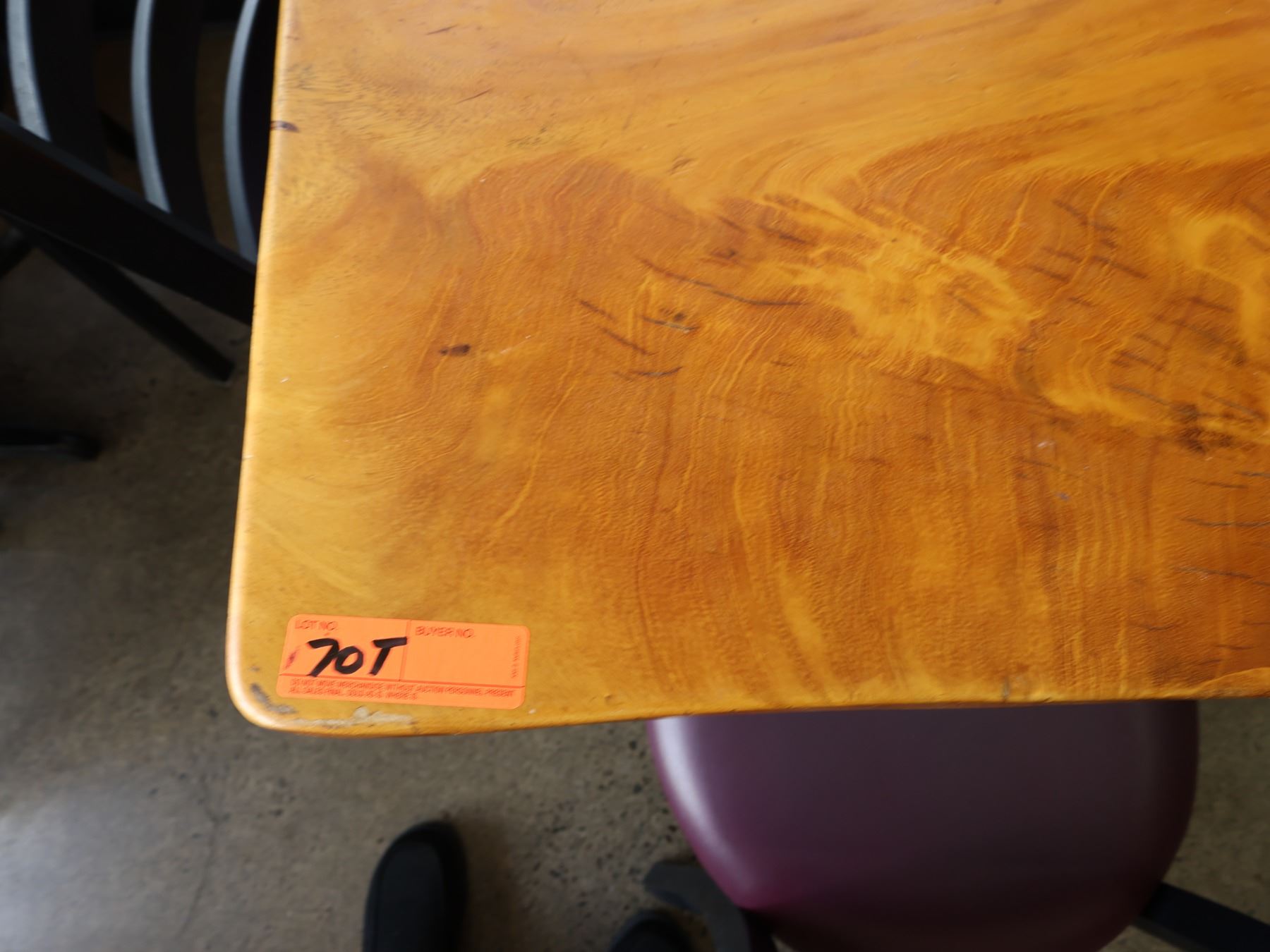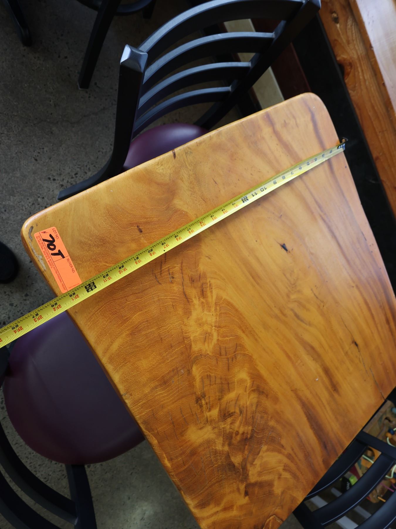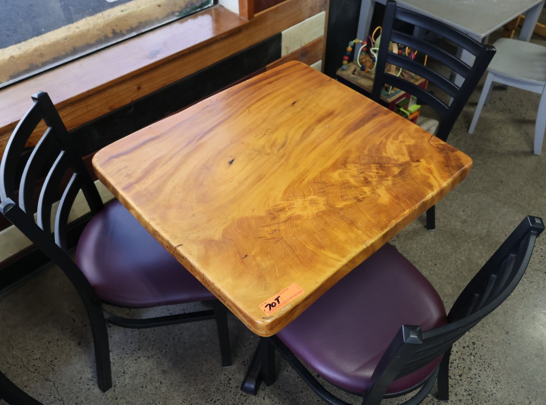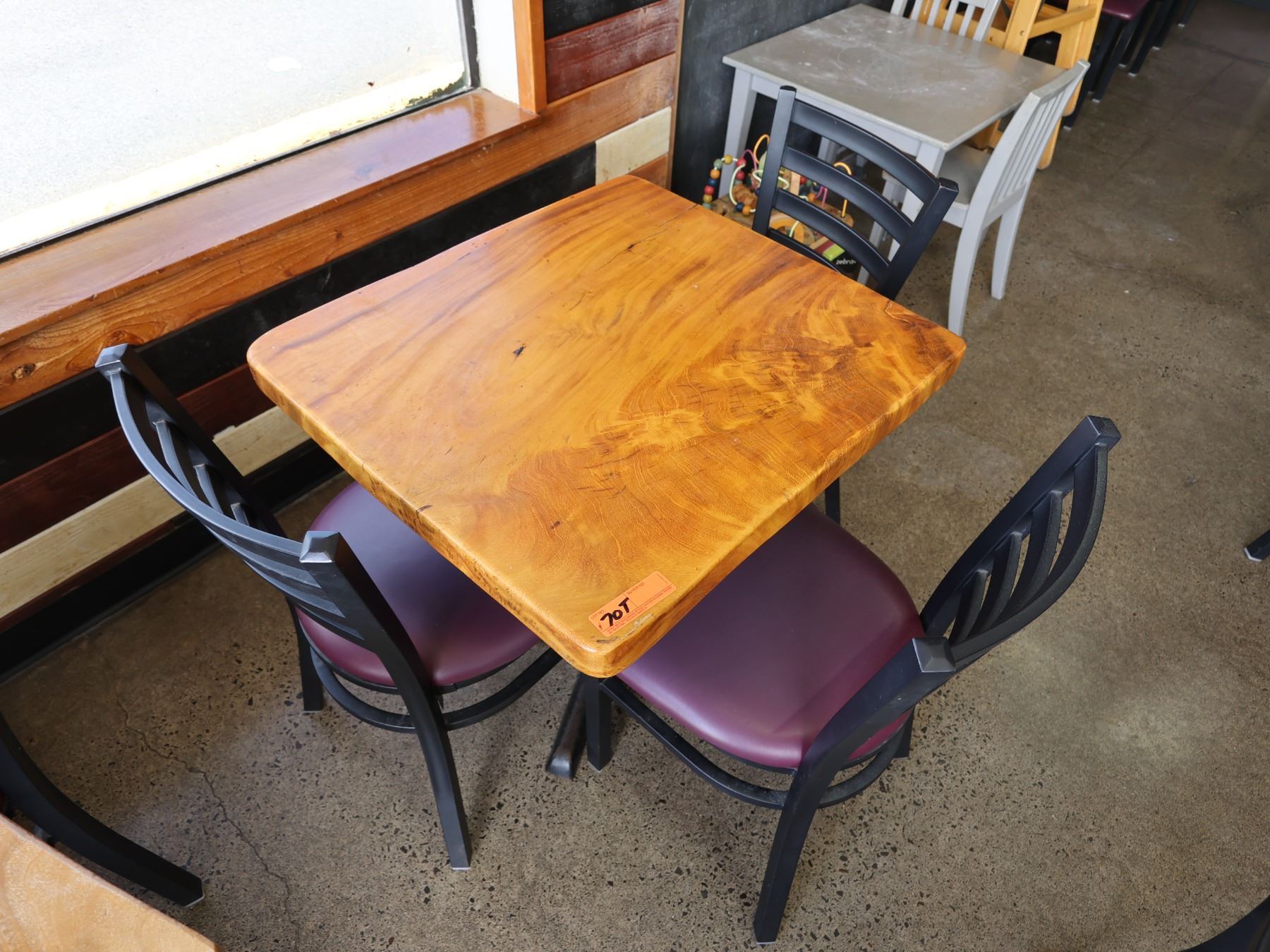 Wooden Table on Pedestal Base 26" x 26" w/ 3 Chairs 15" x 16" x 33"H