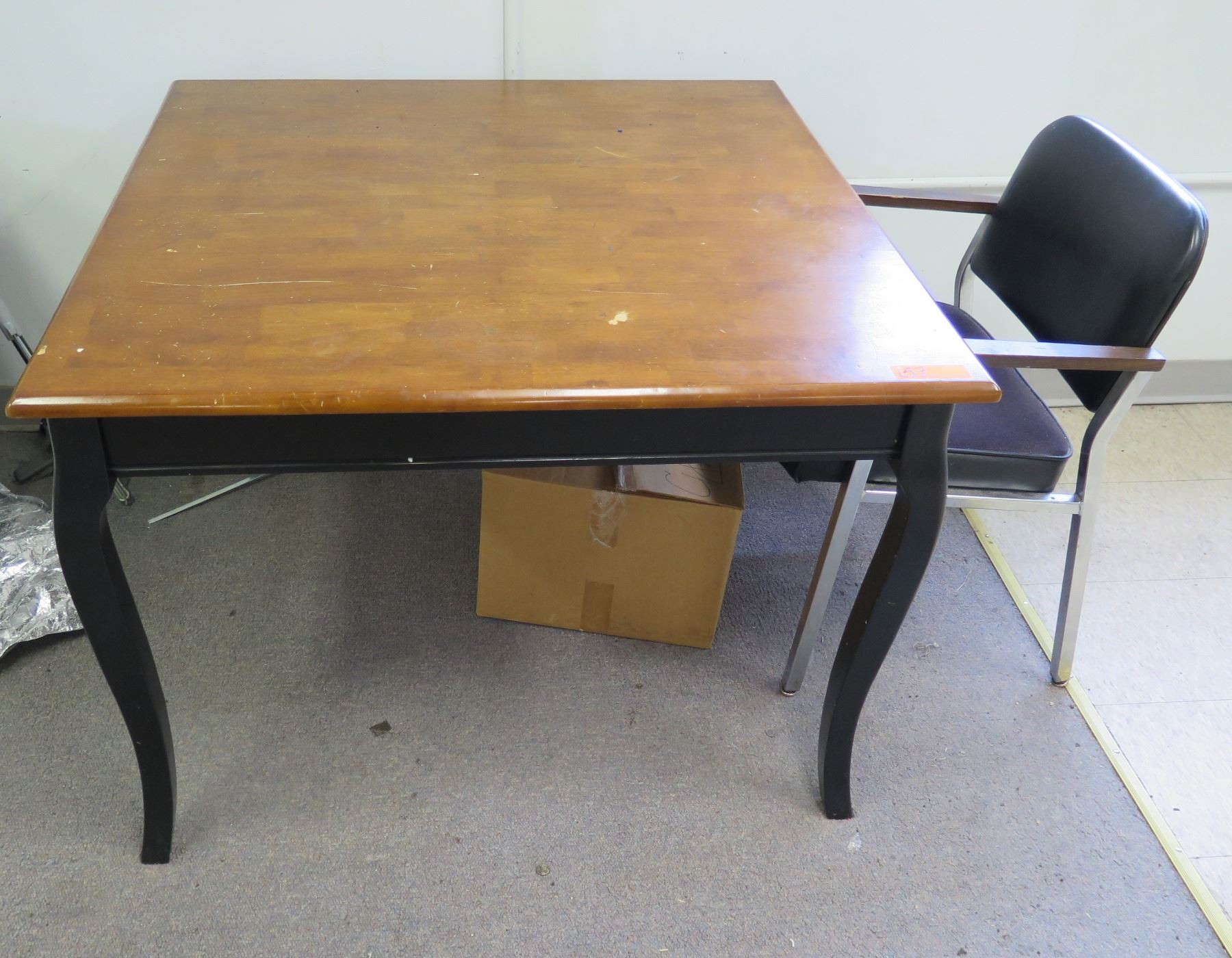 Wooden Table w/ Cabriolet Legs & Stationary Armchair 41"x41"x30"H
