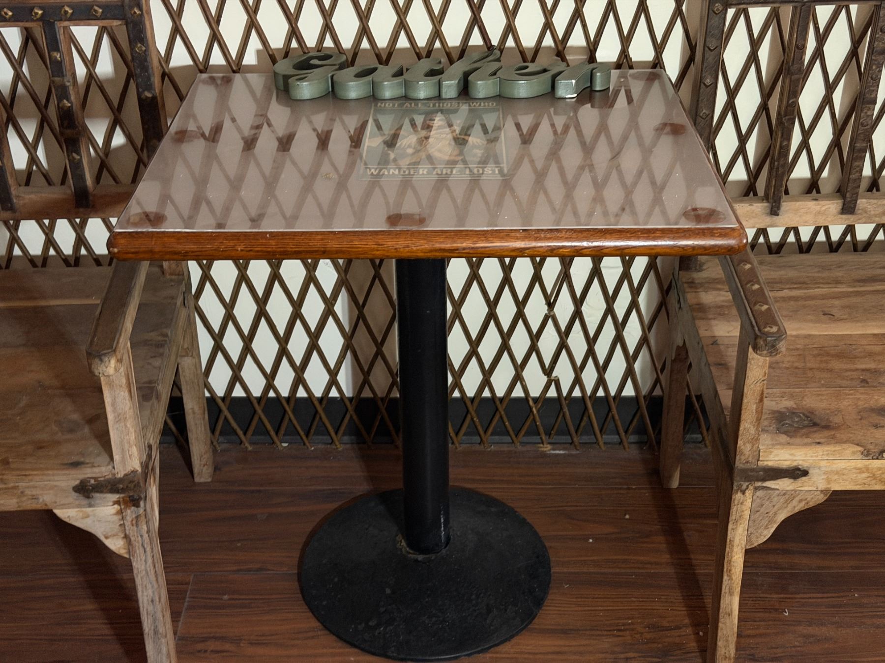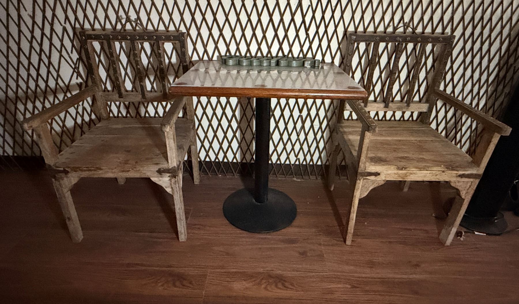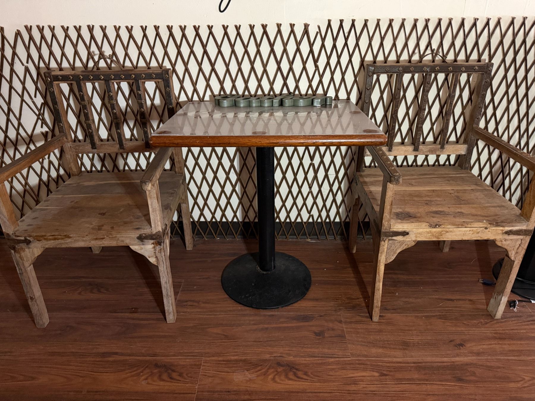 Wooden Table w/ Pedestal Base 29" x 23" x 31"H & 2 Armchairs 22" x 22" x 36"H