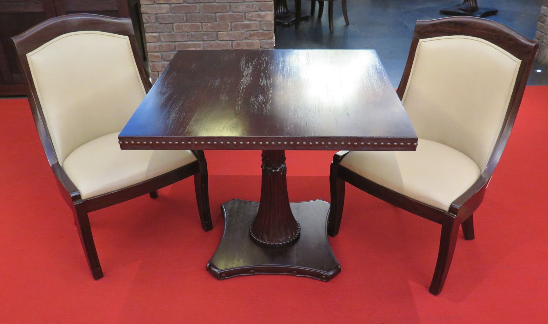 Wooden Table w/ Pedestal Base 36"x36"x30"H & 2 Wooden Upholstered Chairs 38"H