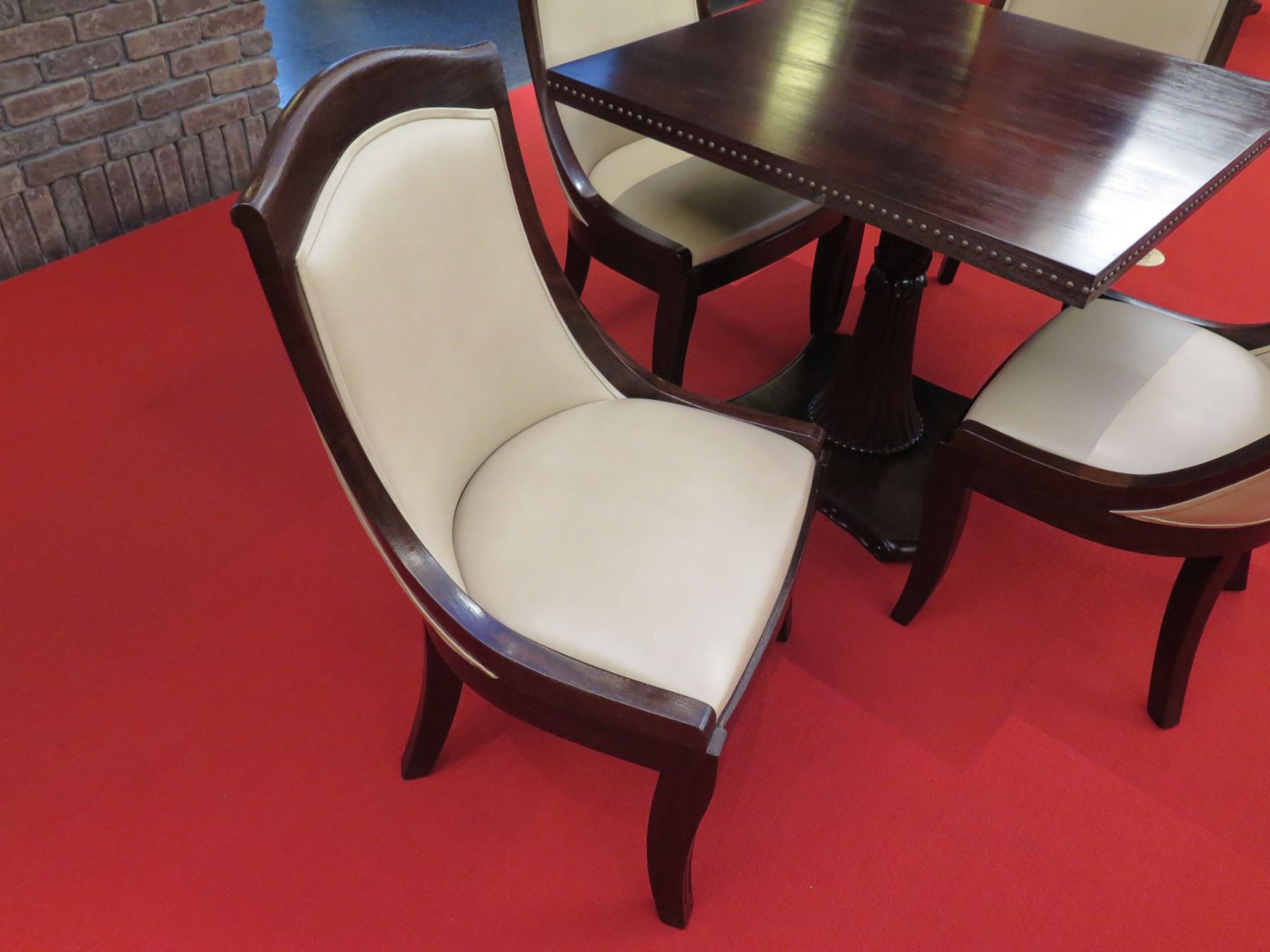 Wooden Table w/ Pedestal Base 36"x36"x30"H & 4 Wooden Upholstered Chairs 38"H