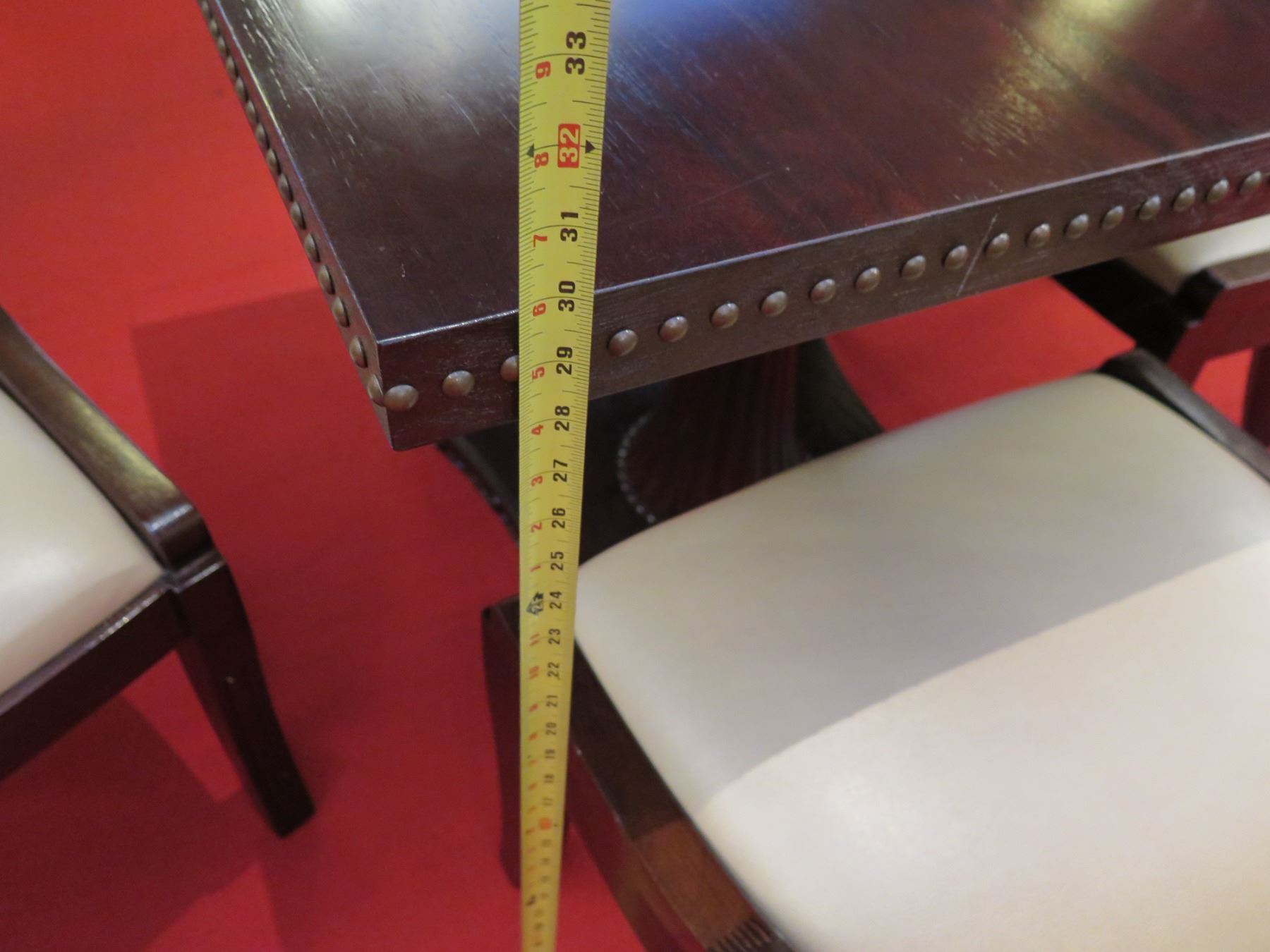 Wooden Table w/ Pedestal Base 36 x36 x30 H & 4 Wooden Upholstered Chairs 38 H