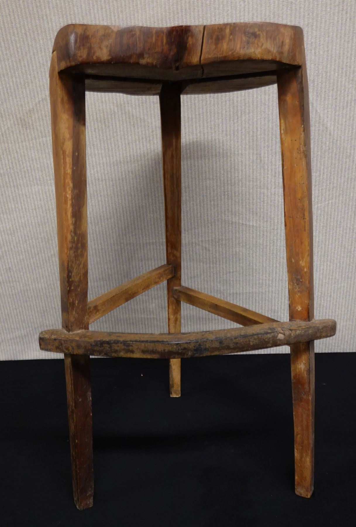 Wooden Tree-Trunk Stool w/ Foot Rest 14" Dia, 27.5"H