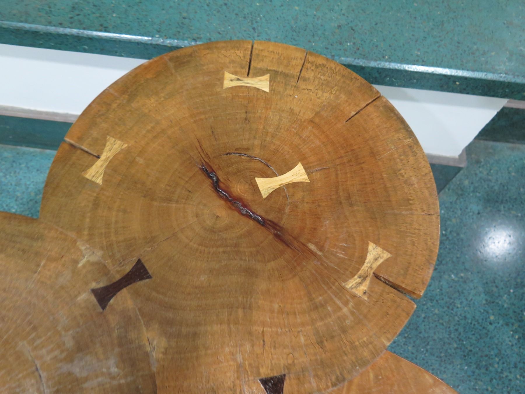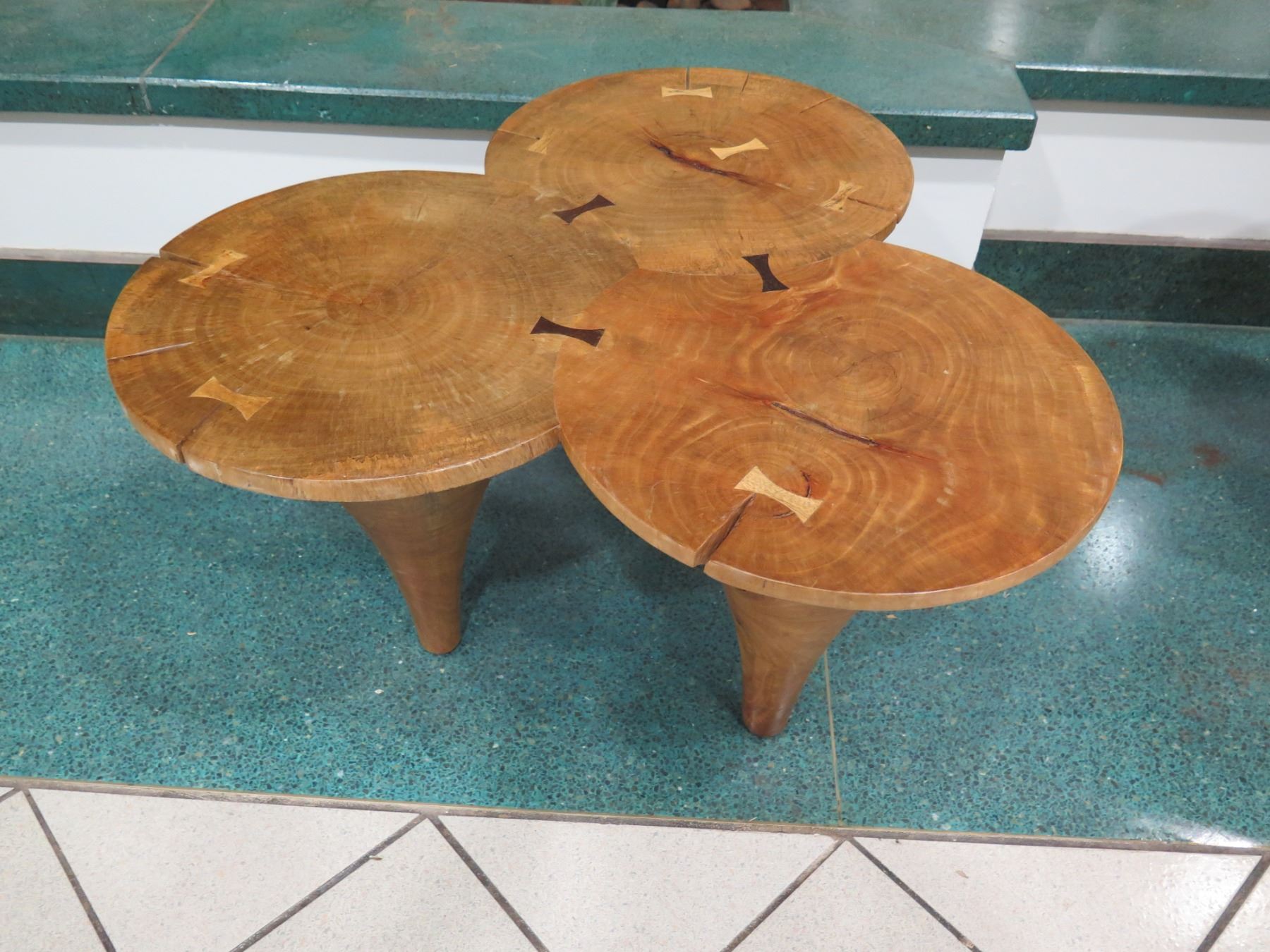 Wooden Tri-Table, Fusion of 3 Round Tables 33 x18 x19 H