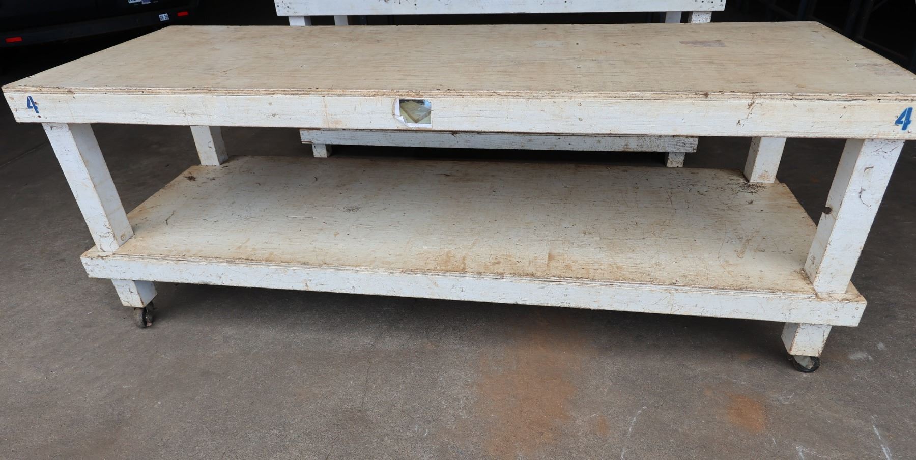 Wooden Work Table on Wheels w/ Undershelf 96" x 34" x 36"H