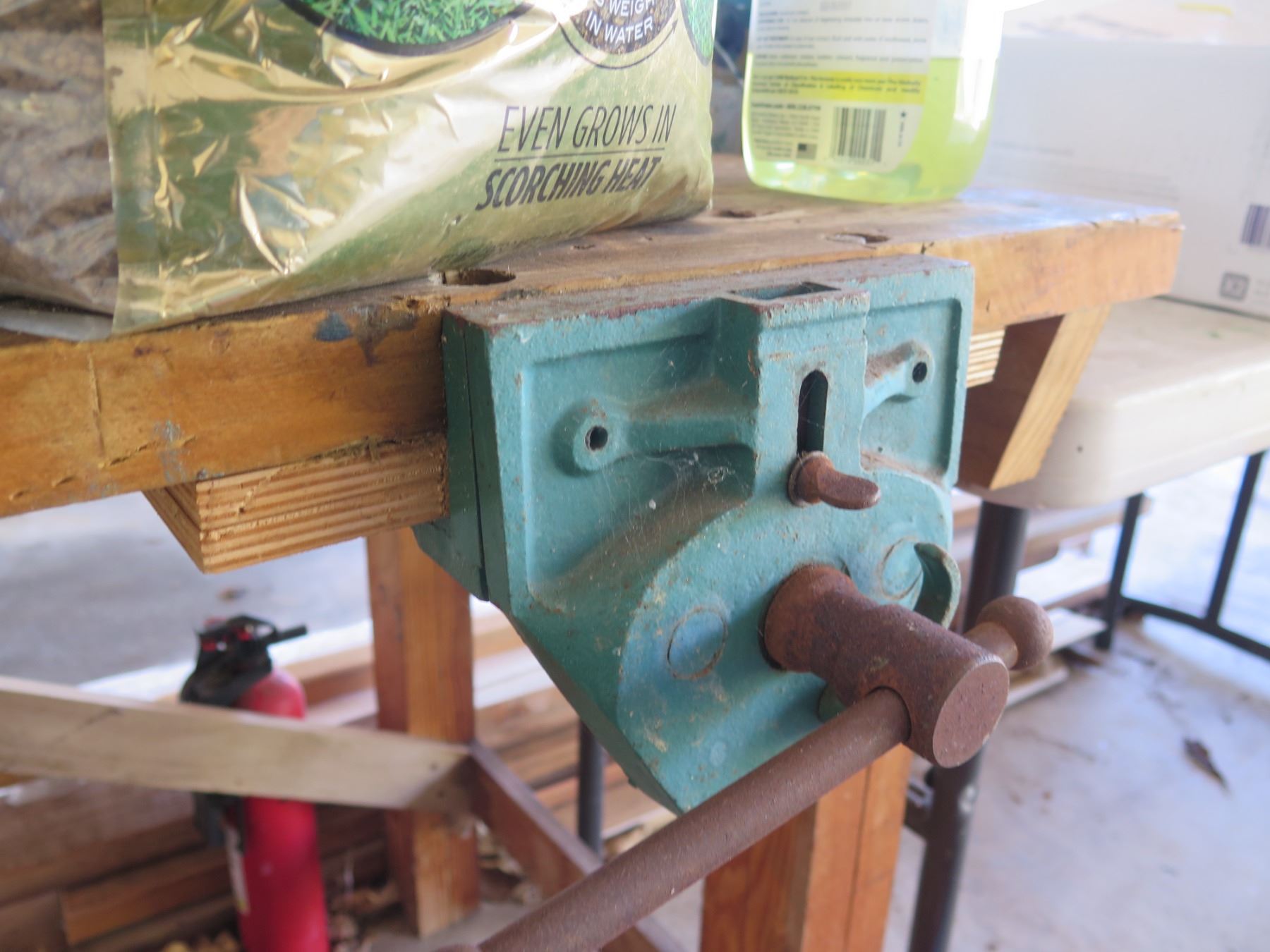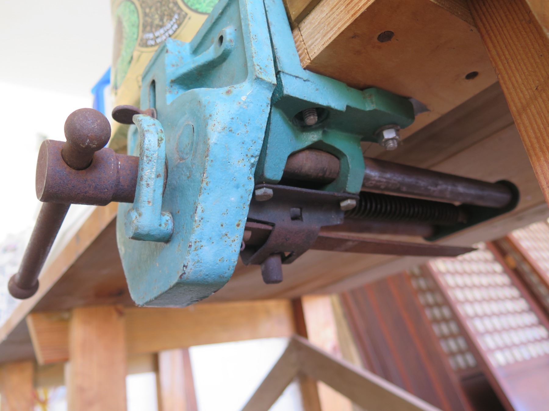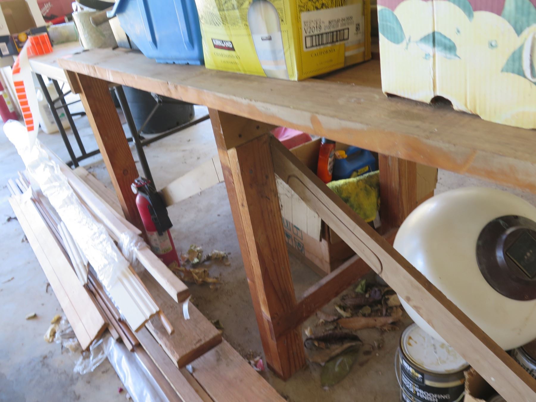 Wooden Work Table w/ Attached Vise Clamp 71"x27"x32"H (Contents Not Included)