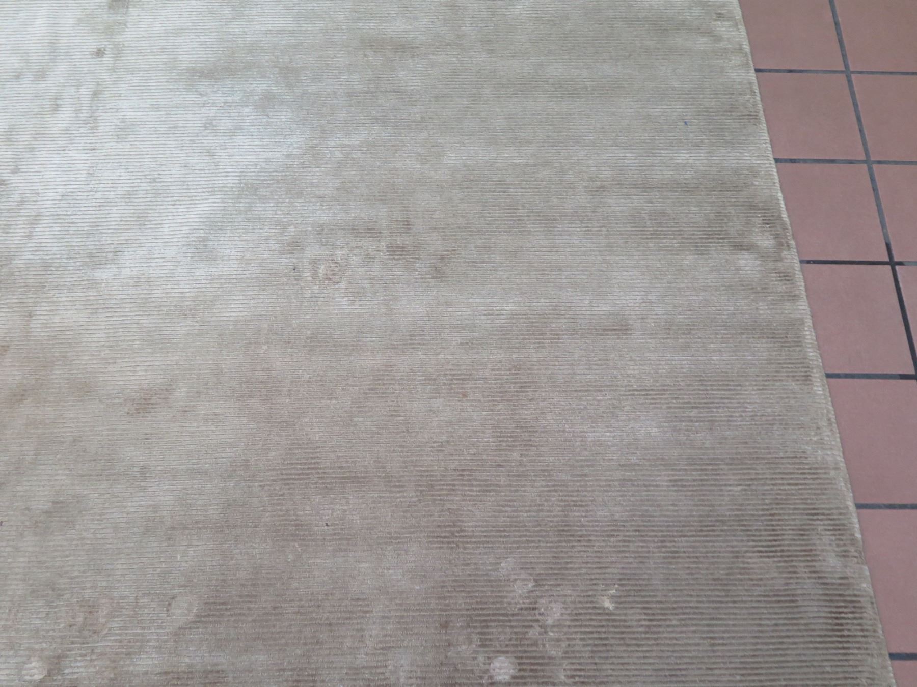 Wool & Silk Textured Cord Rug, Mocha, by Ben Soleimani for Restoration Hardware. Made in India. 12 ft. x 15 ft. Some wear and tear. Includes roll of underlayment pad (see last picture).